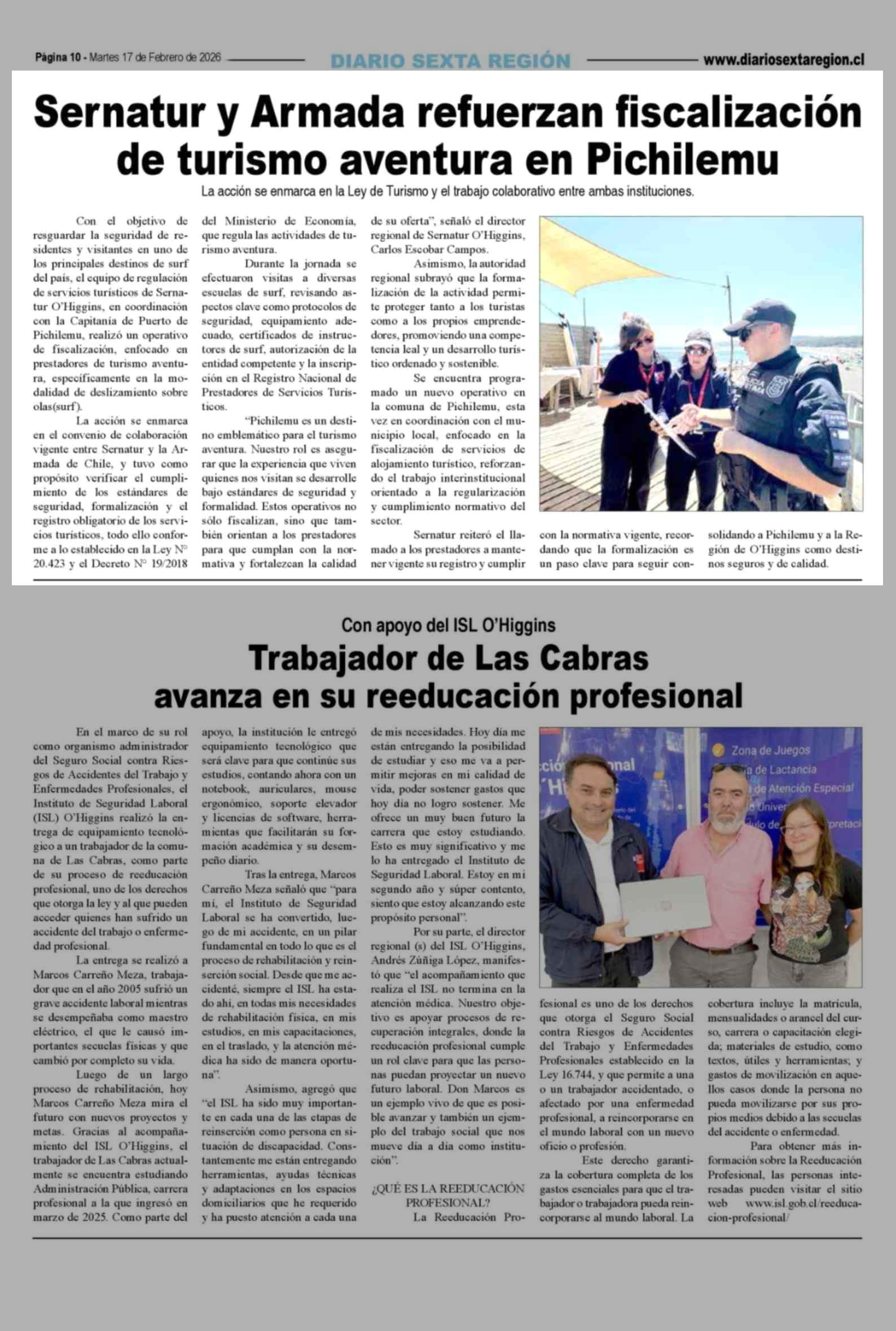 | Fecha: | 17-02-2026 | Sector: | Noticia general | Región: | Región del Libertador General Bernardo O'Higgins |