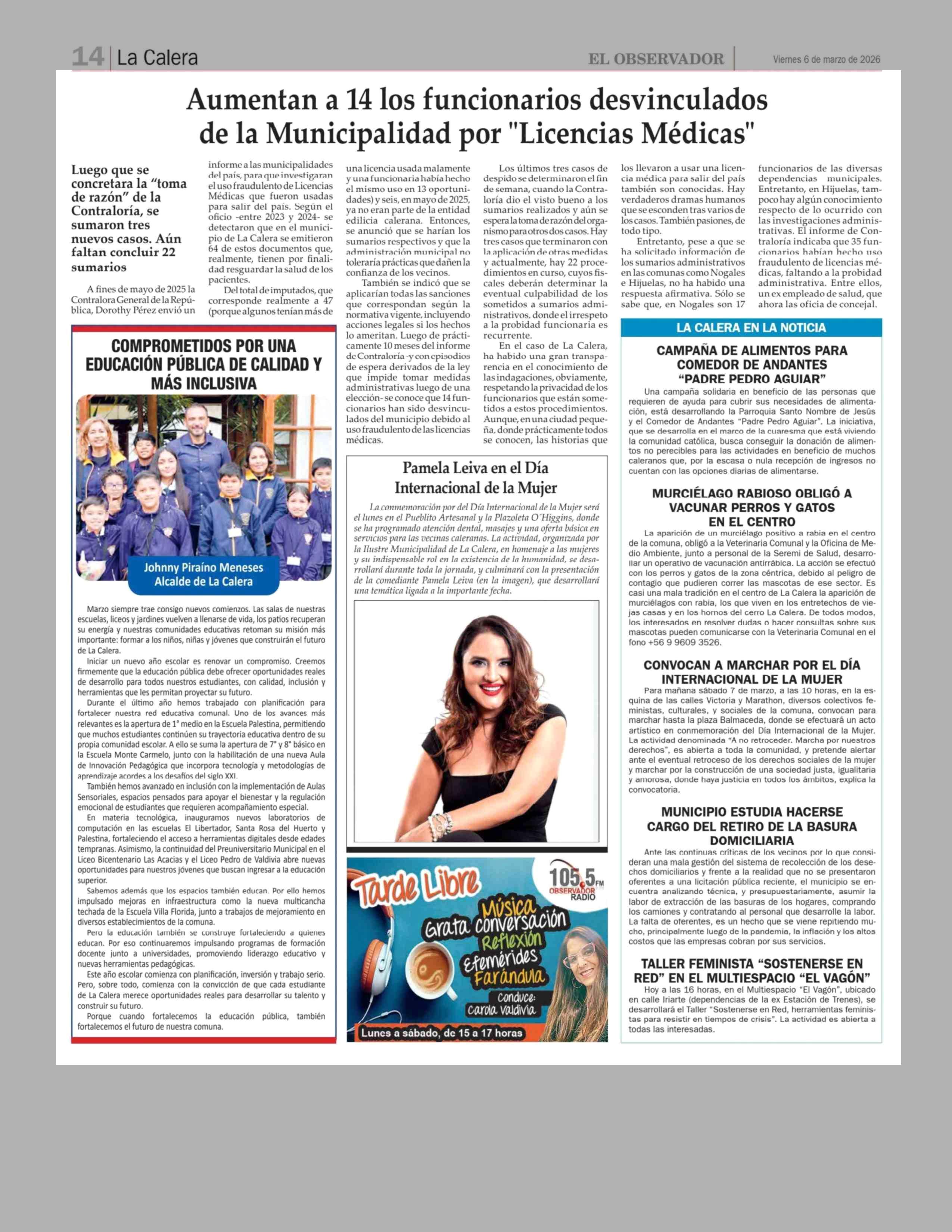 Título: Aumentan a 14 los funcionarios desvinculados de la Municipalidad por "Licencias Médicas"