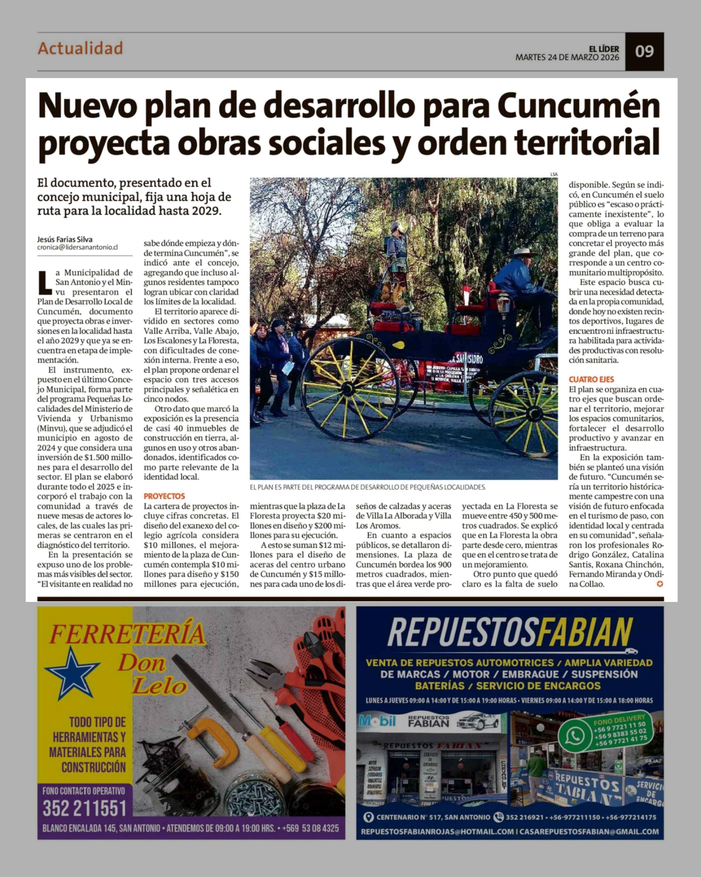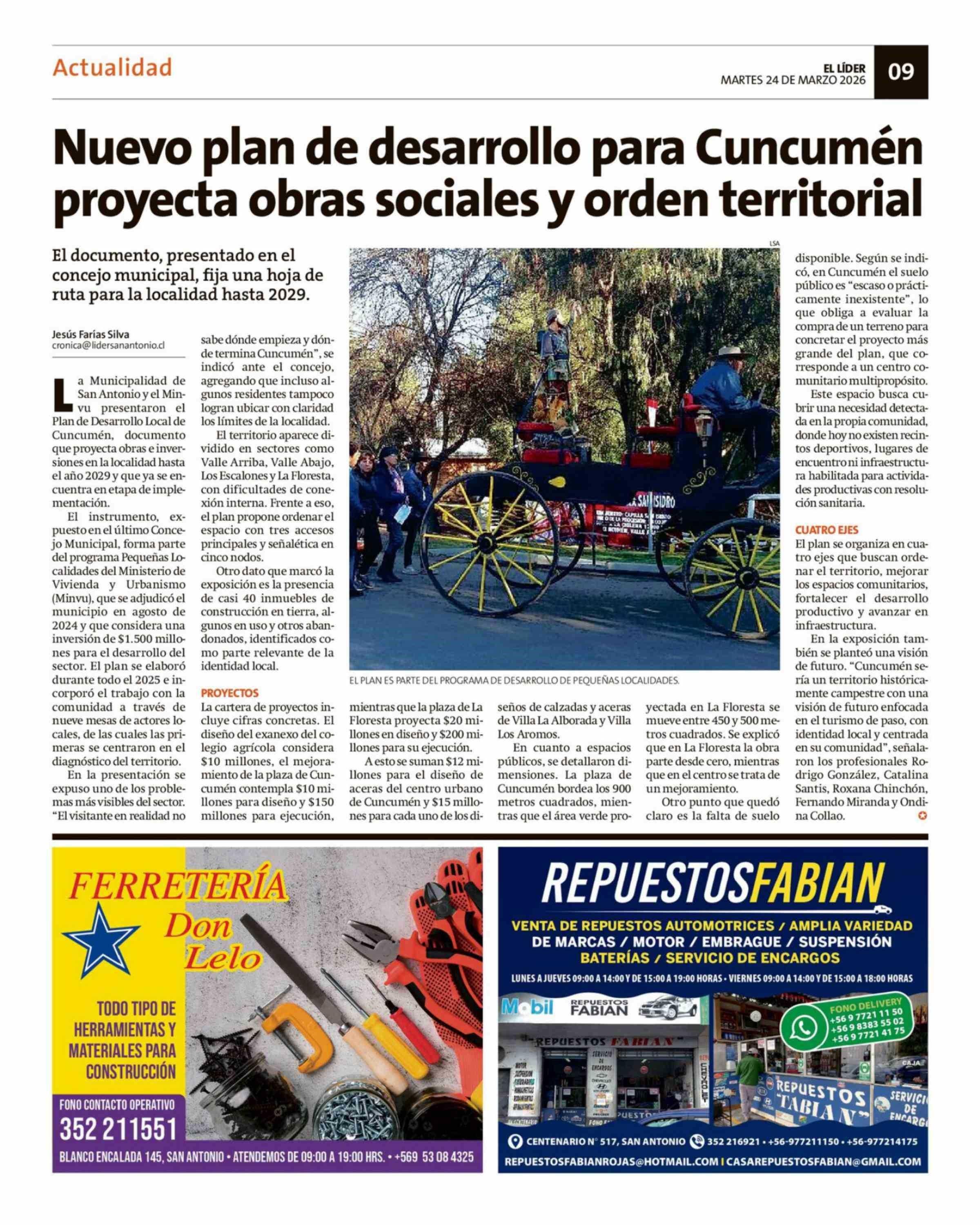 Nuevo plan de desarrollo para Cuncumén proyecta obras sociales y orden territorial 24-03-2026 El Líder |