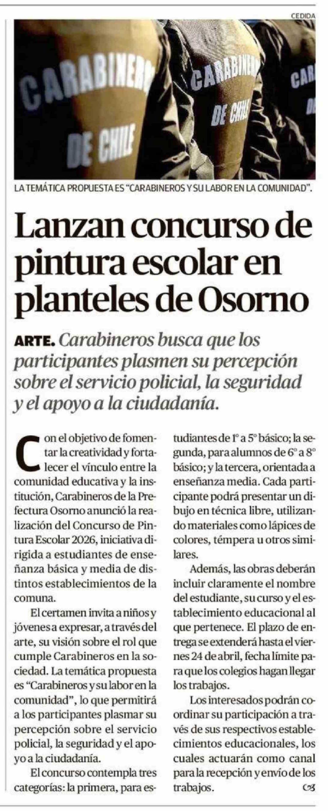 Lanzan concurso de pintura escolar en planteles de Osorno 23-04-2026 El Austral de Osorno |