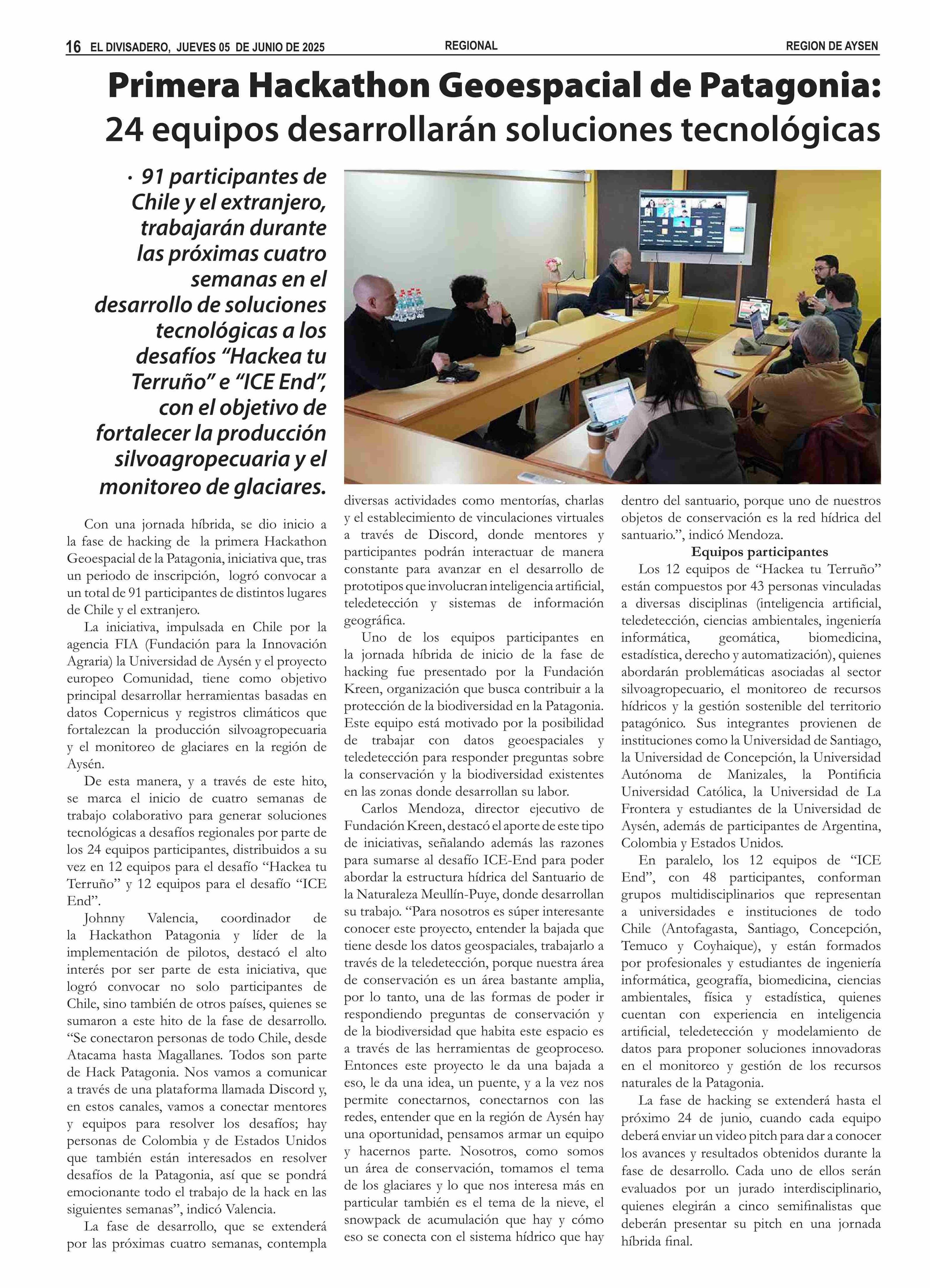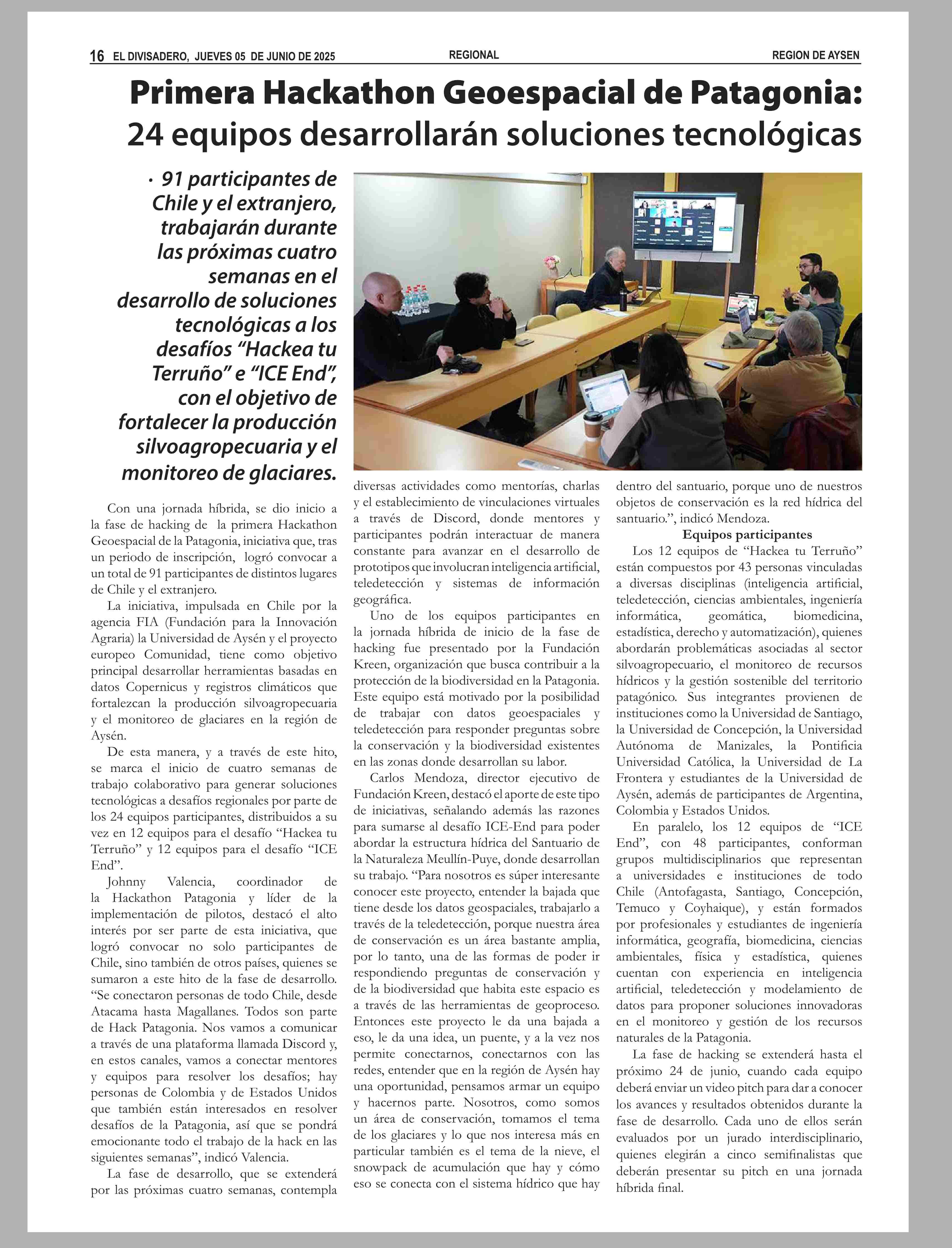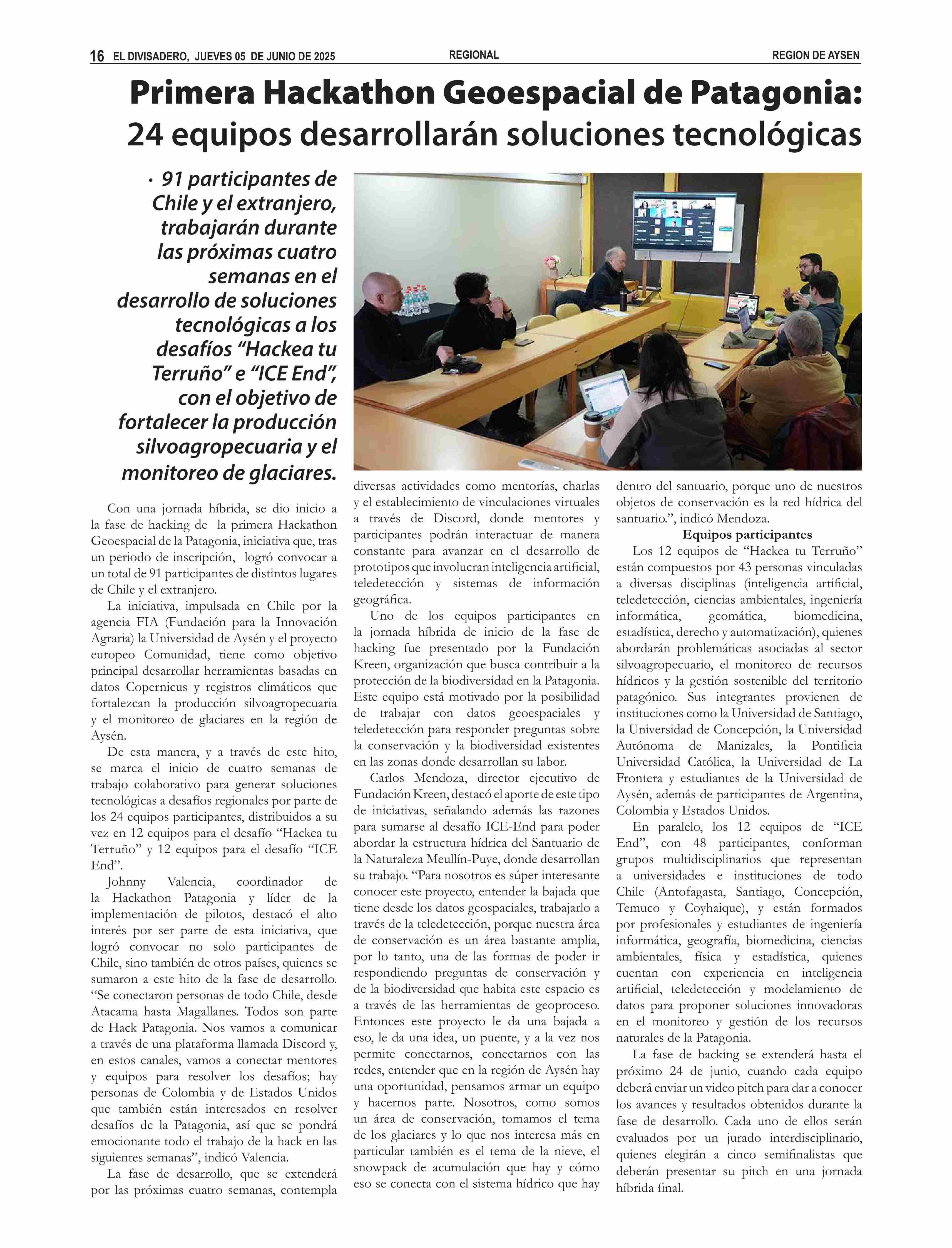 Primera Hackathon Geoespacial de Patagonia: 24 equipos desarrollarán soluciones tecnológicas 05-06-2025 El Divisadero |