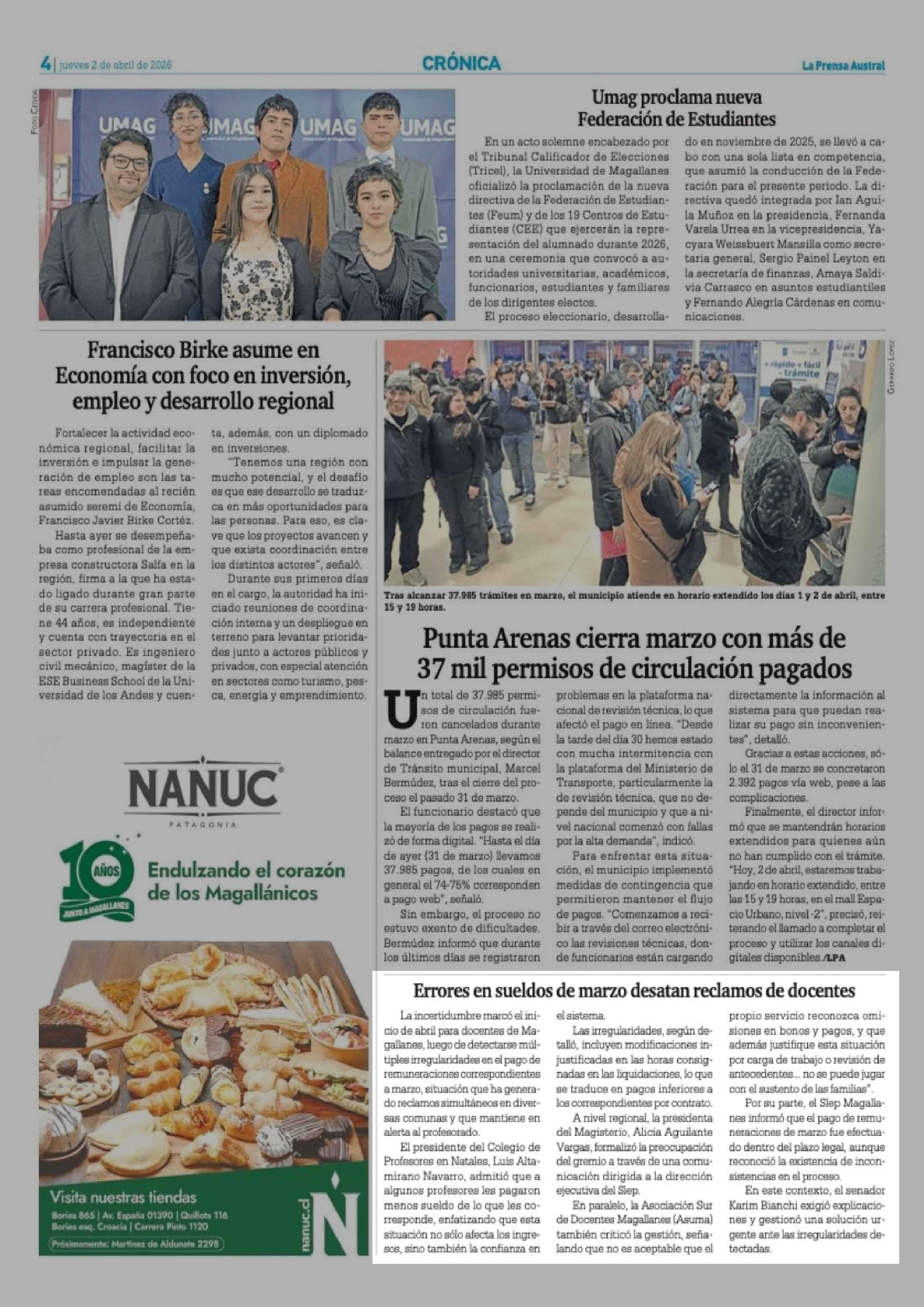 02-04-2026 La Prensa Austral
