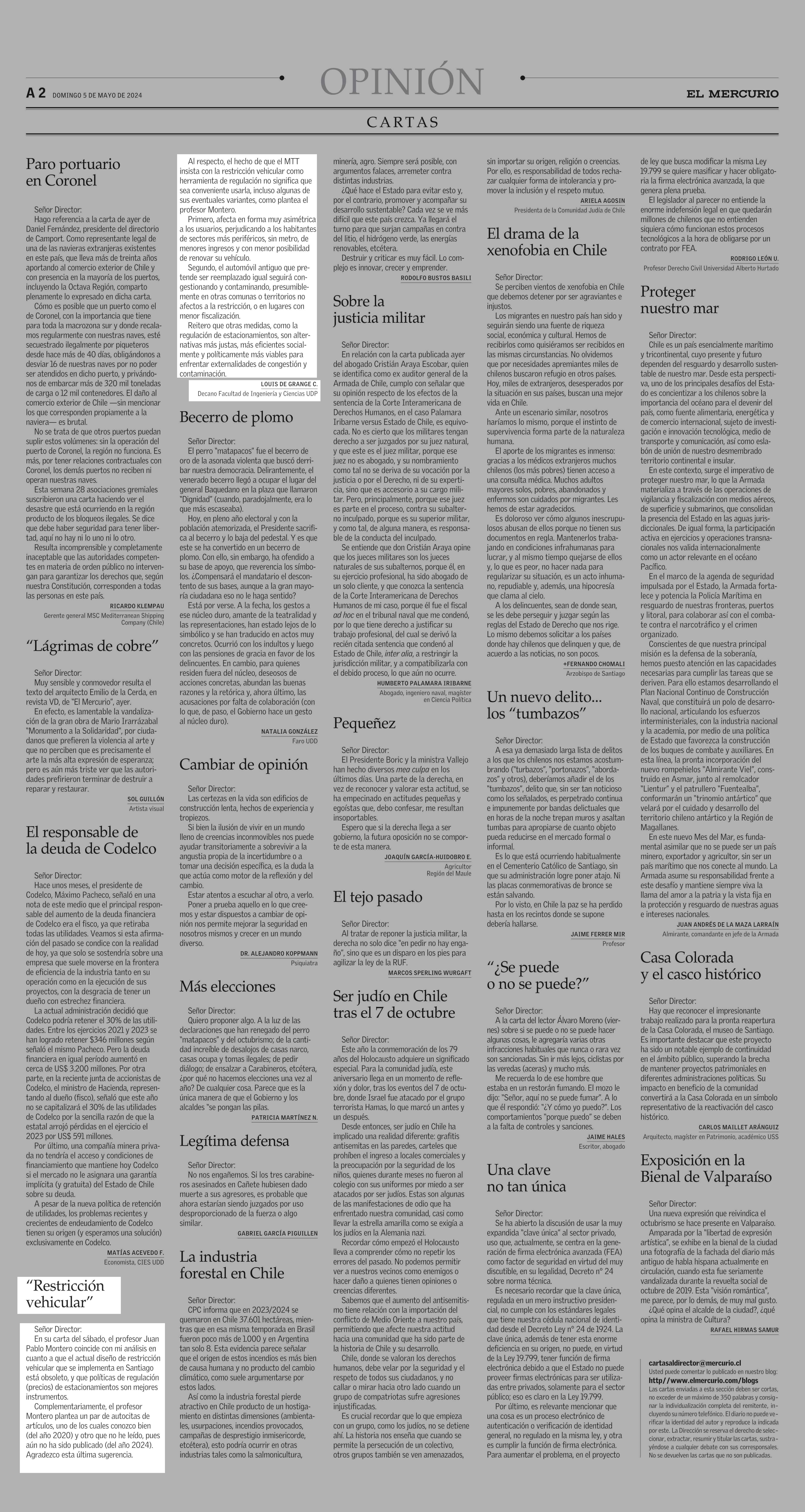 | Fecha: | 05-05-2024 | Sector: | Opinión - Cartas | Región: | Región Metropolitana de Santiago |