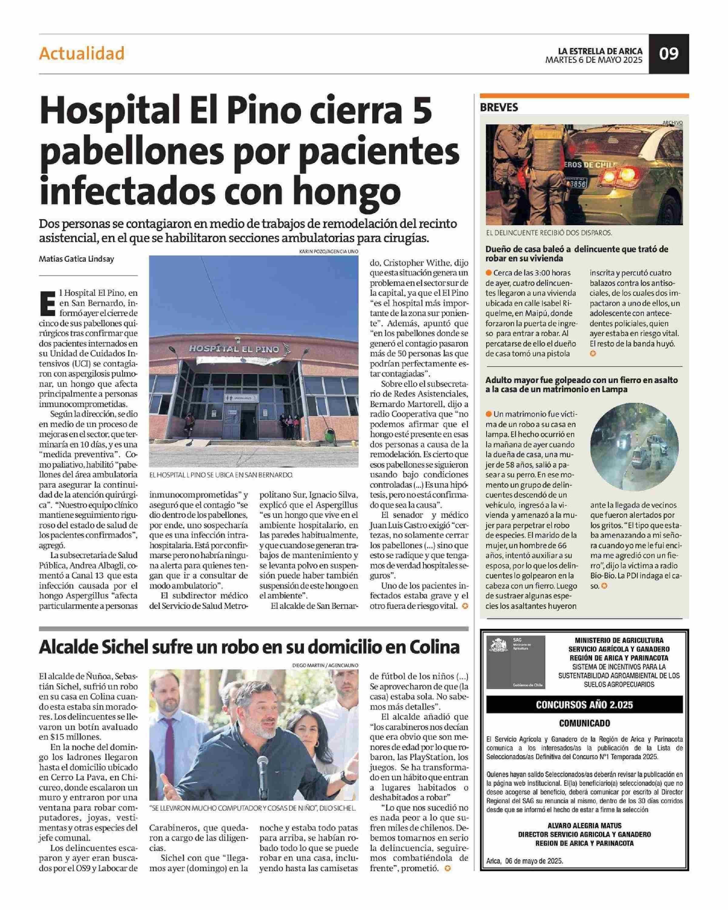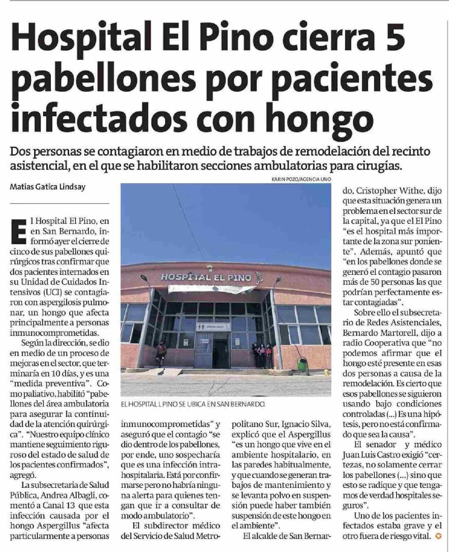 Título: Hospital El Pino cierra 5 pabellones por pacientes infectados con hongo