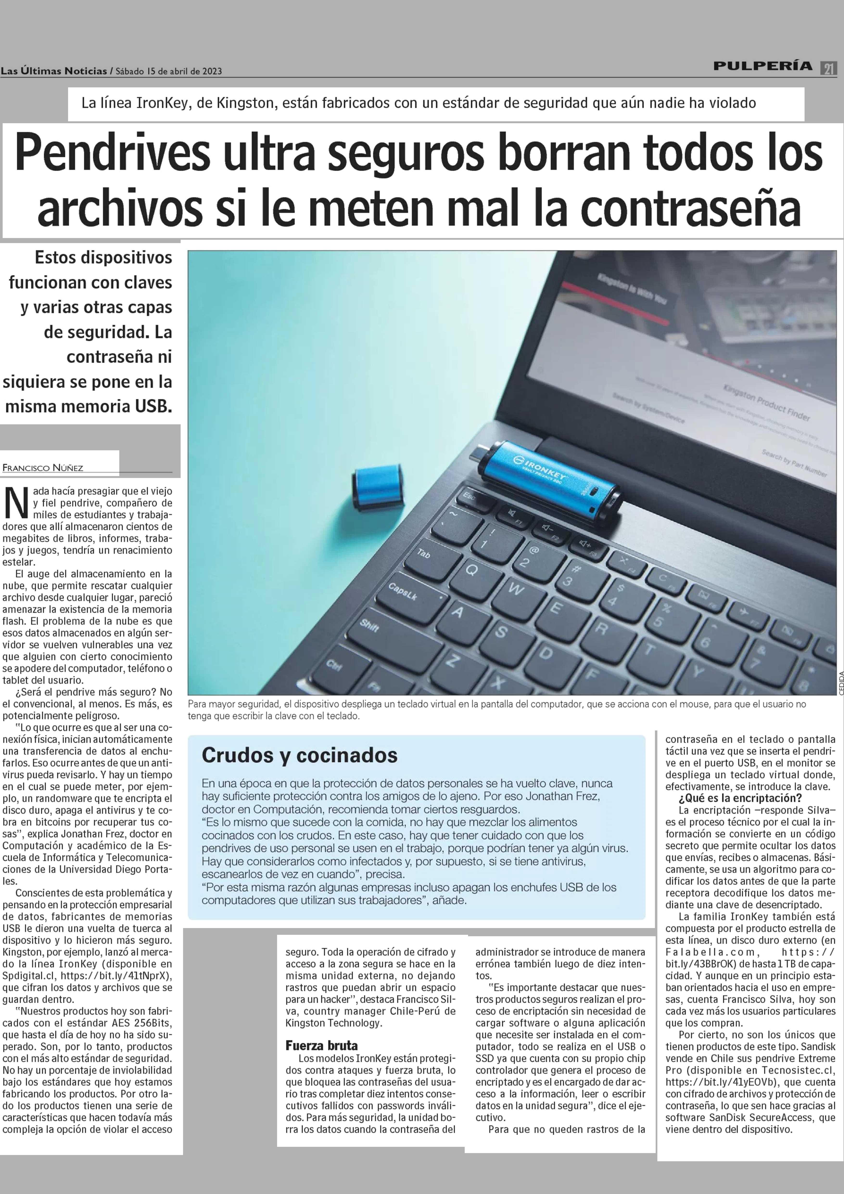 Pendrives ultra seguros borran todos los archivos si le meten mal la contraseña 15-04-2023 Las Últimas Noticias |