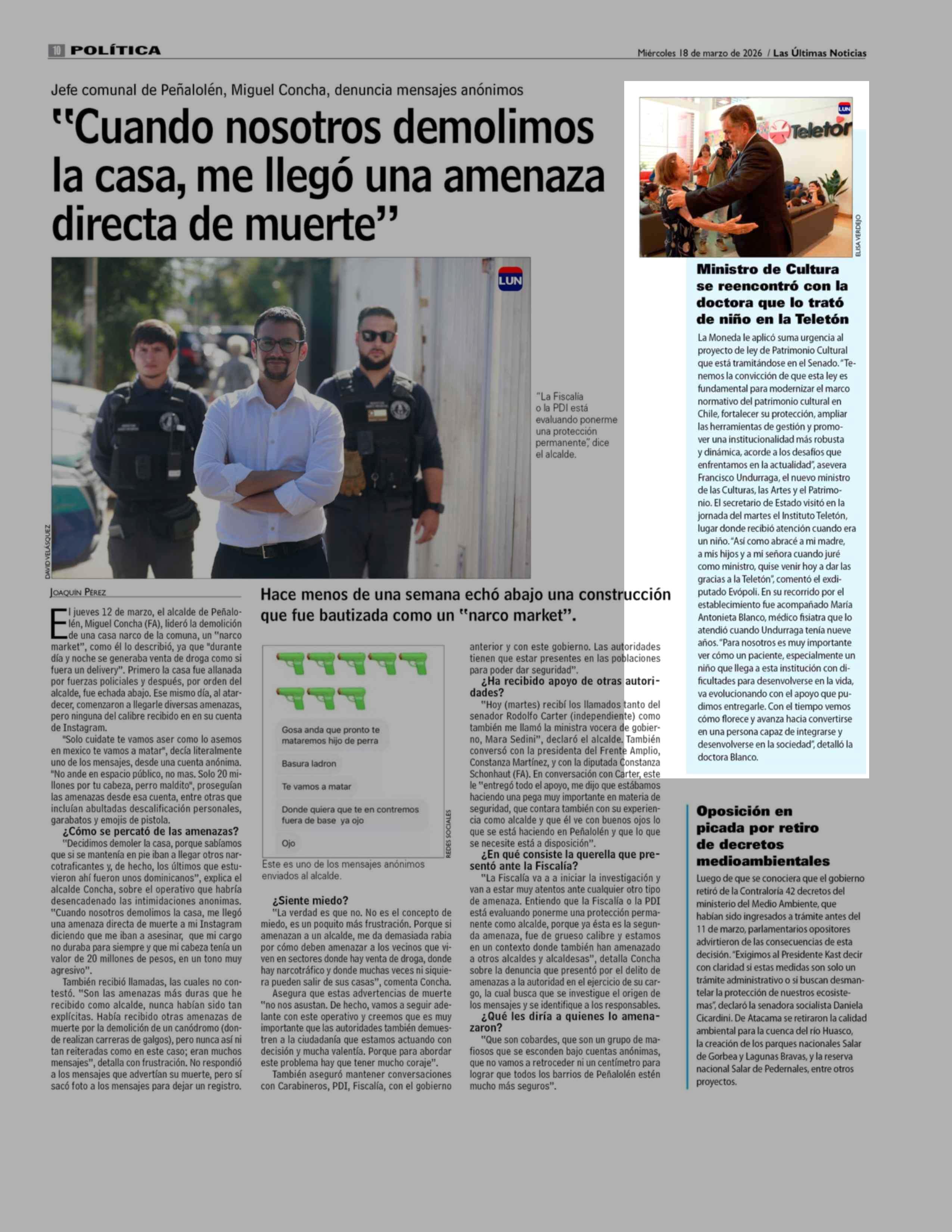 Ministro de Cultura se reencontró con la doctora que lo trató de niño en la Teletón 18-03-2026 Las Últimas Noticias |