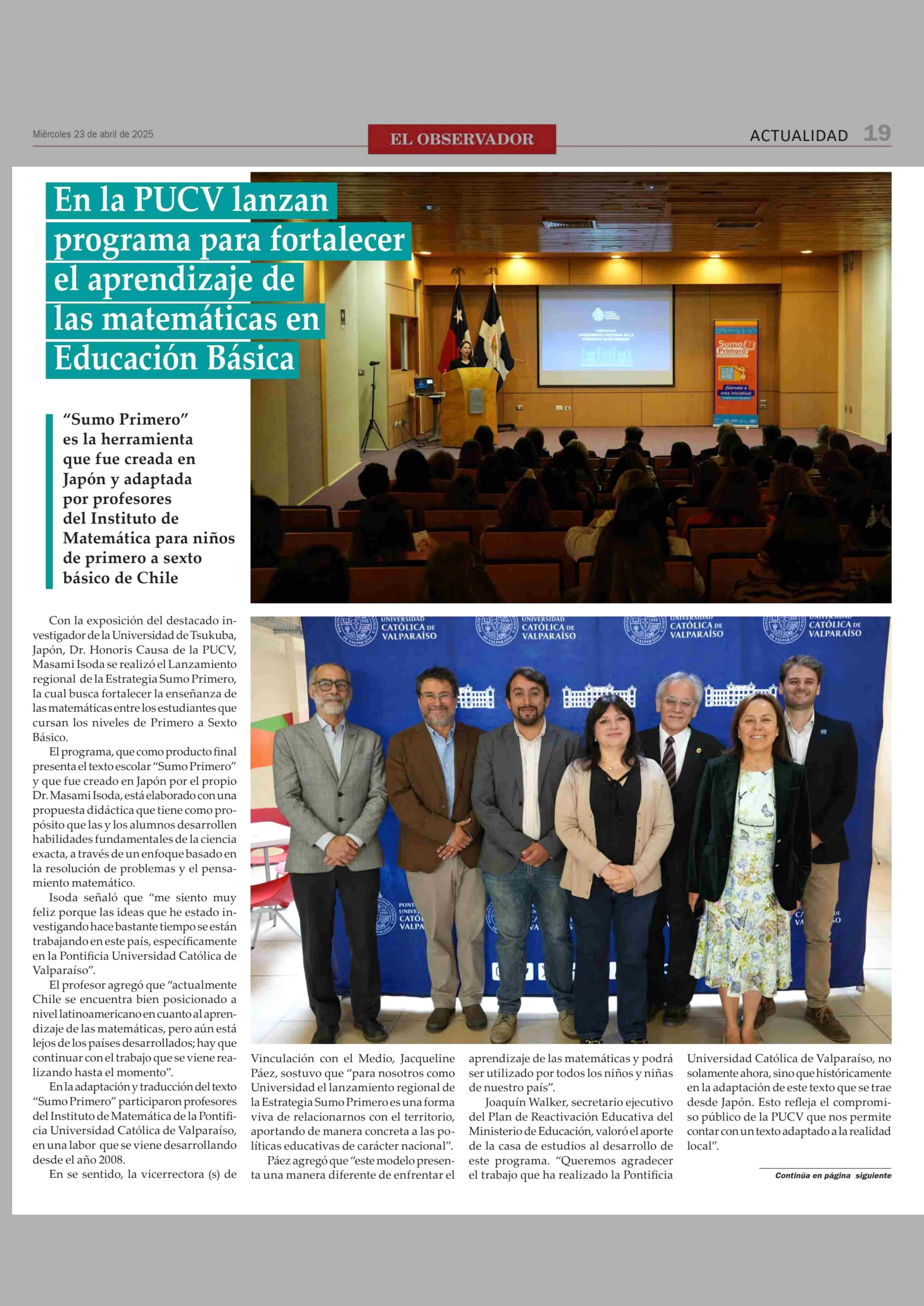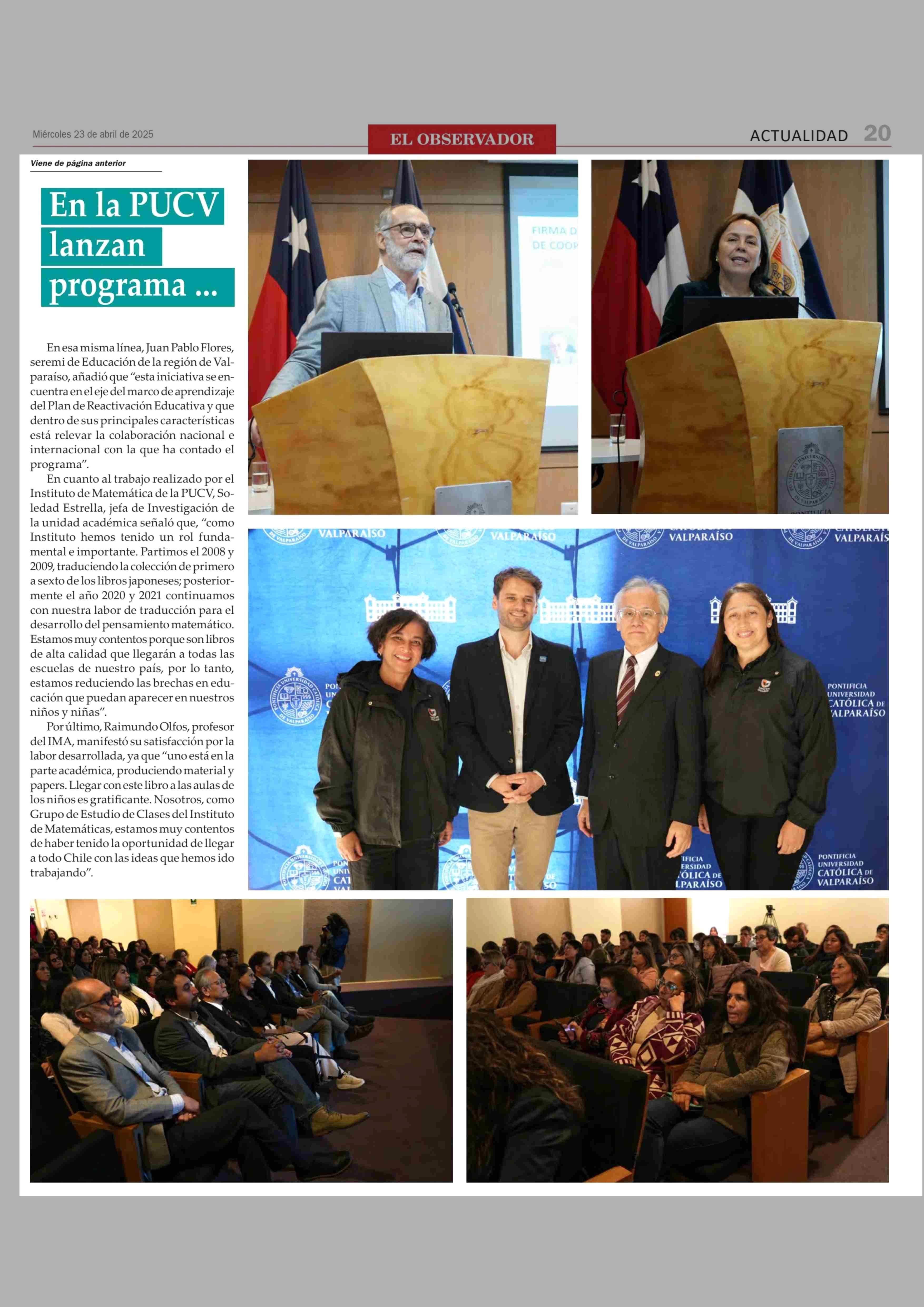 En la PUCV lanzan programa para fortalecer el aprendizaje de las matemáticas en Educación Básica 23-04-2025 El Observador Vespertino |