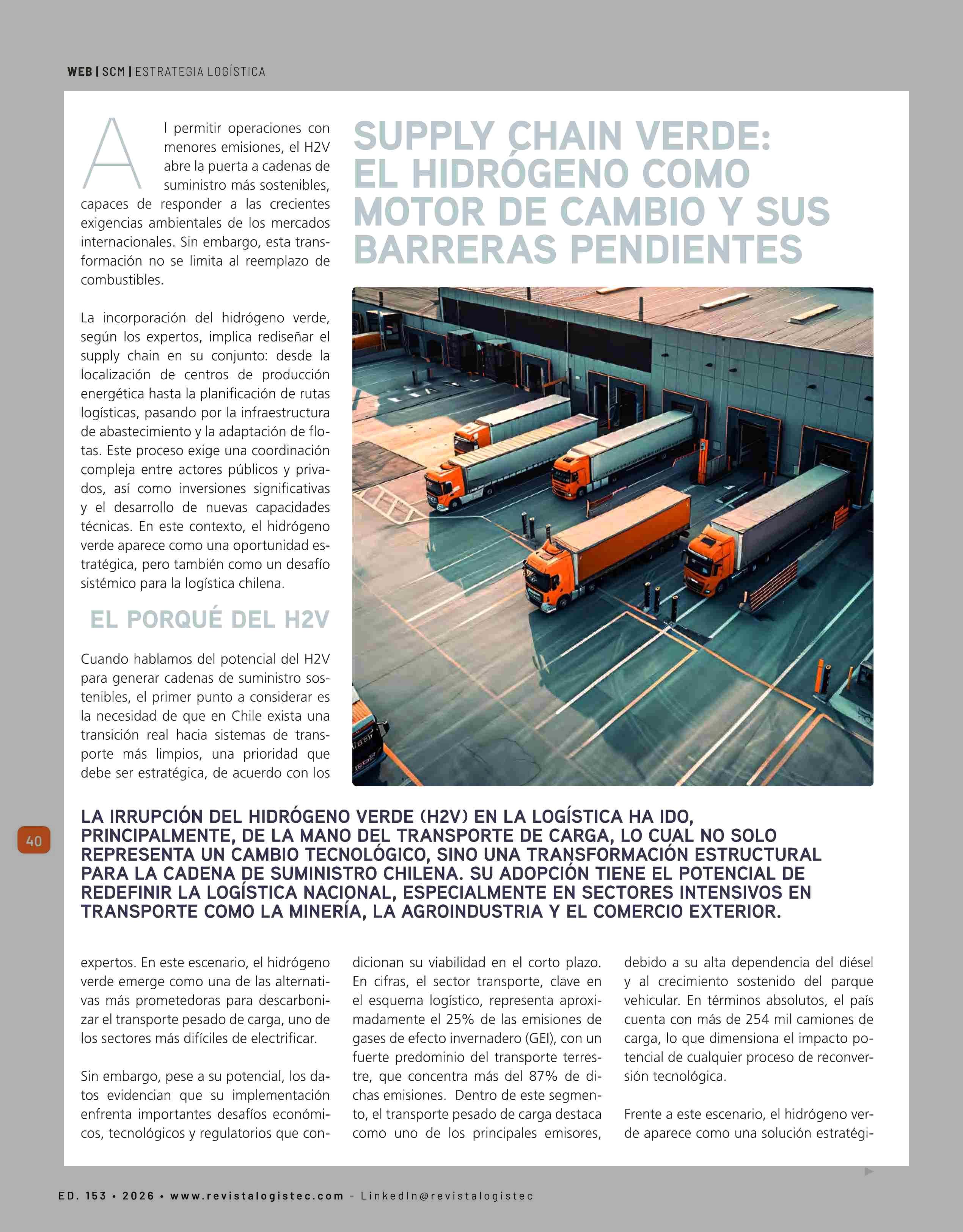 SUPPLY CHAIN VERDE: EL HIDROGENO COMO MOTOR DE CAMBIO Y SUS BARRERAS PENDIENTES 23-04-2026 Revista Logistec |