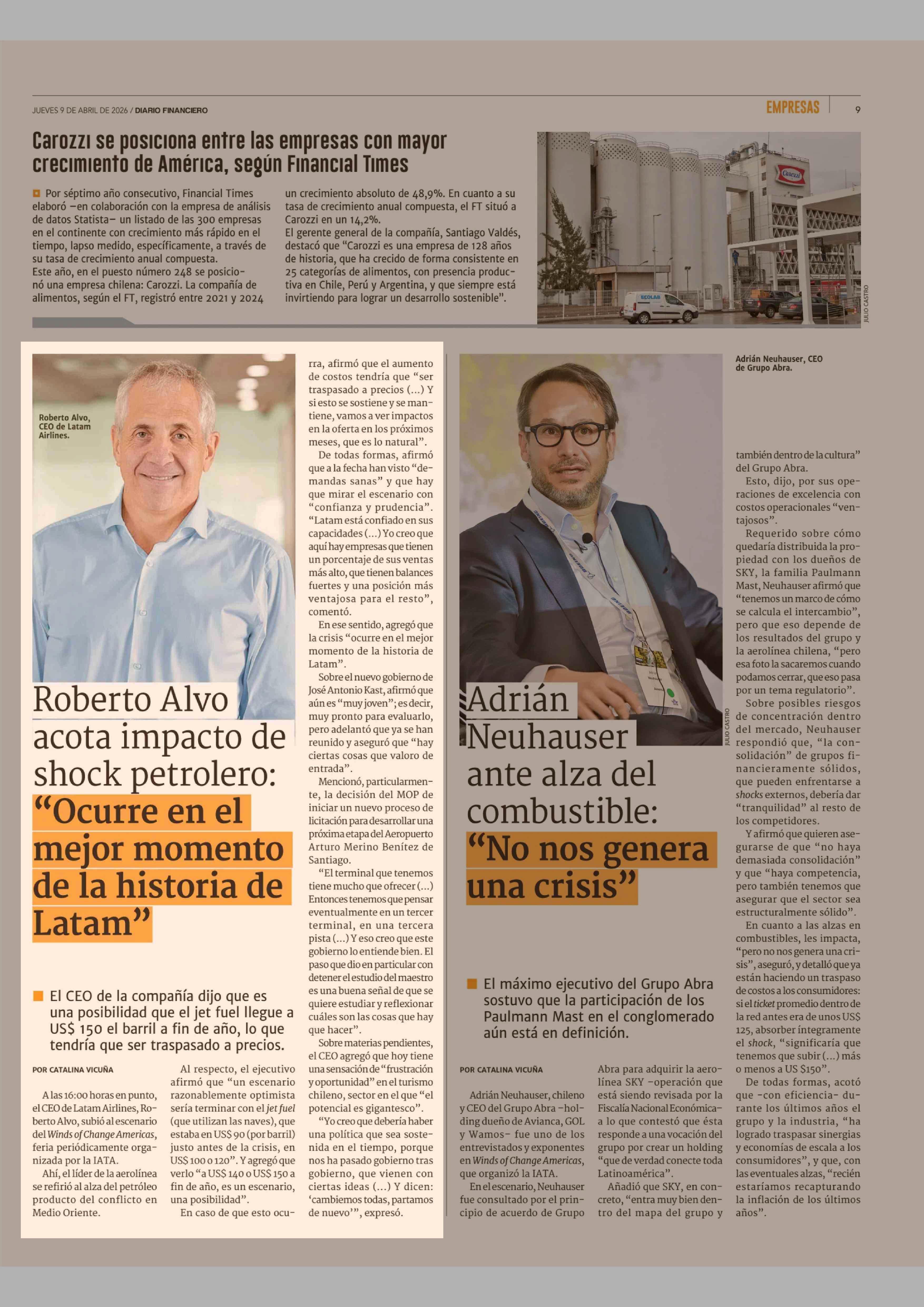 Roberto Alvo acota impacto de shock petrolero: "Ocurre en el mejor momento de la historia de Latam" 09-04-2026 Diario Financiero |