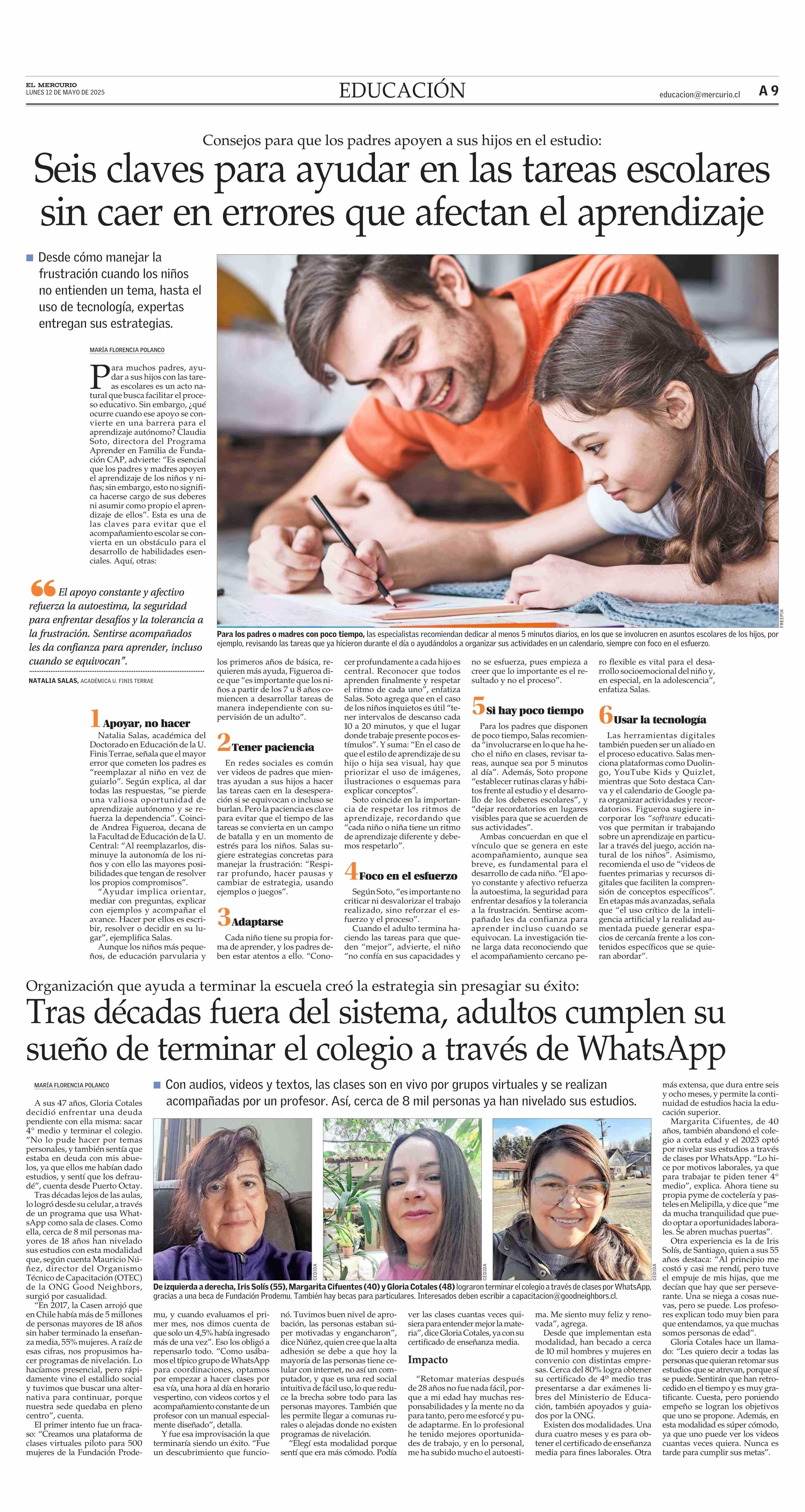 Tras décadas fuera del sistema, adultos cumplen su sueño de terminar el colegio a través de WhatsApp 12-05-2025 El Mercurio |