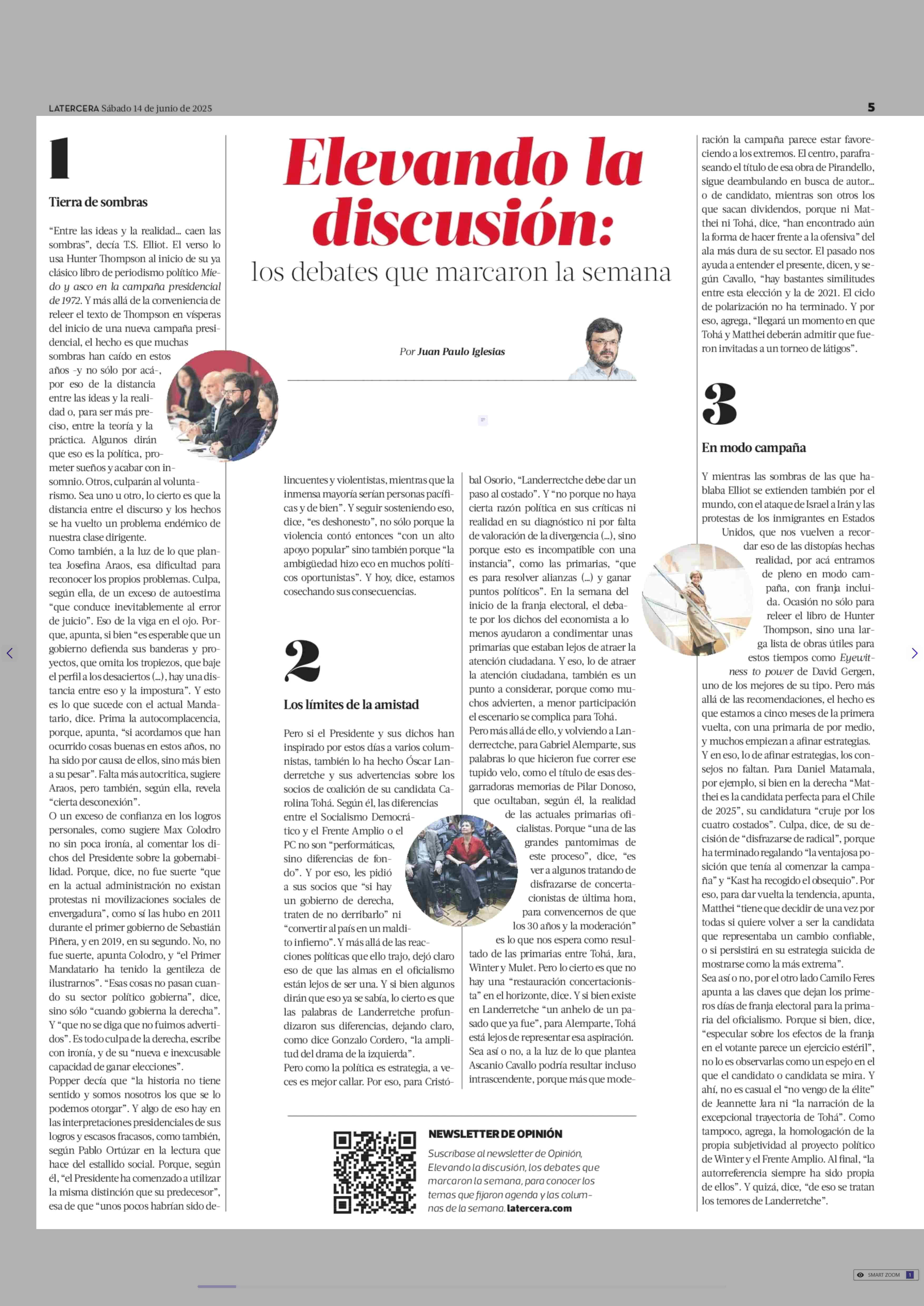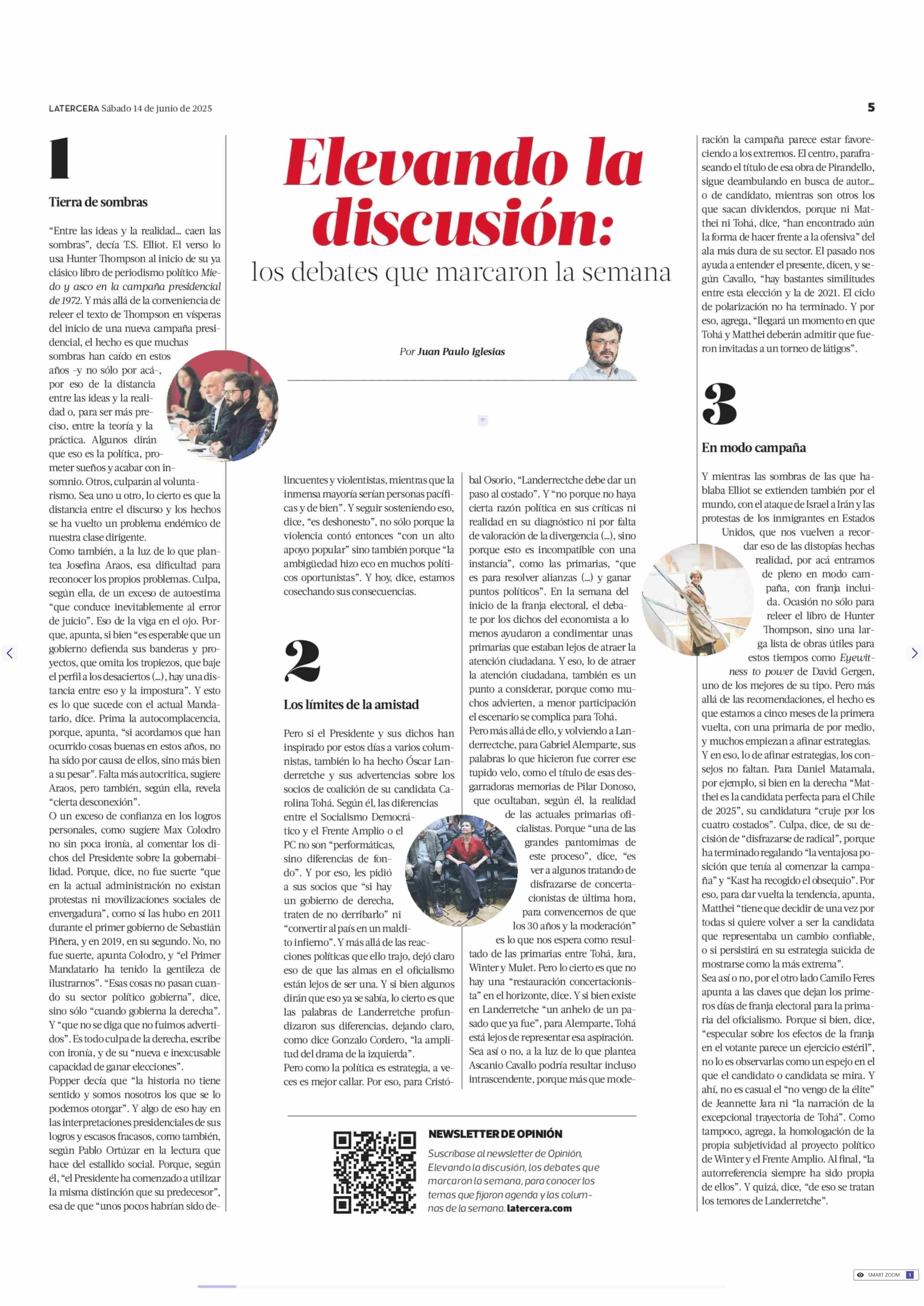 Elevando la discusión: los debates que marcaron la semana 14-06-2025 La Tercera |