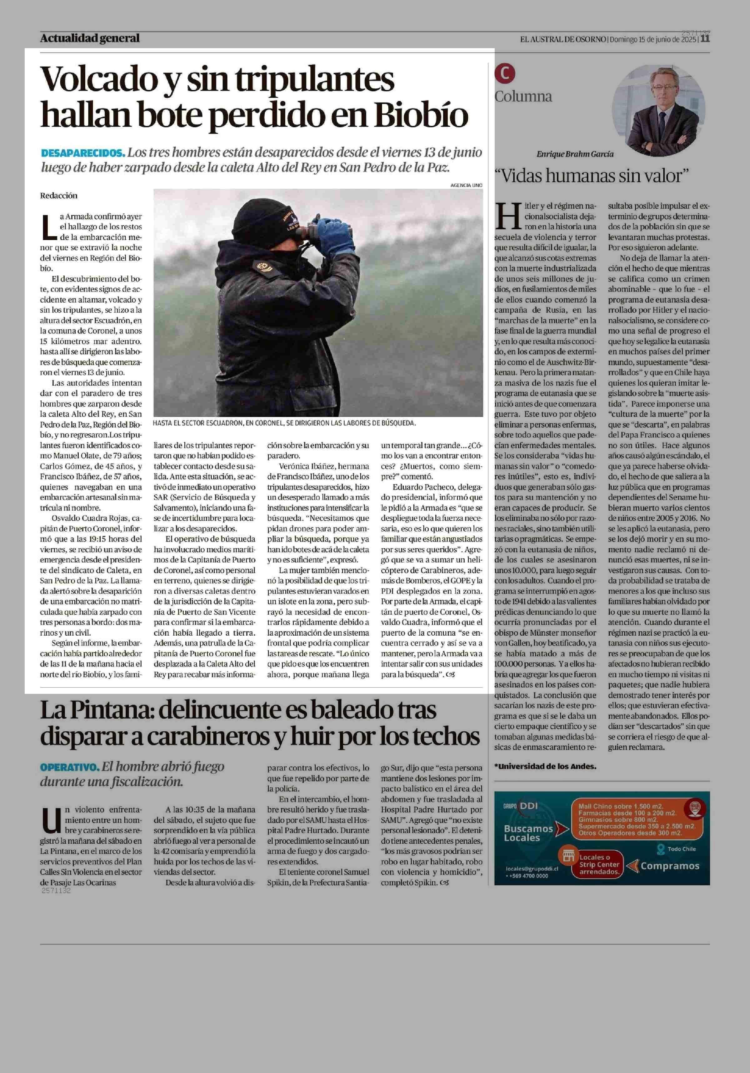 Volcado y sin tripulantes hallan bote perdido en Biobío 15-06-2025 El Austral de Osorno |