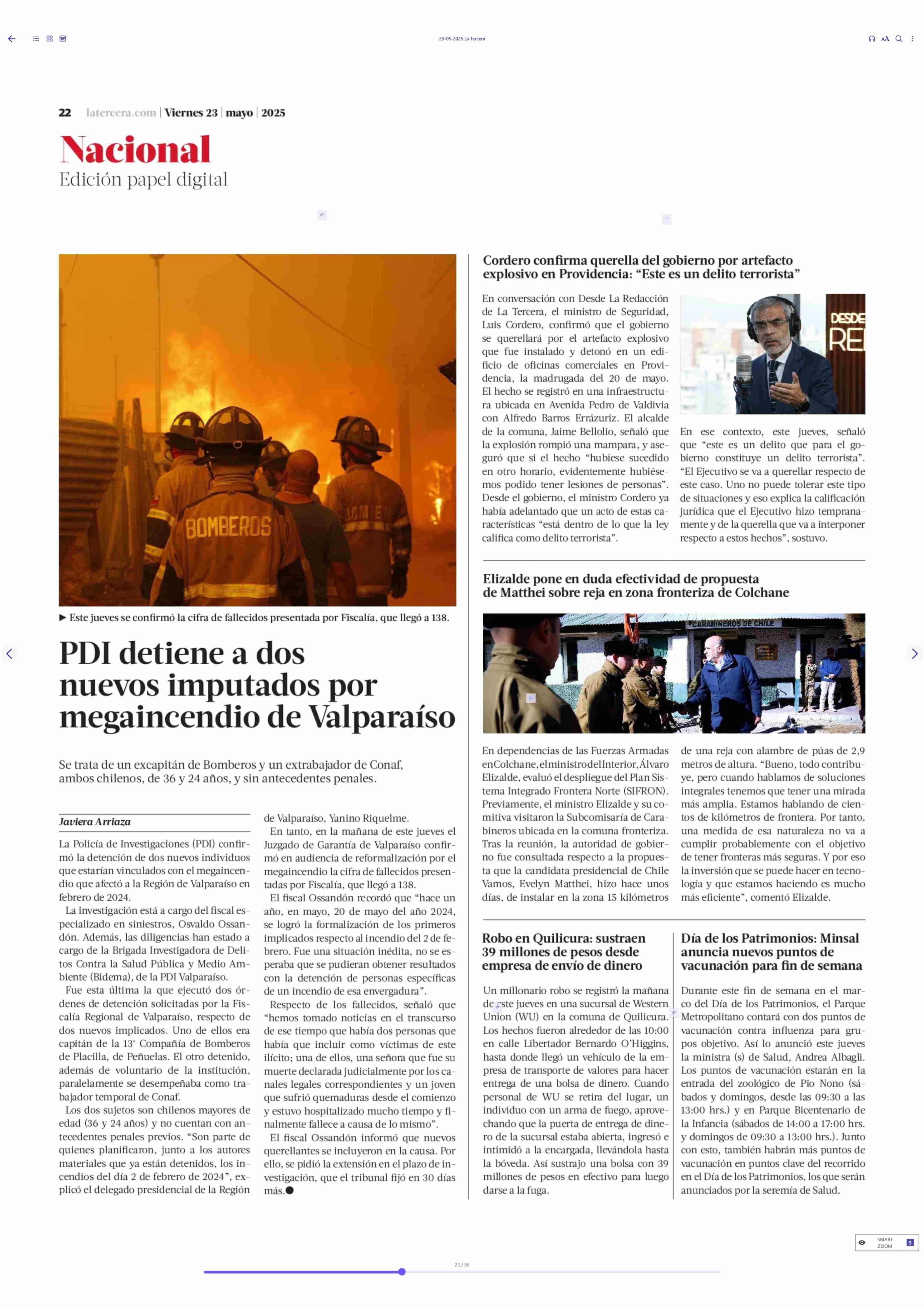 PDI detiene a dos nuevos imputados por megaincendio de Valparaíso 23-05-2025 La Tercera |