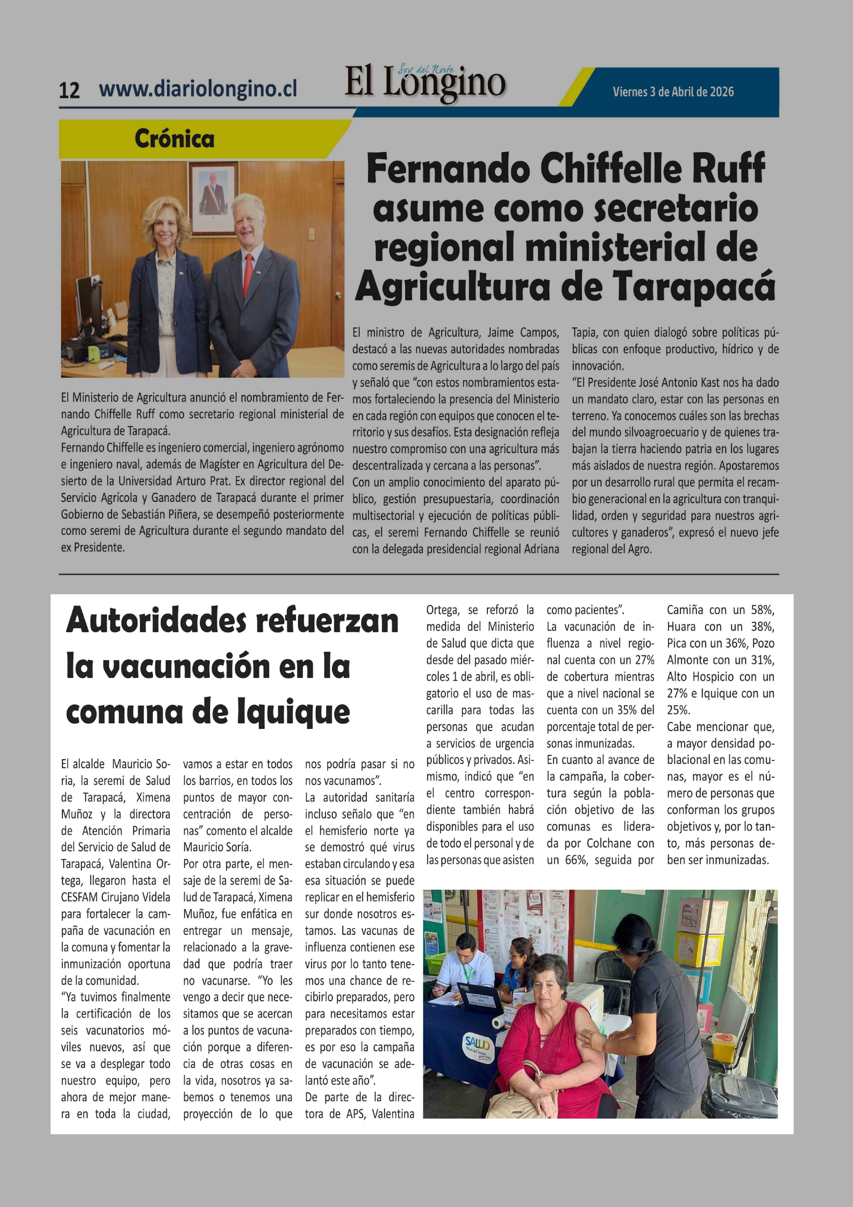 Autoridades refuerzan la vacunación en la comuna de Iquique 03-04-2026 El Longino |