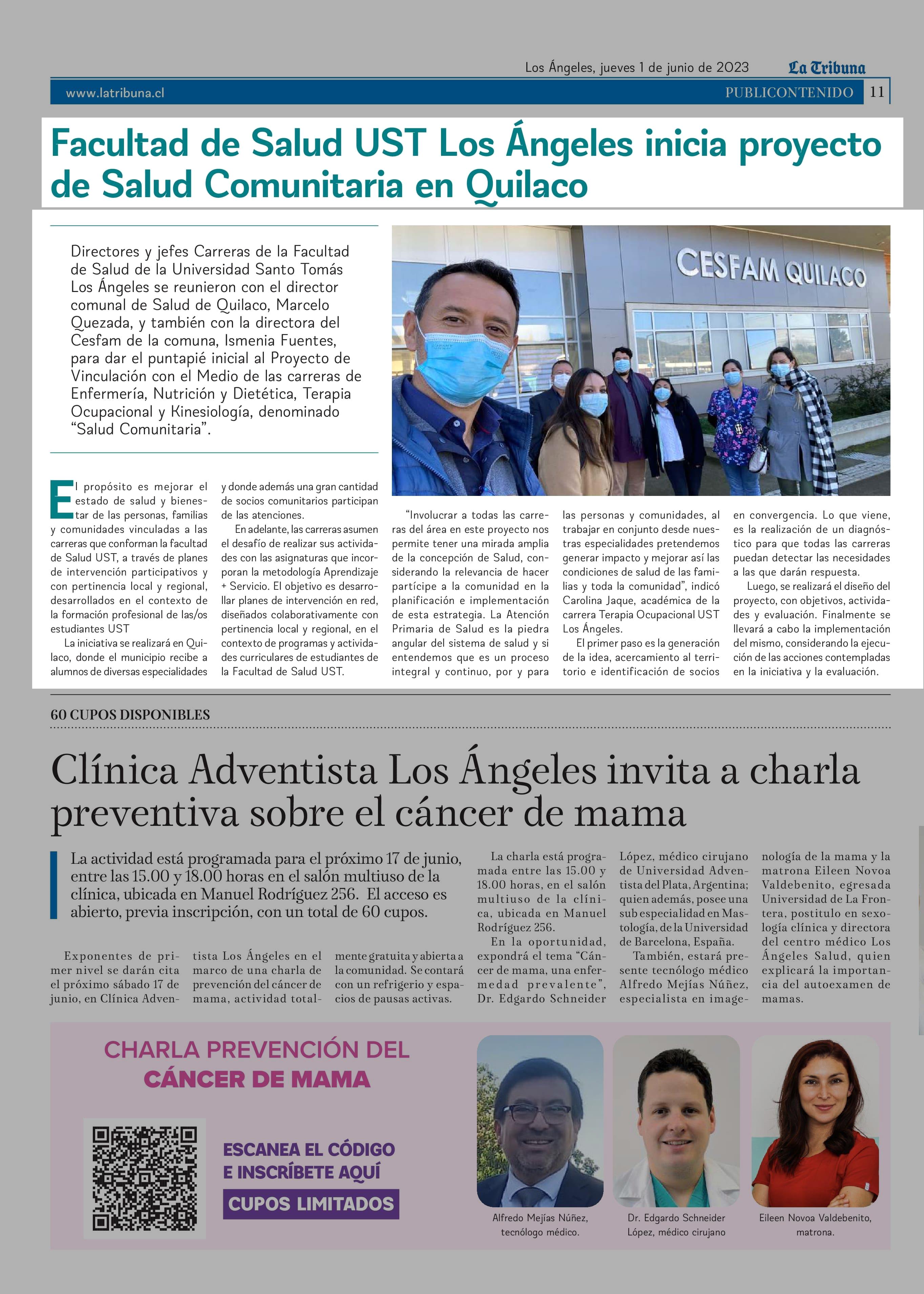 Facultad de Salud UST Los Ángeles inicia proyecto de Salud Comunitaria en Quilaco 01-06-2023 La Tribuna |