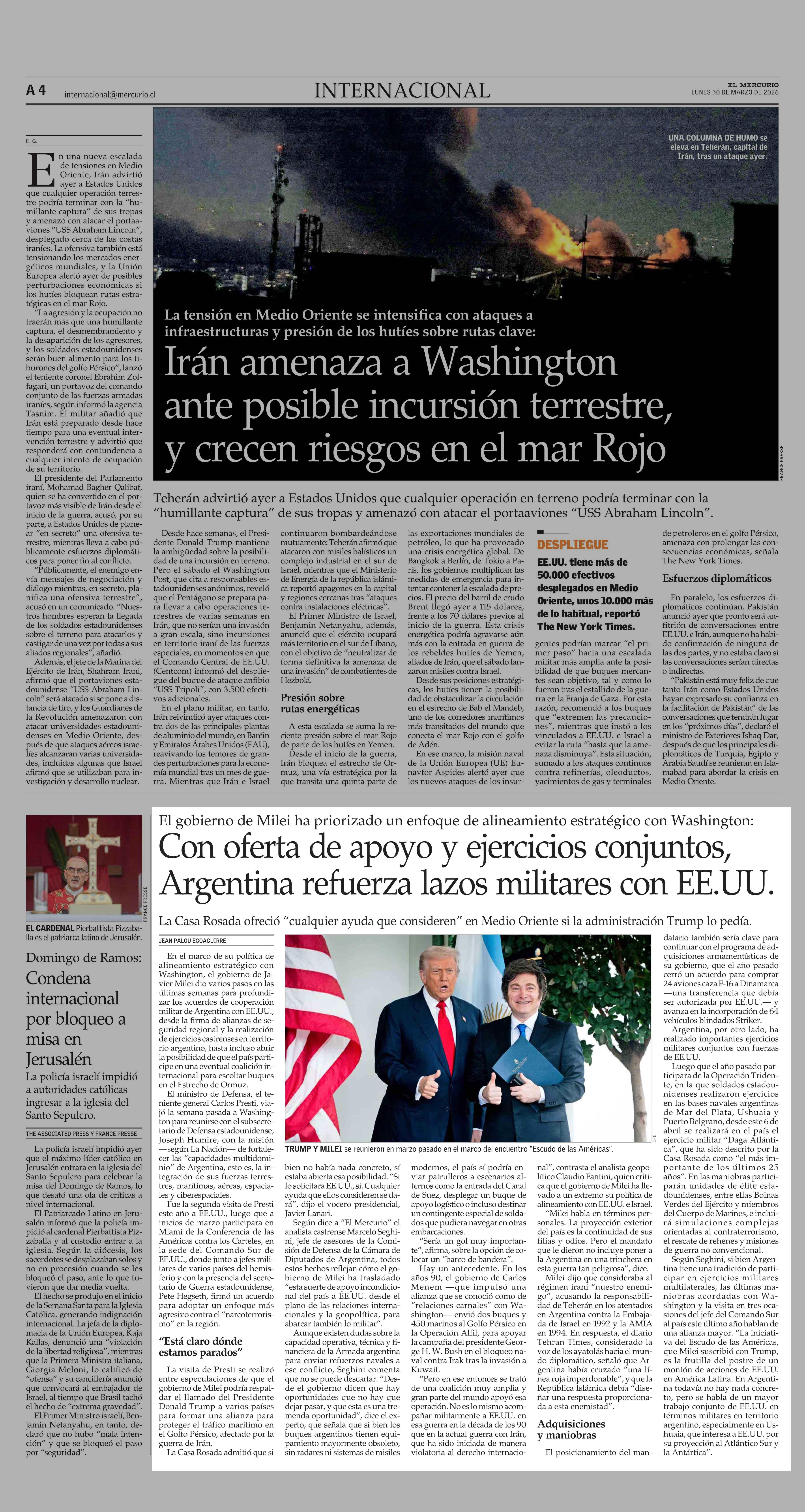 Con oferta de apoyo y ejercicios conjuntos, Argentina refuerza lazos militares con EE.UU. 30-03-2026 El Mercurio |