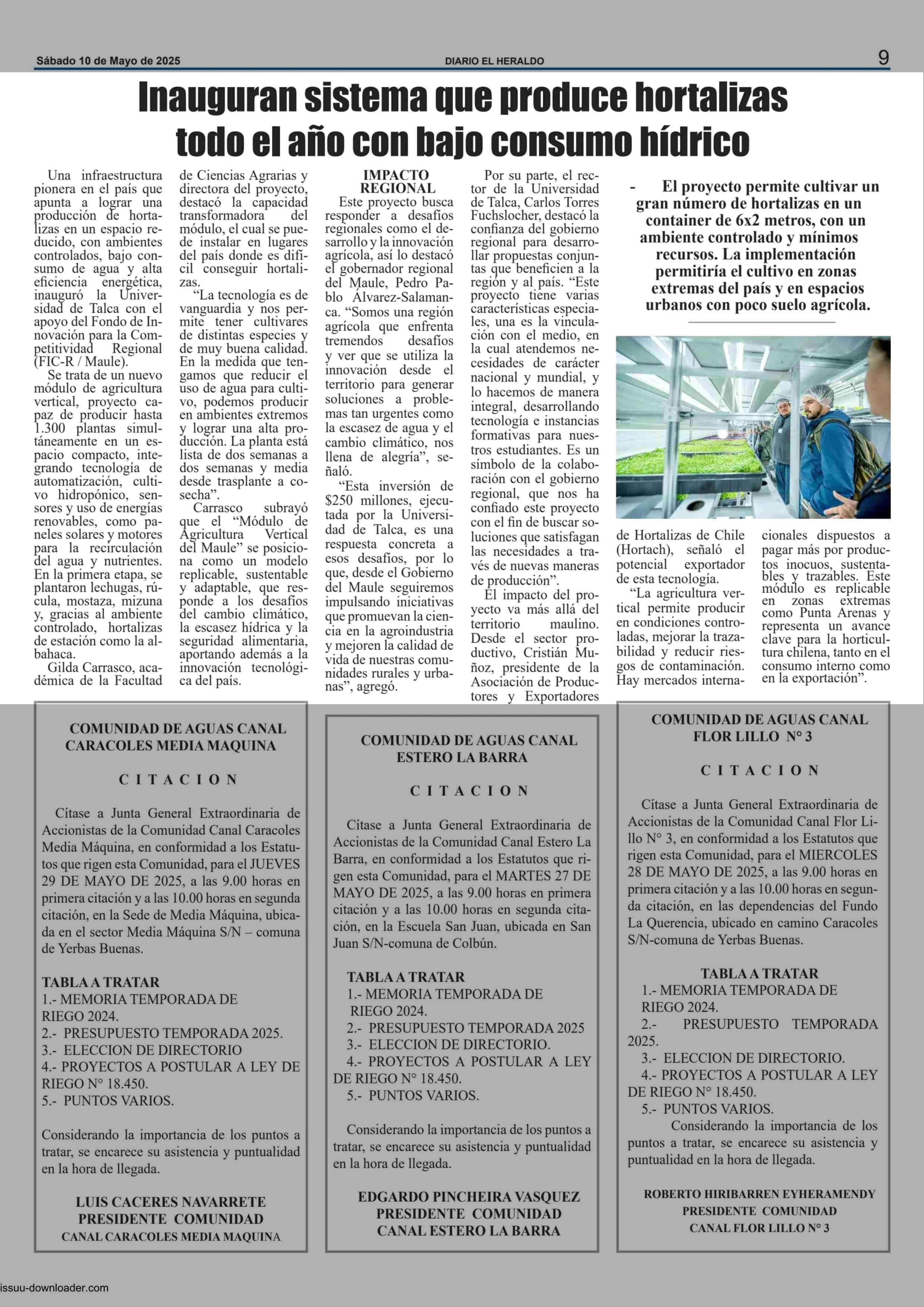 | Fecha: | 10-05-2025 | Sector: | Noticia general | Región: | Región del Maule |