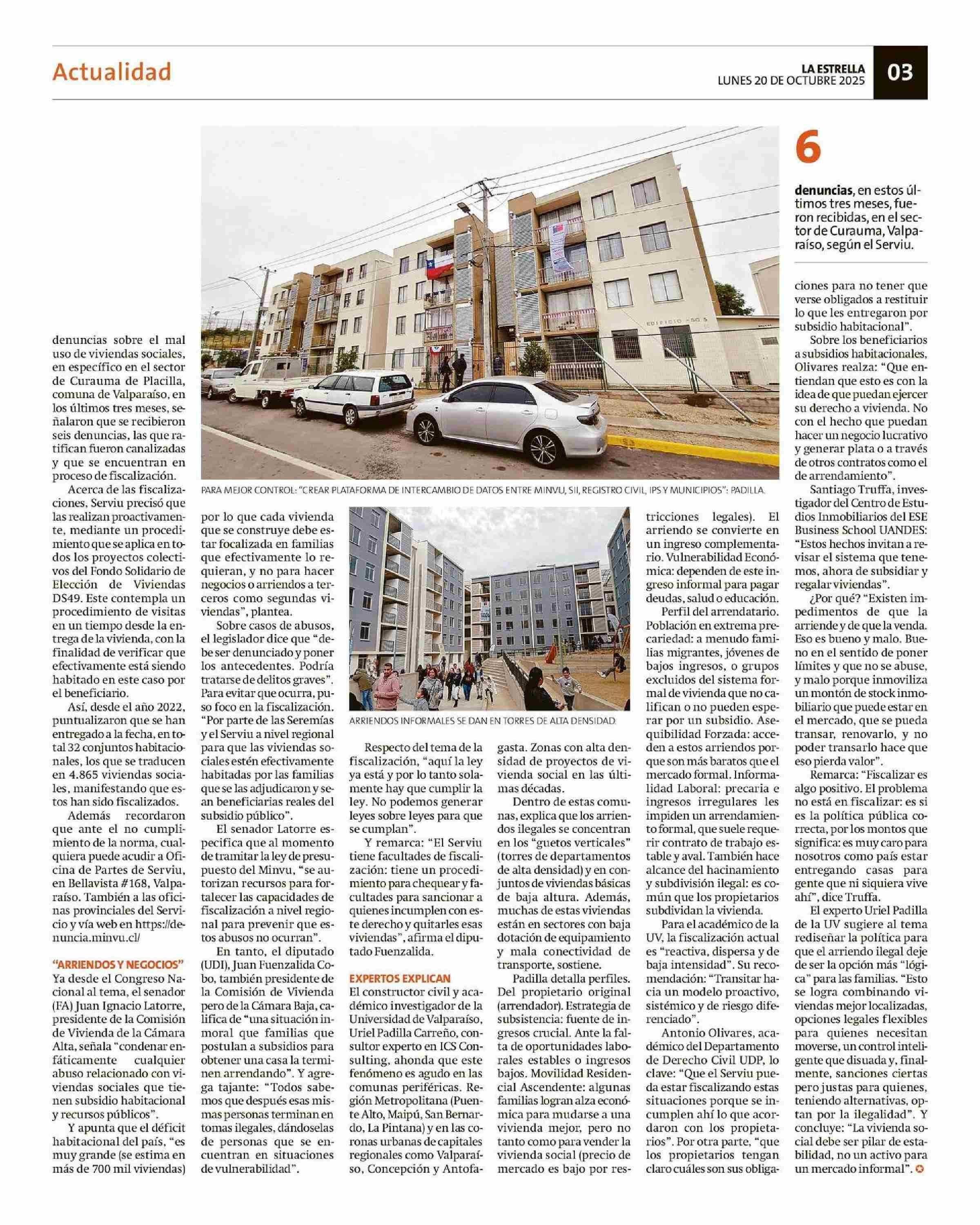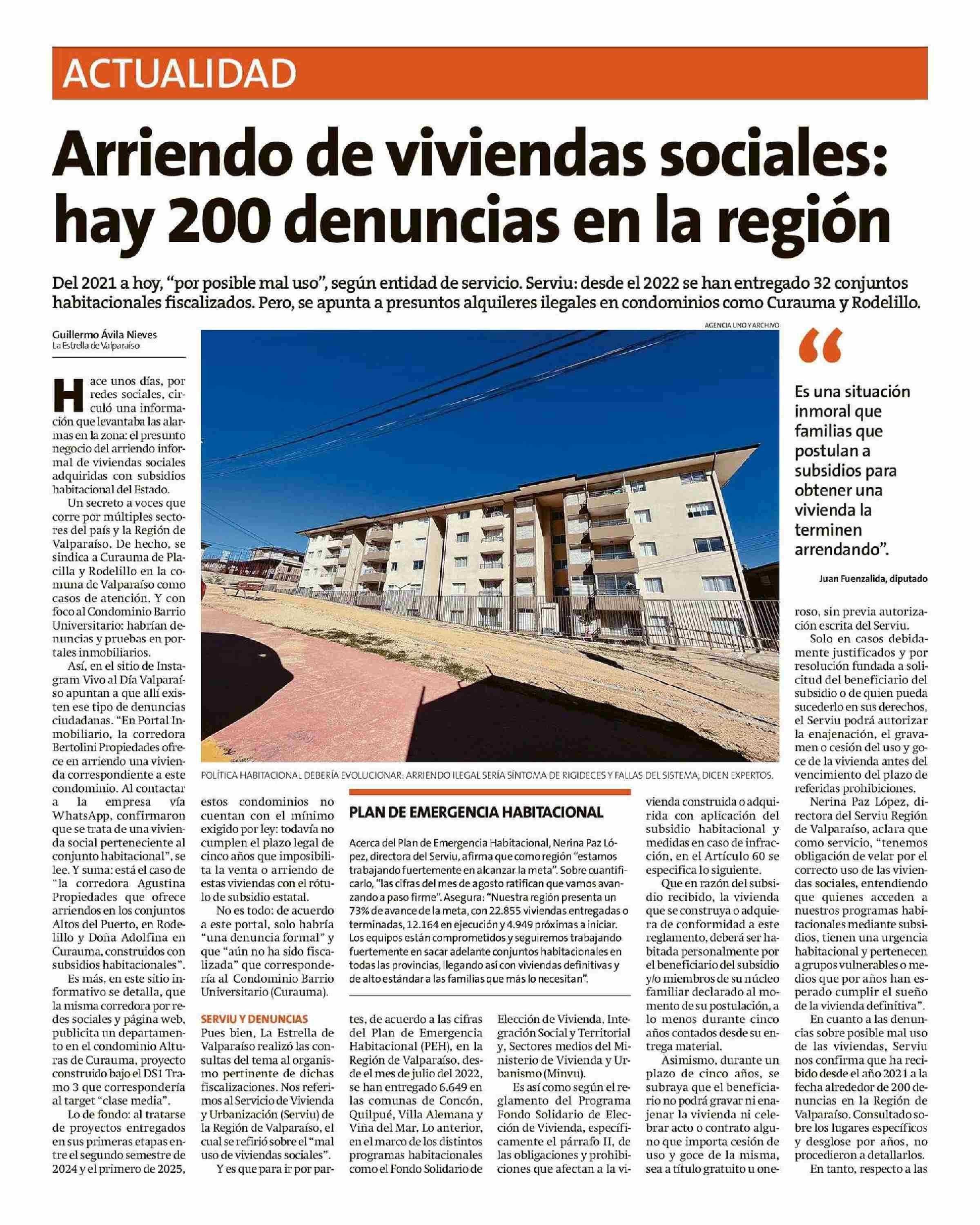 Arriendo de viviendas sociales: hay 200 denuncias en la región 20-10-2025 La Estrella de Valparaíso |