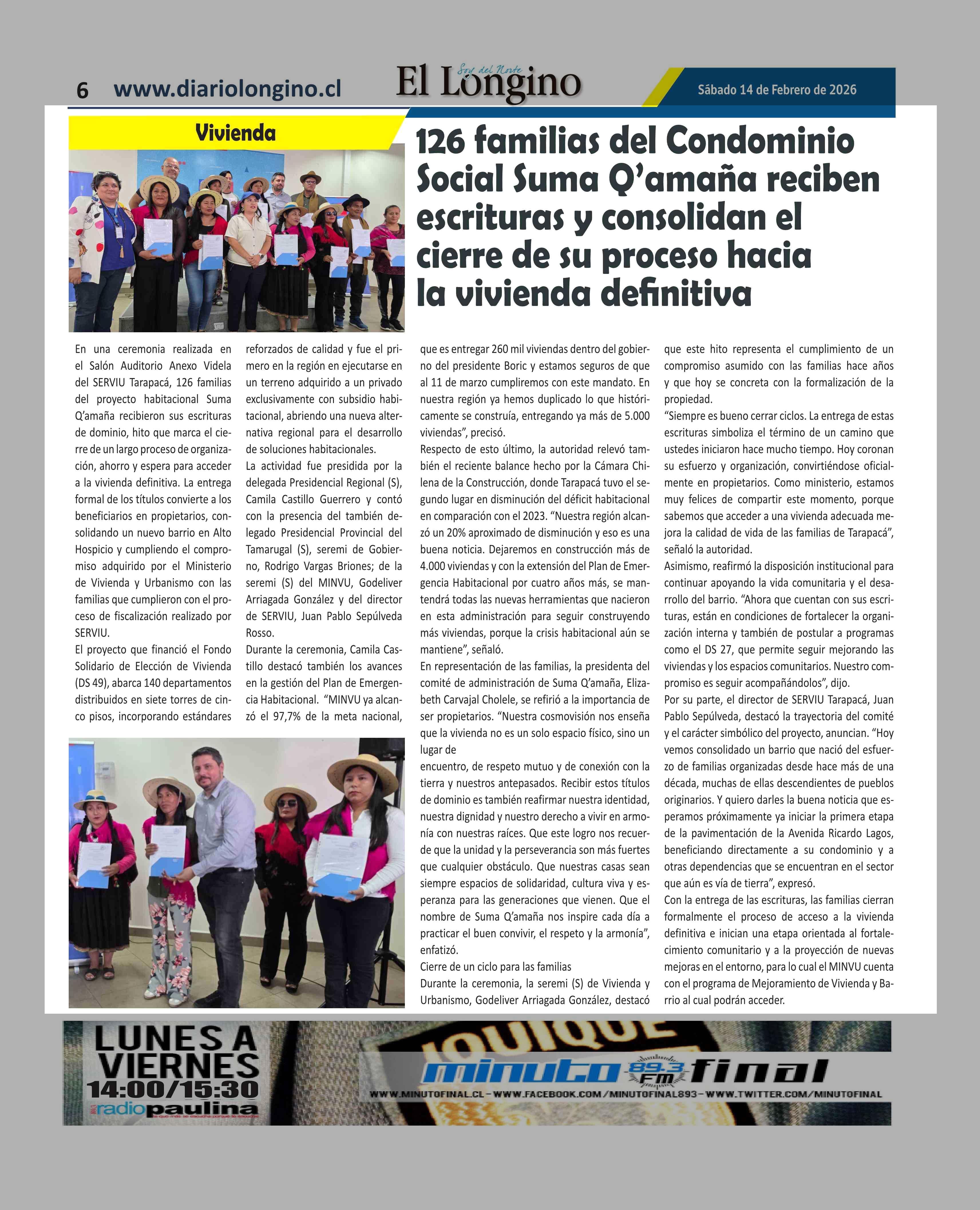 | Fecha: | 14-02-2026 | Sector: | Noticia general | Región: | Región de Tarapacá |