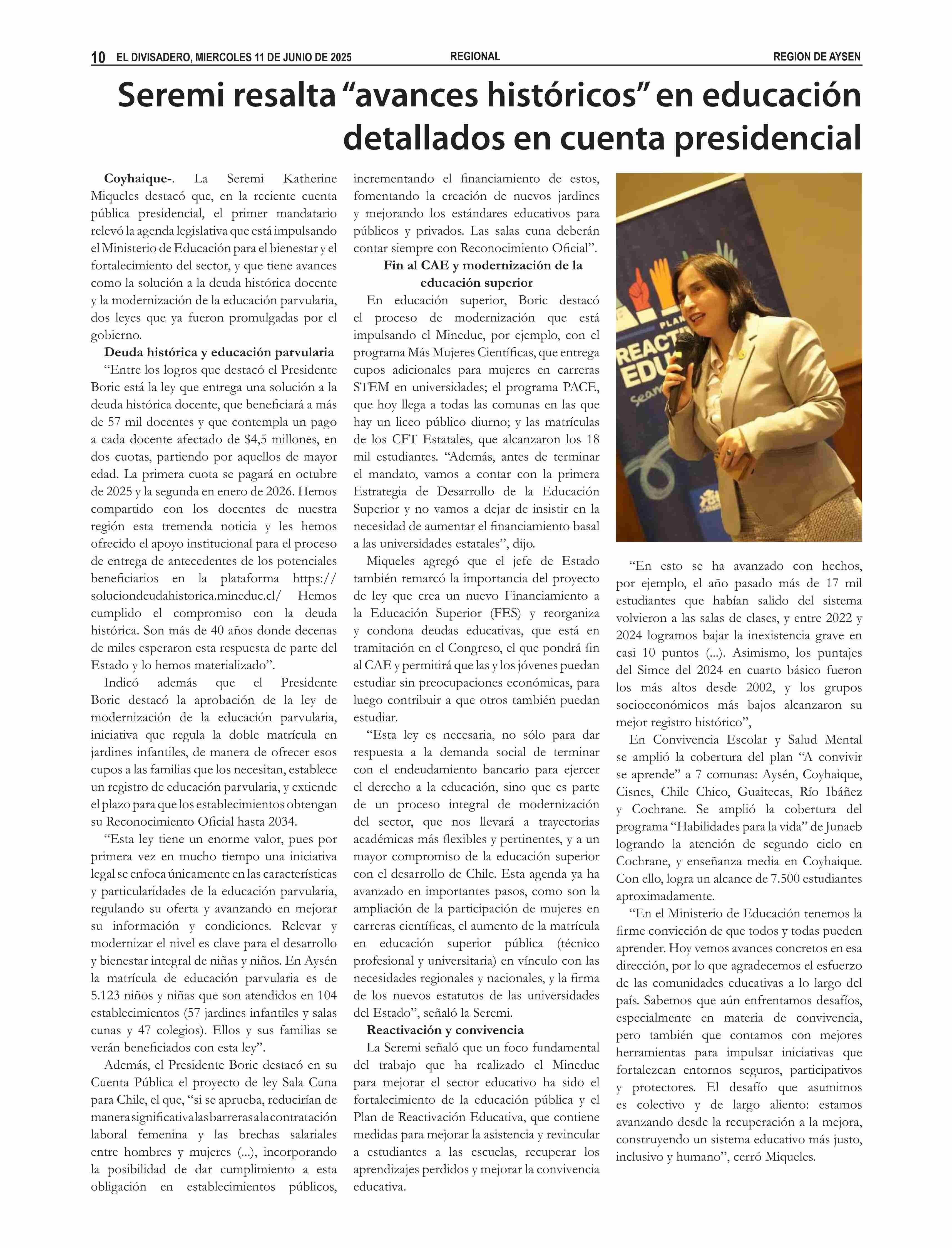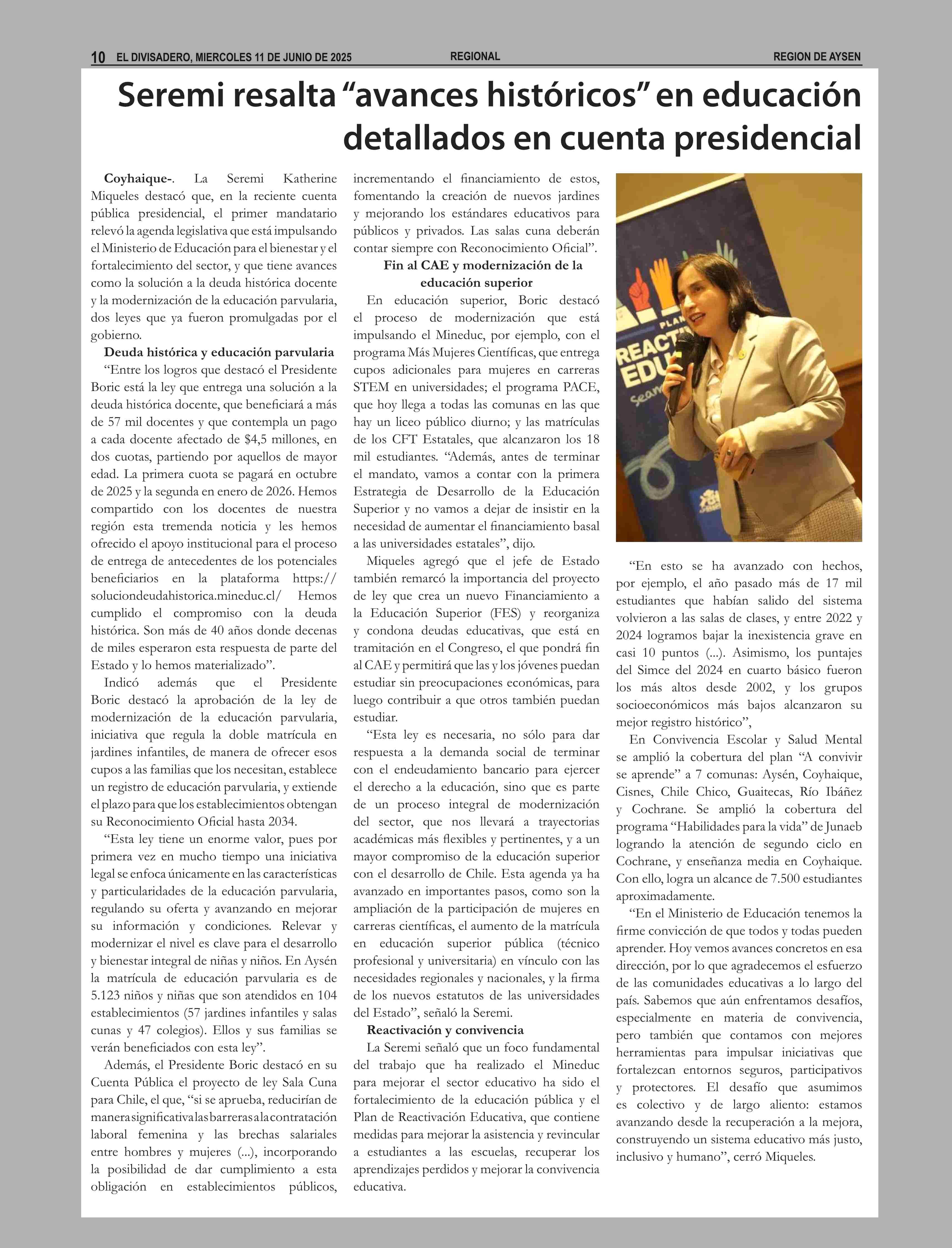 Seremi resalta “avances históricos” en educación detallados en cuenta presidencial 11-06-2025 El Divisadero |
