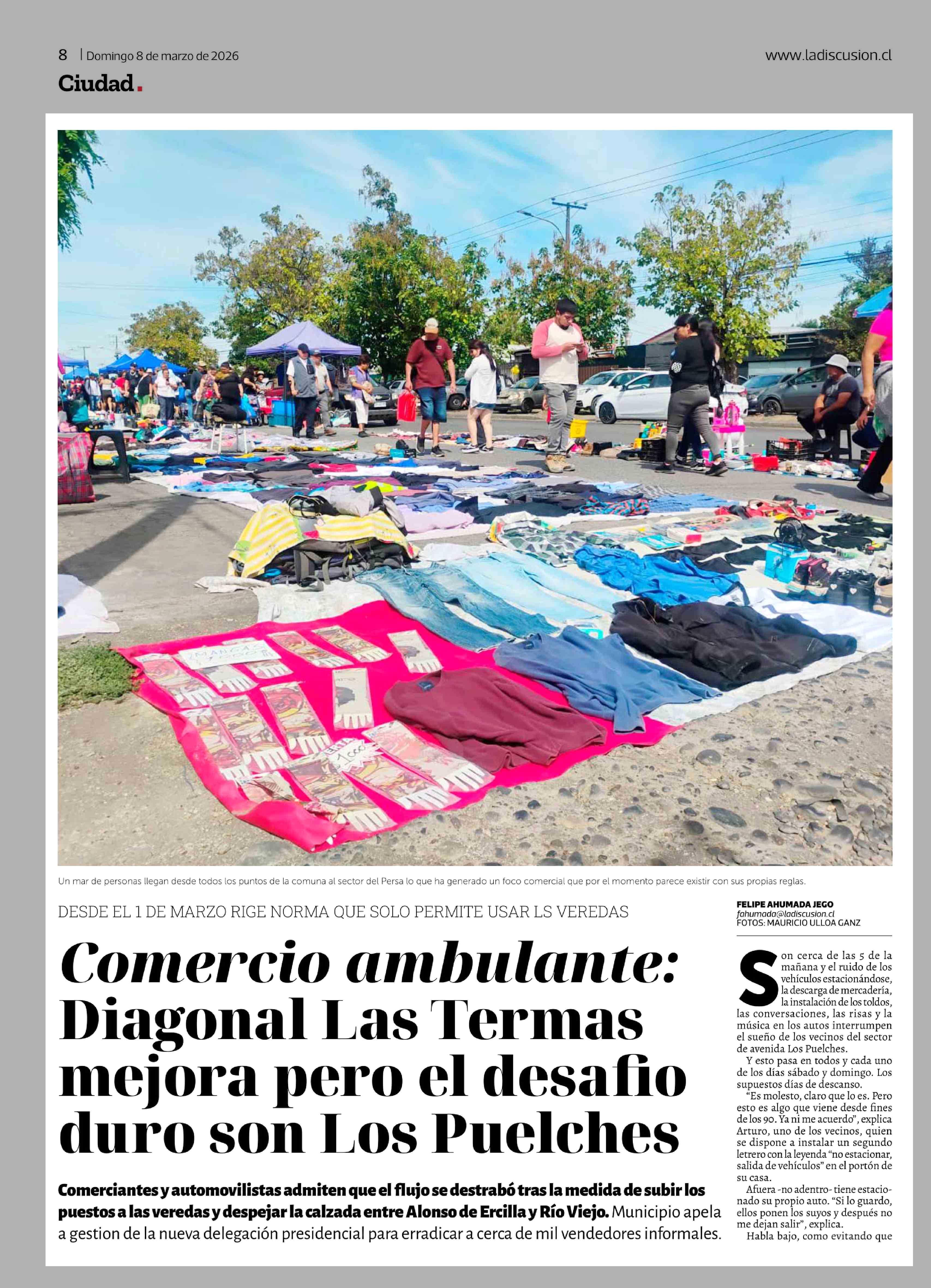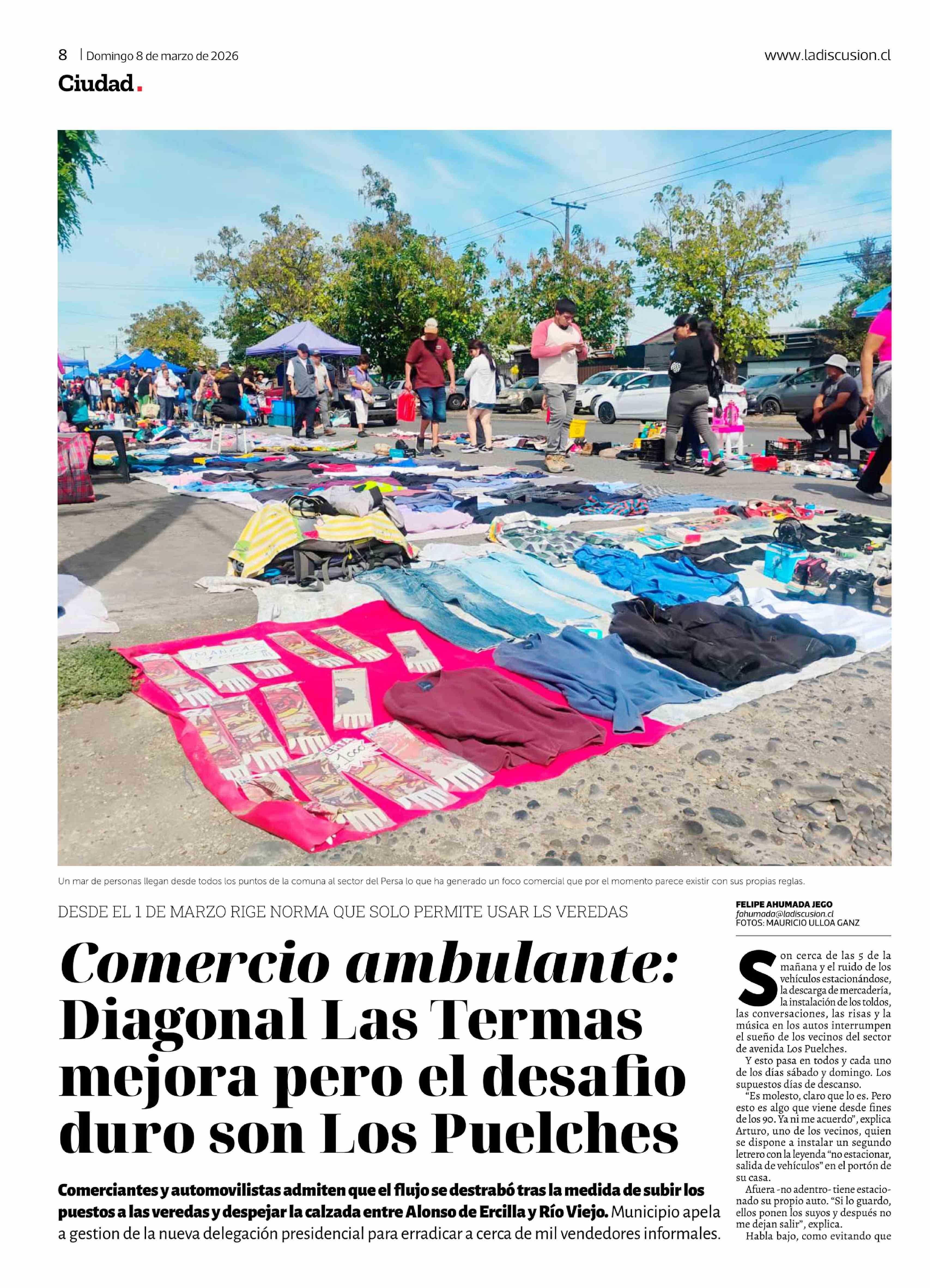 Comercio ambulante: Diagonal Las Termas mejora pero el desafio duro son Los Puelches 08-03-2026 La Discusión |