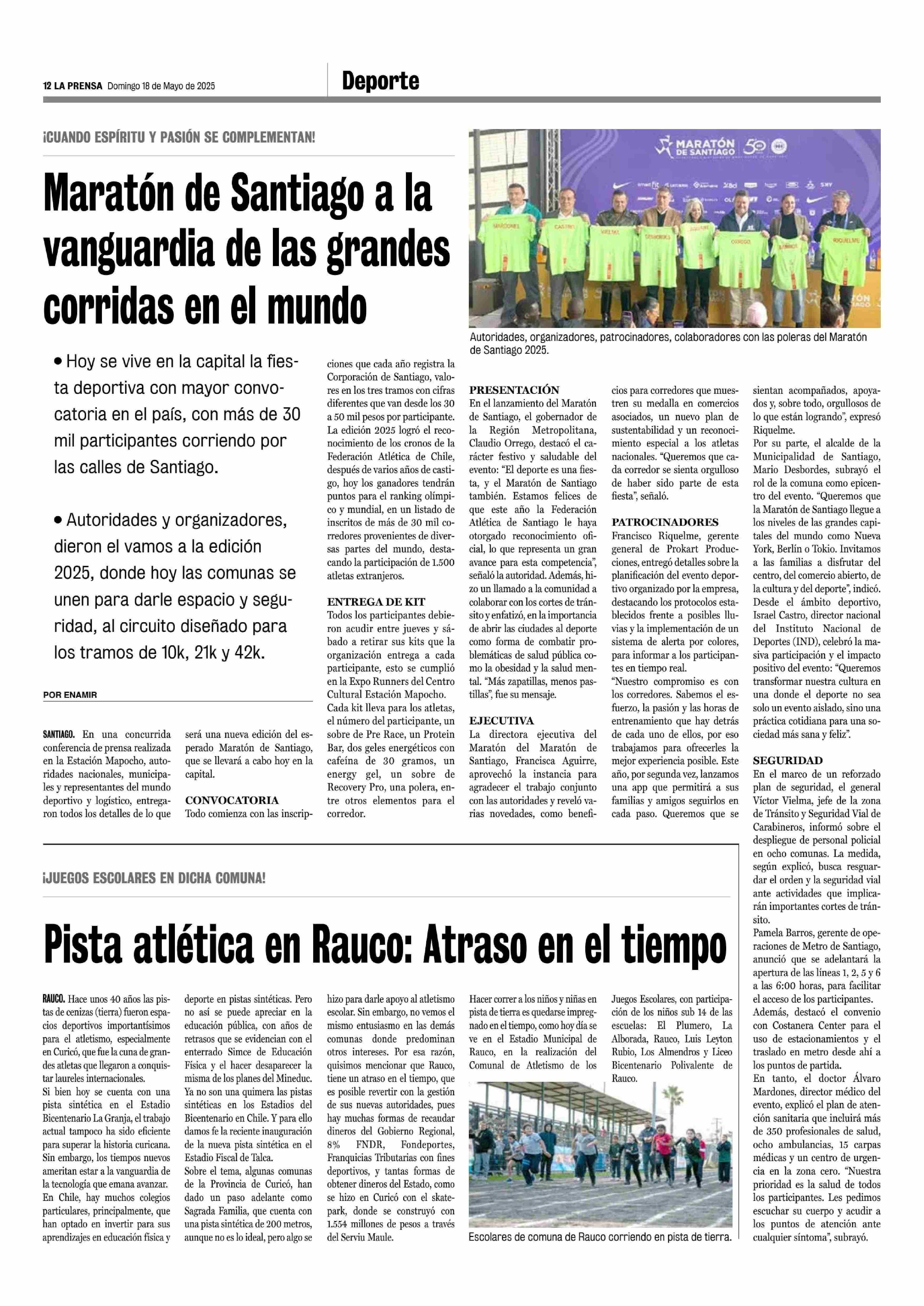 Pista atlética en Rauco: Atraso en el tiempo 18-05-2025 La Prensa de Curicó |