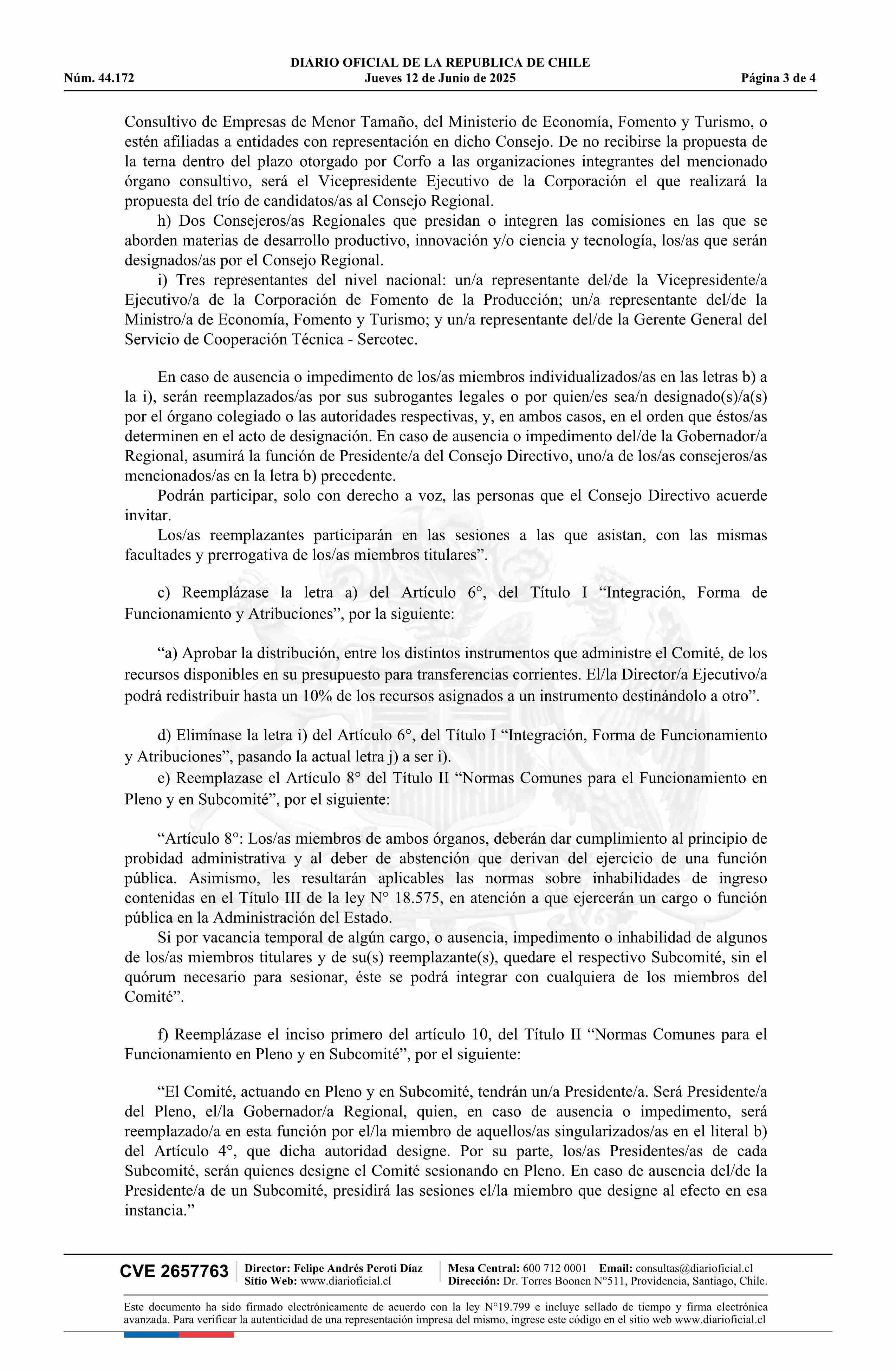 | Título: | Resolución exenta número 557, de 2025.- Ejecuta parcialmente Acuerdo de Consejo N° 3.175 de 2024, que modifica Acuerdo de Consejo N° 3.130 de 2022, que deja sin efecto Acuerdo de Consejo N° 2.868 de 2015 y sus modificaciones; crea Comités de Desarrollo Productivo Regional que indica, y aprueba norma |