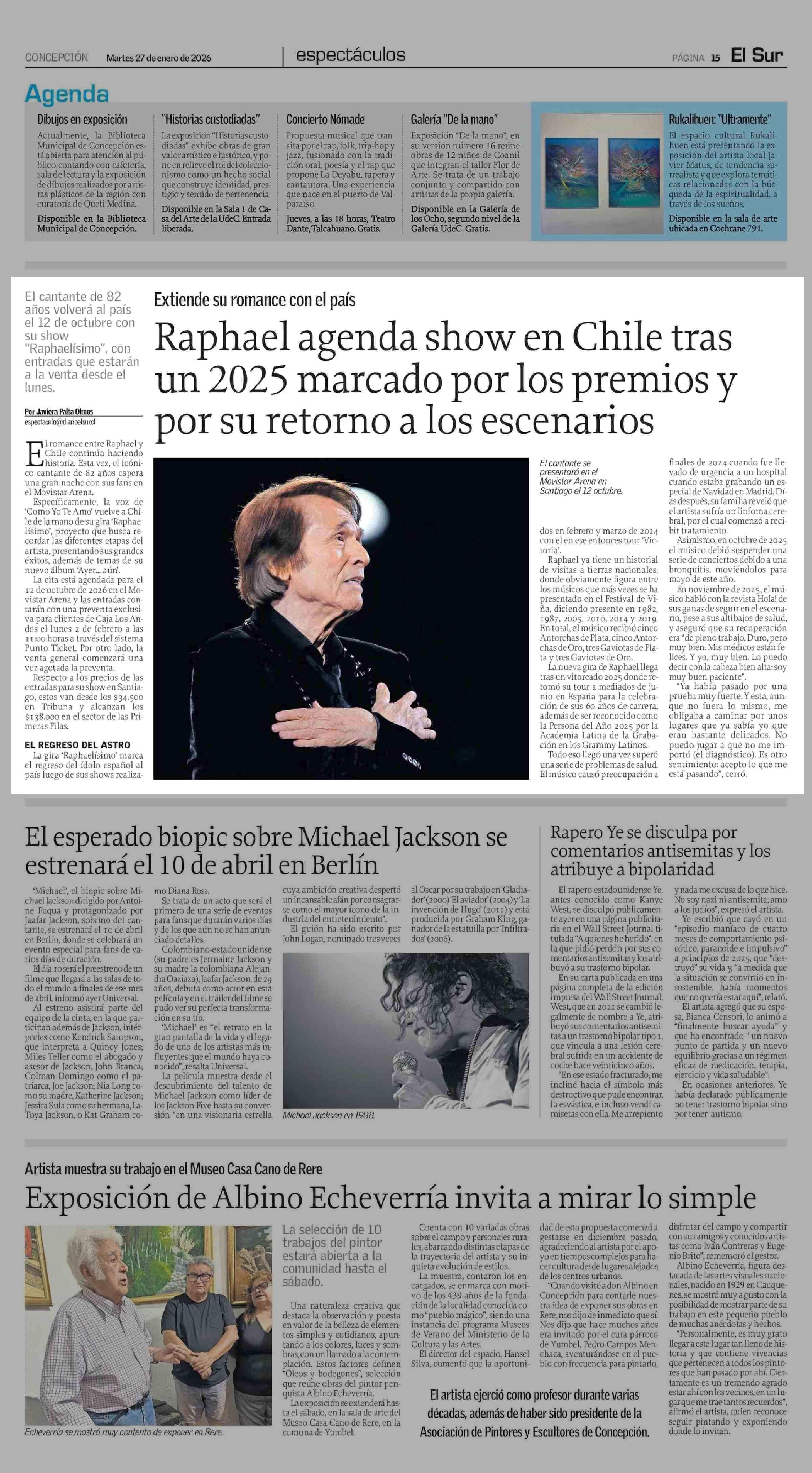 Título: Raphael agenda show en Chile tras un 2025 marcado por los premios y por su retorno a los escenarios