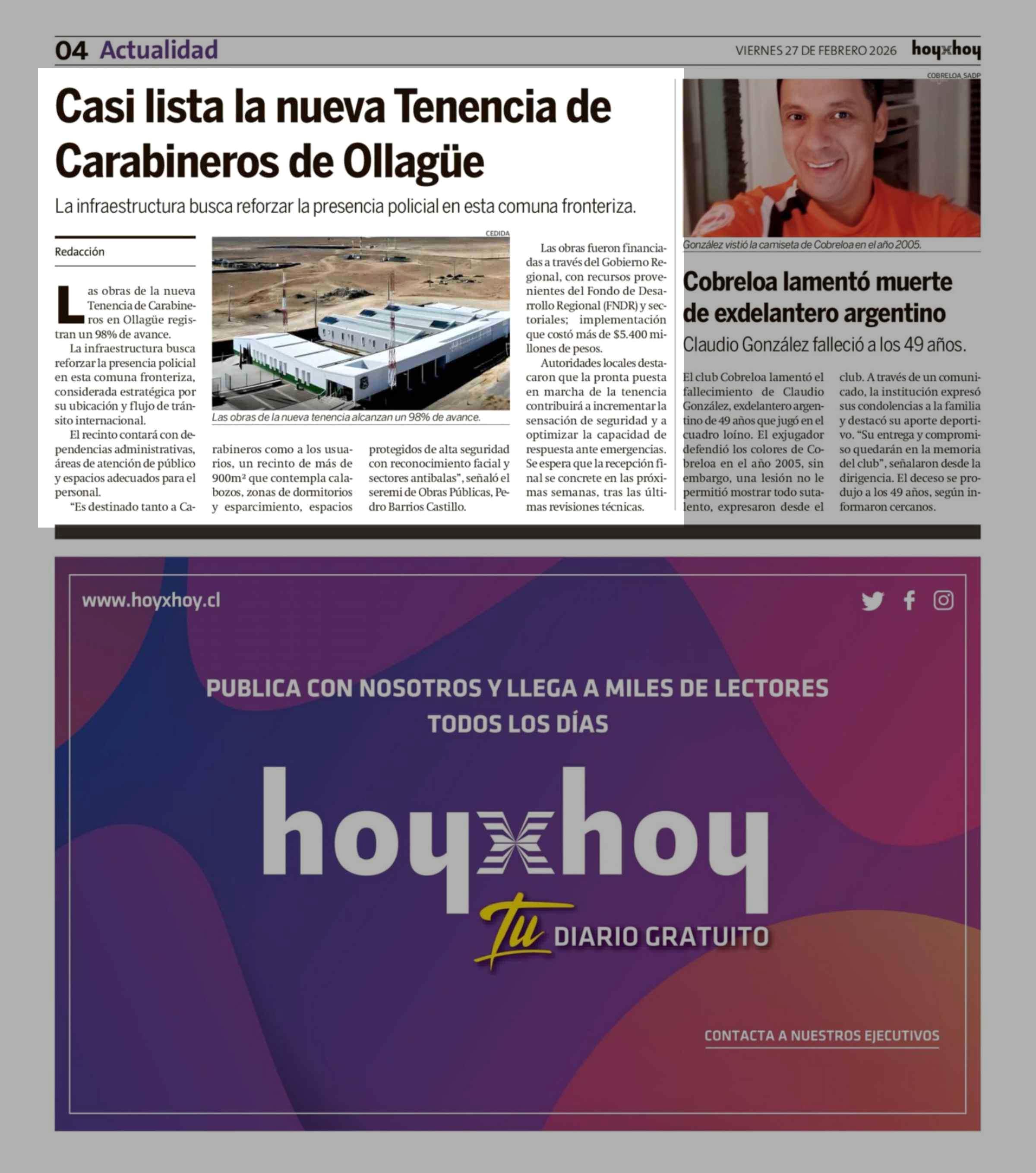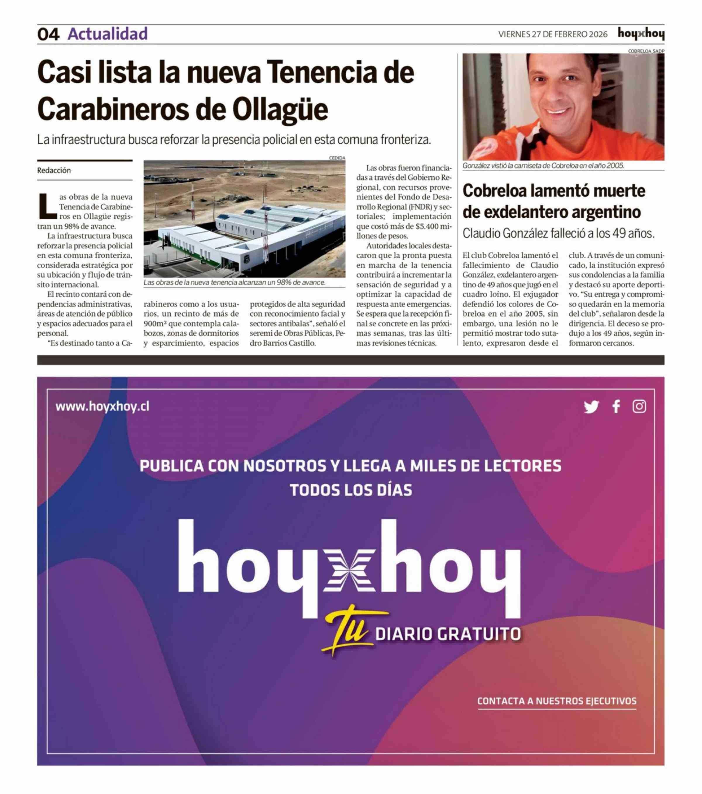 | Fecha: | 27-02-2026 | Sector: | Noticia general | Región: | Región de Antofagasta |