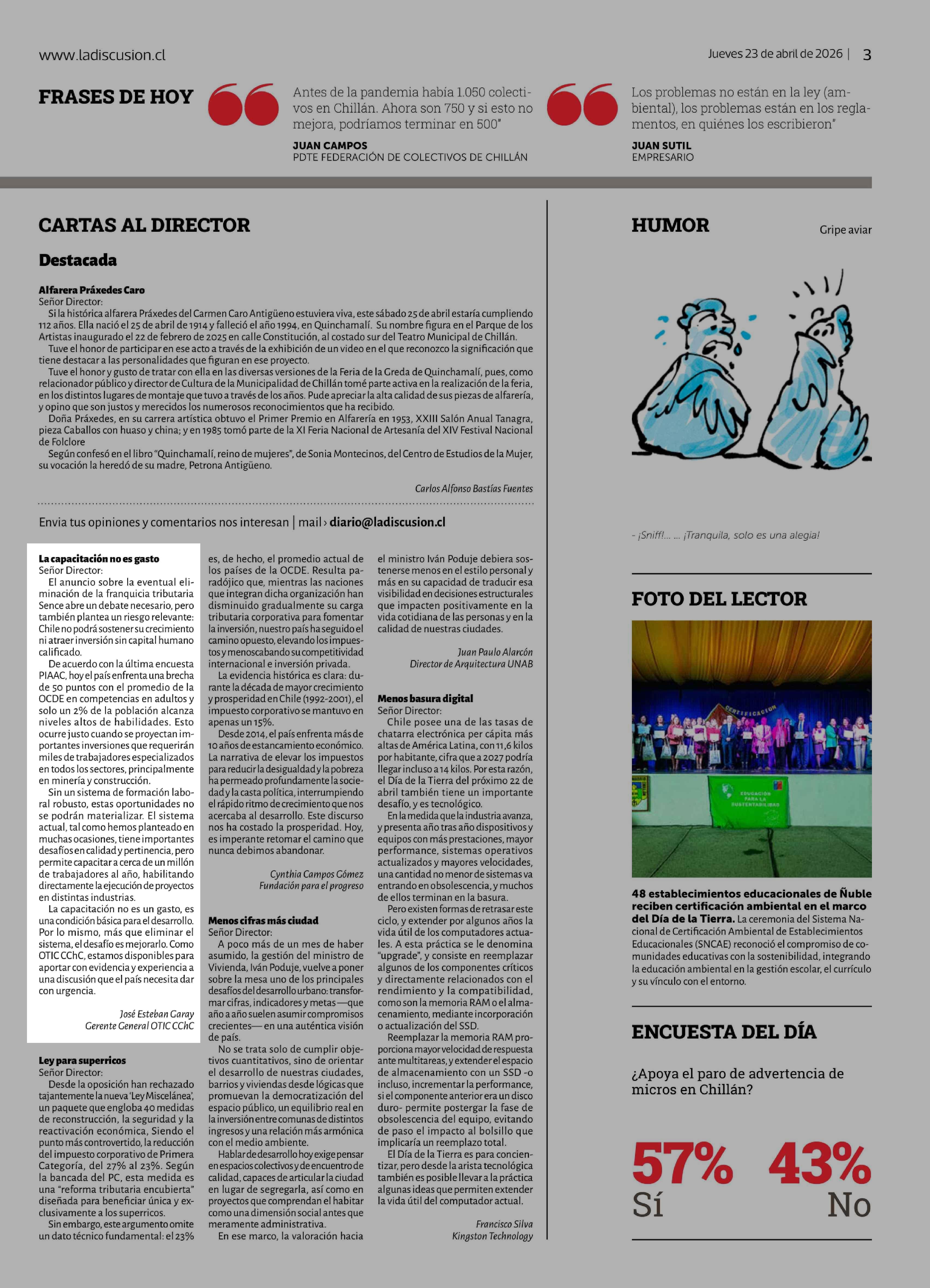 Cartas: La capacitación no es gasto 23-04-2026 La Discusión |