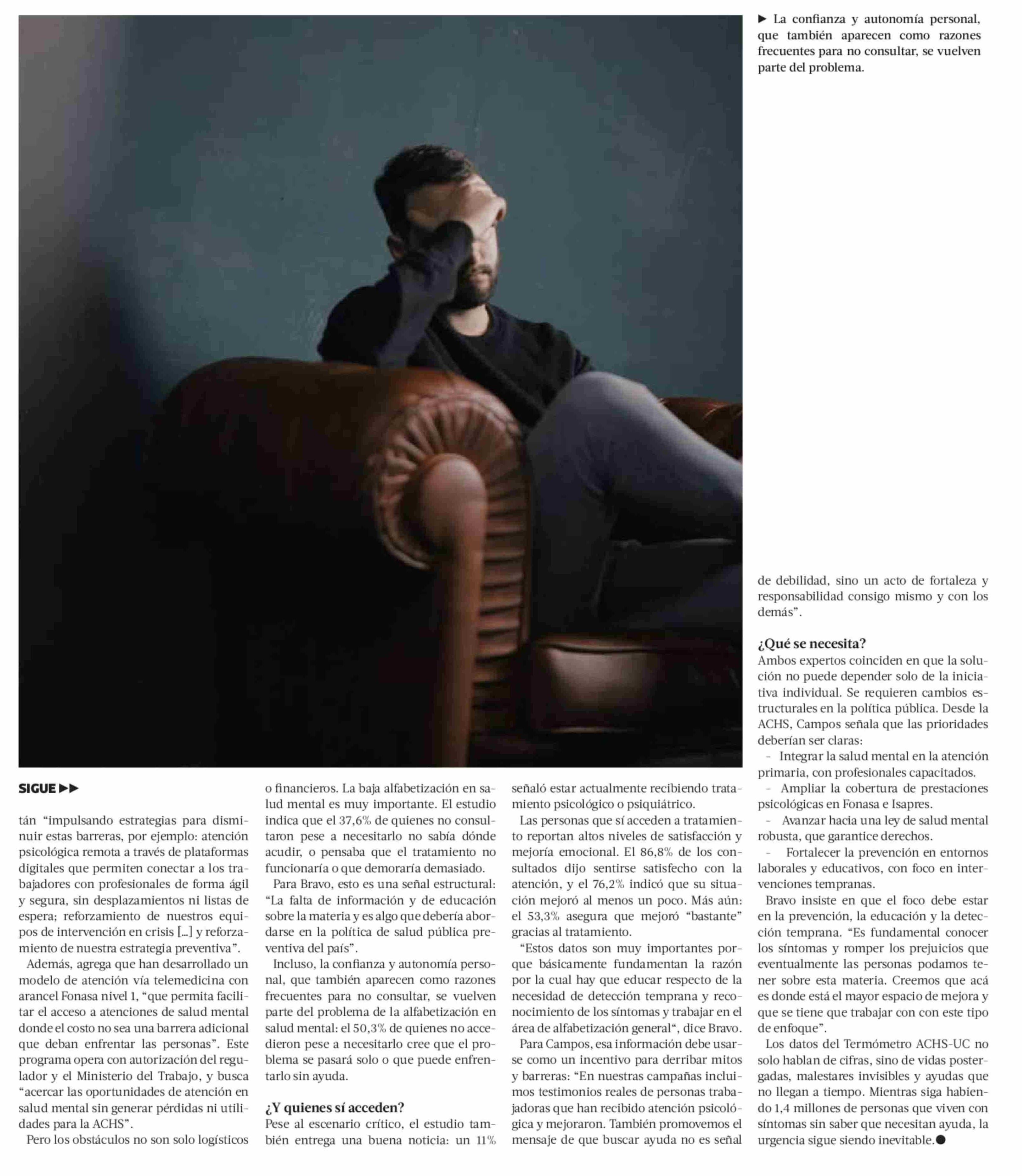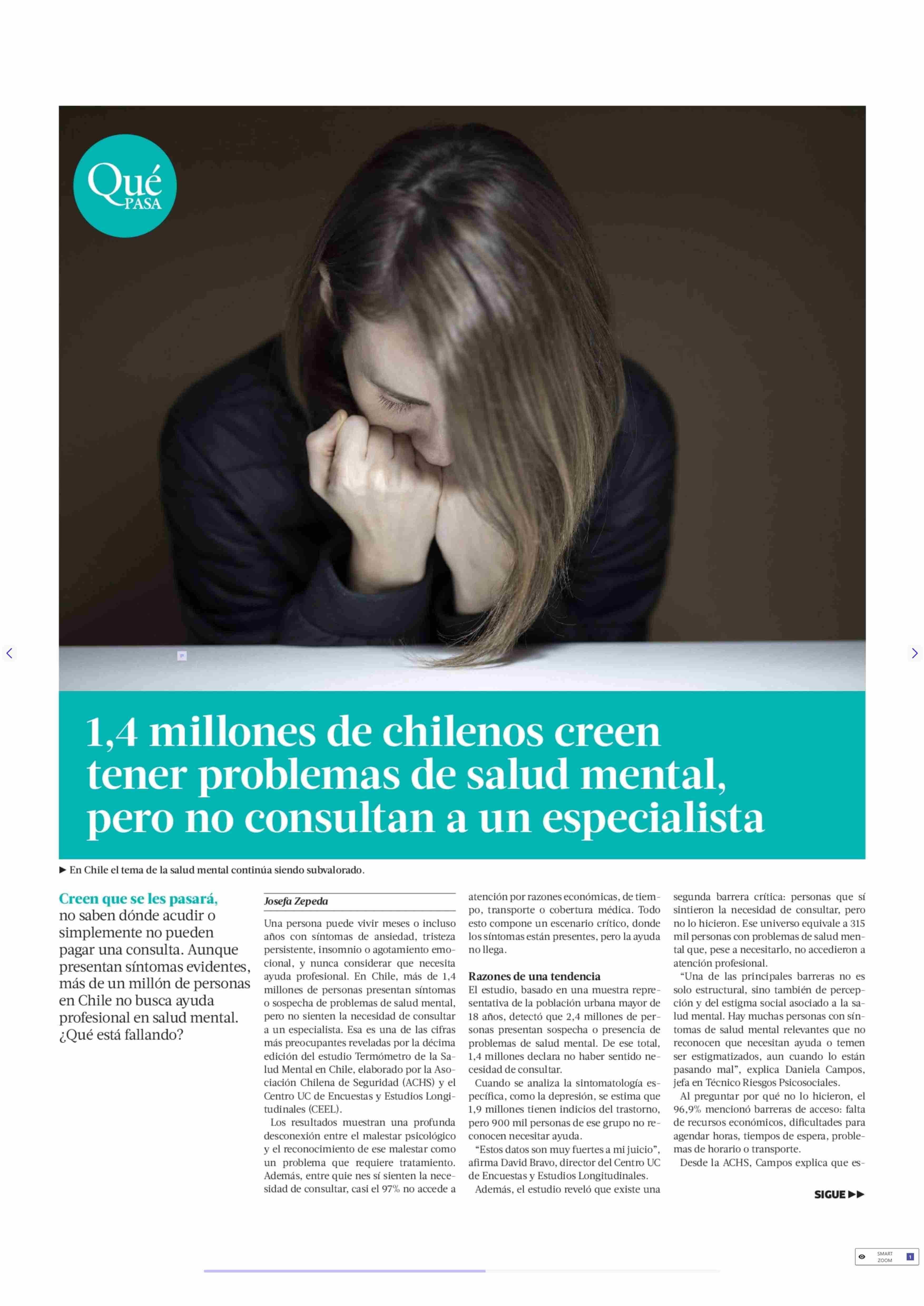 | Título: | 1,4 millones de chilenos creen tener problemas de salud mental, pero no consultan a un especialista |