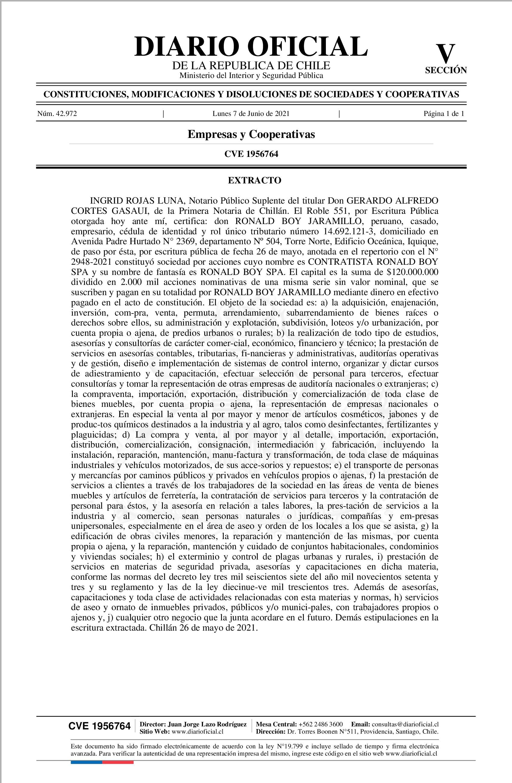 Extracto 07-06-2021 Diario Oficial Edición Electrónica |