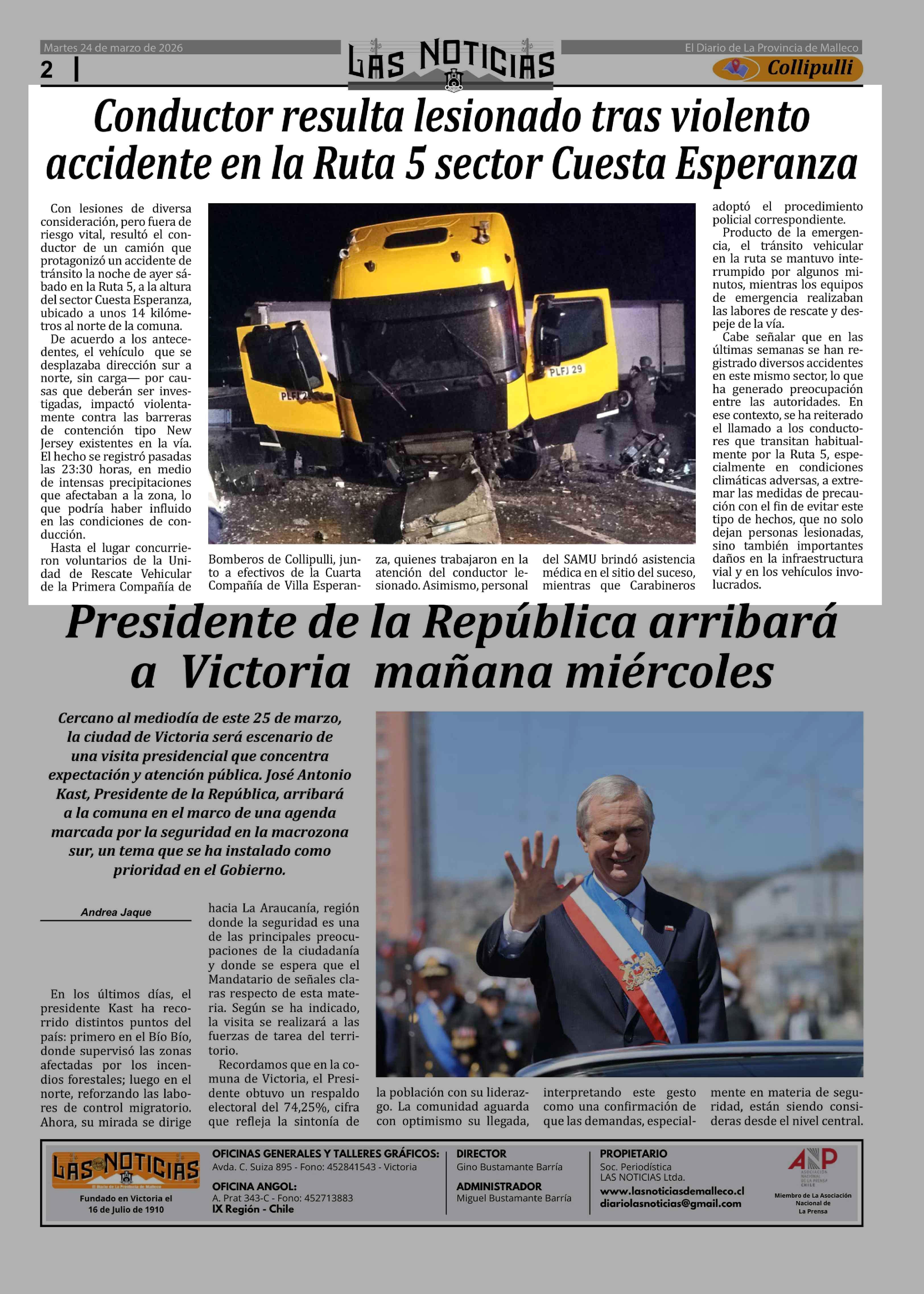 | Fecha: | 24-03-2026 | Sector: | Noticia general | Región: | Región de la Araucanía |