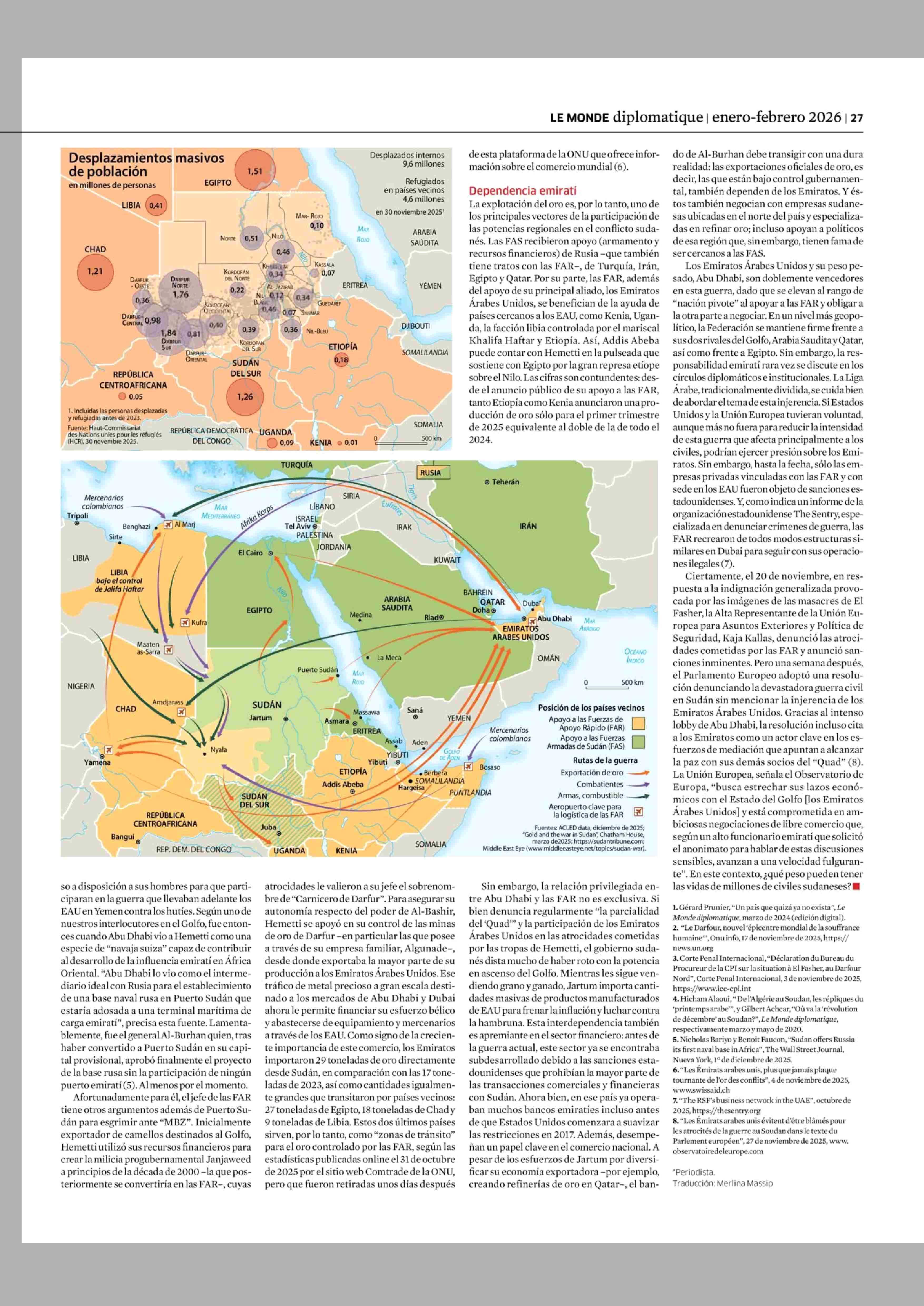 COLUMNAS DE OPINIÓN: Sudán “epicentro mundial del sufrimiento humano” 12-01-2026 Le Monde Diplomatique |