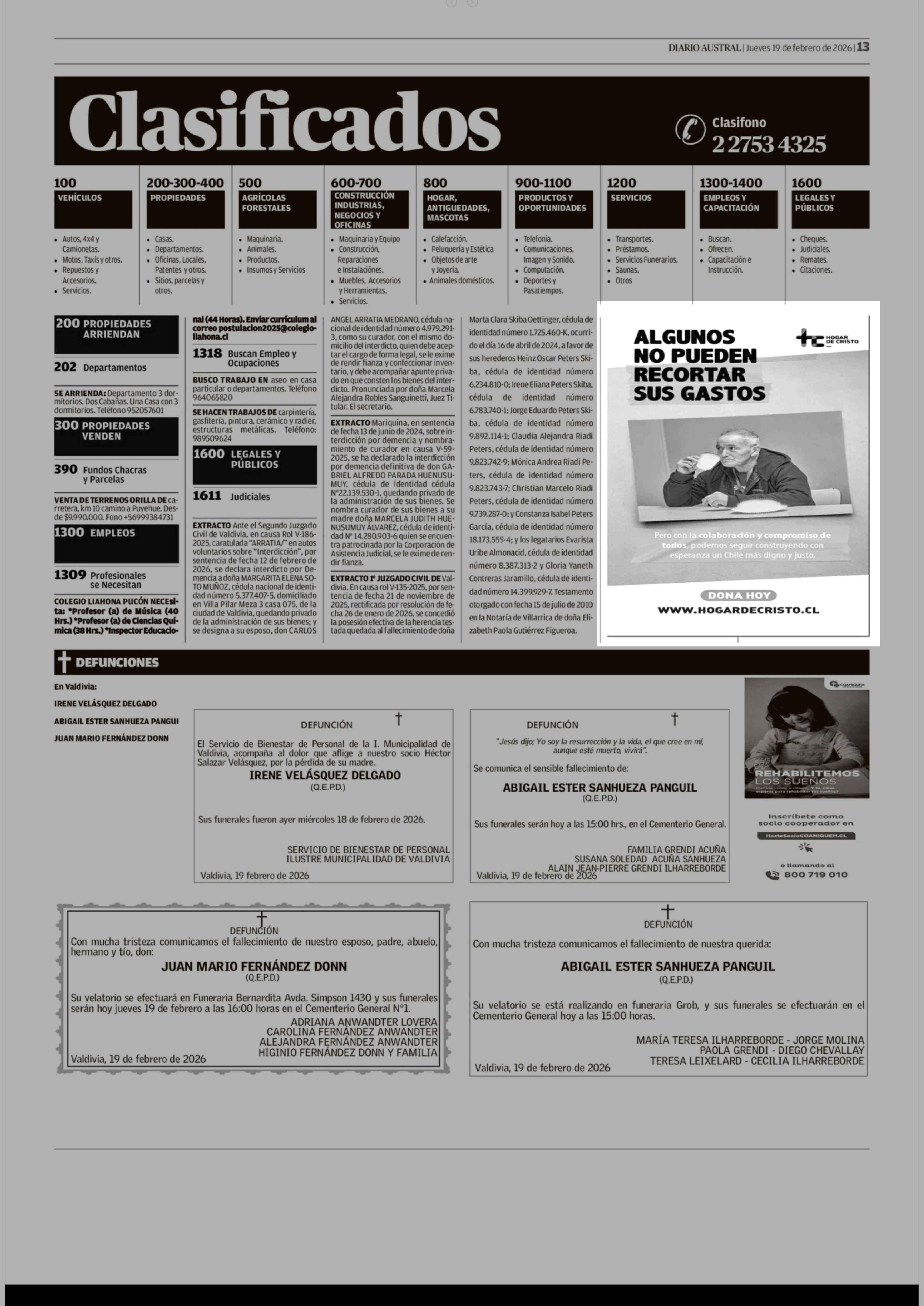 Fecha: 19-02-2026 Sector: Aviso Ayuda Social Región: Región de Los Ríos