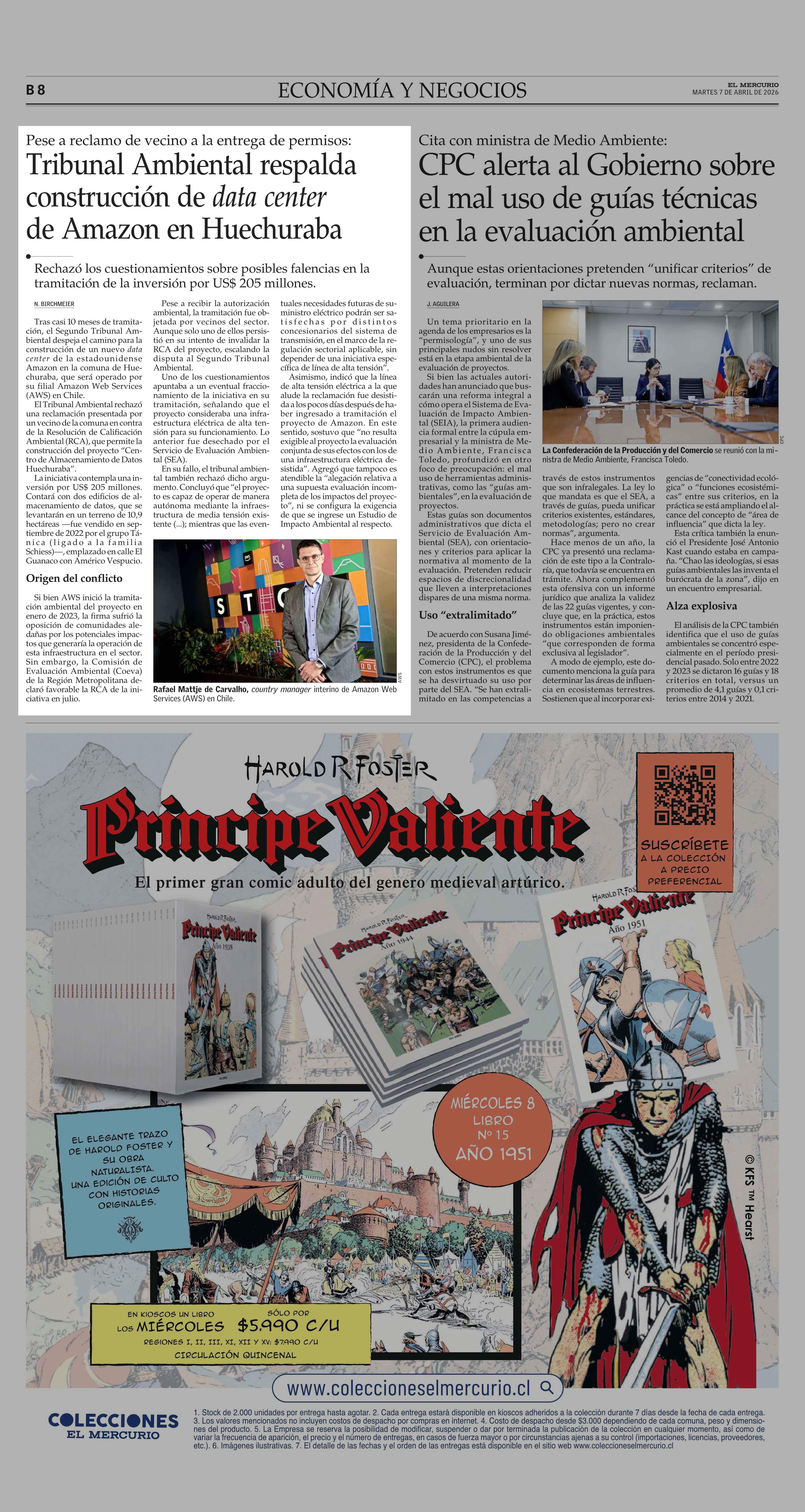 Tribunal Ambiental respalda construcción de data center de Amazon en Huechuraba 07-04-2026 El Mercurio |