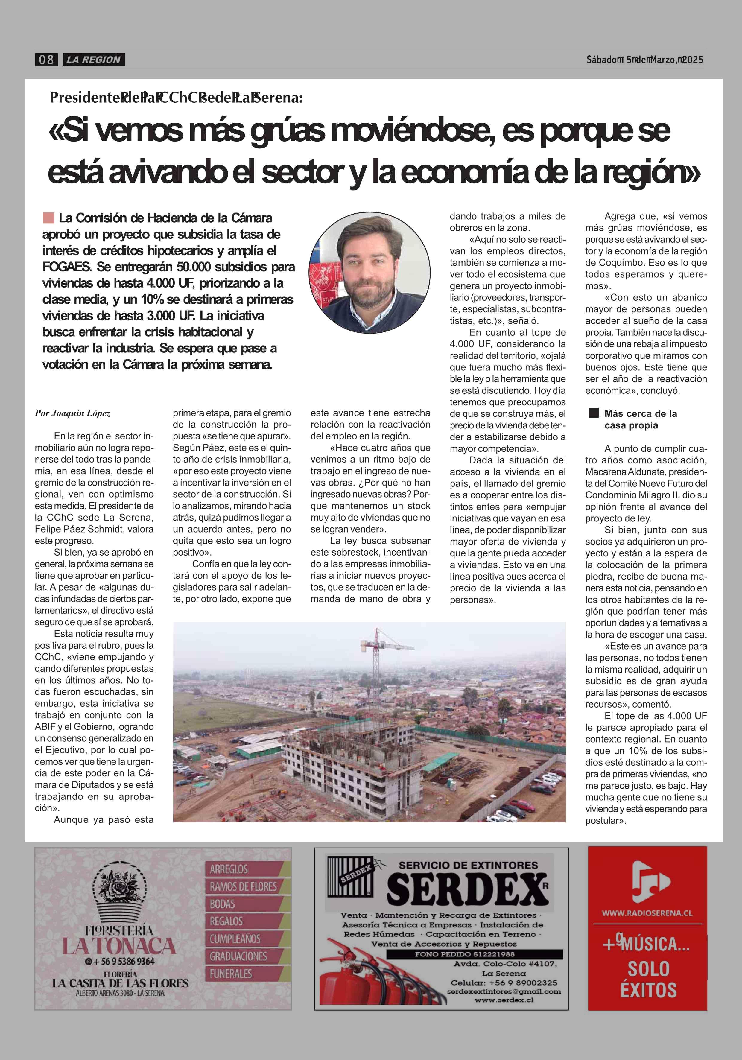 | Título: | «Si vemos más grúas moviéndose, es porque se está avivando el sector y la economía de la región» |