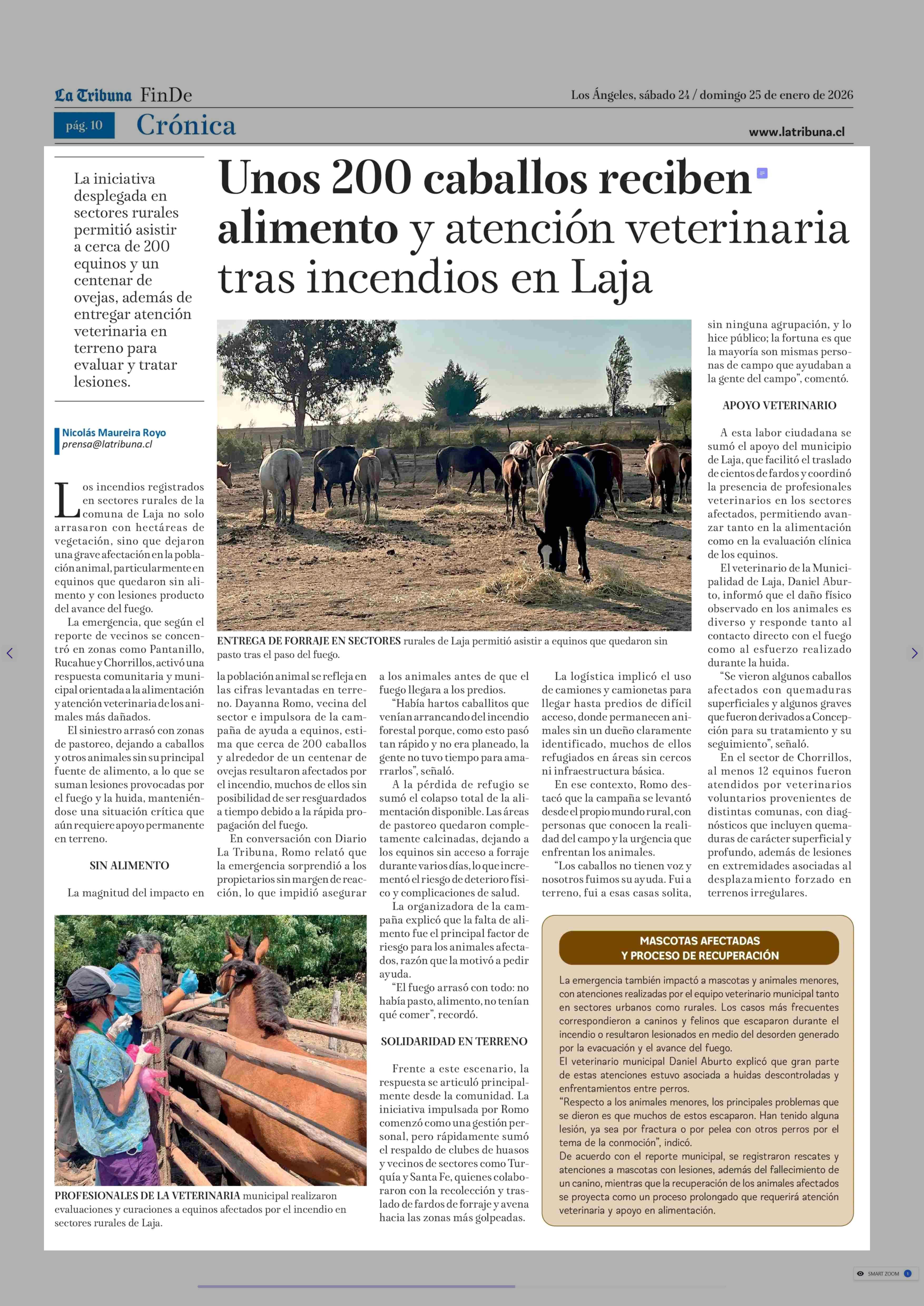 Unos 200 caballos reciben alimento y atención veterinaria tras incendios en Laja 24-01-2026 La Tribuna |