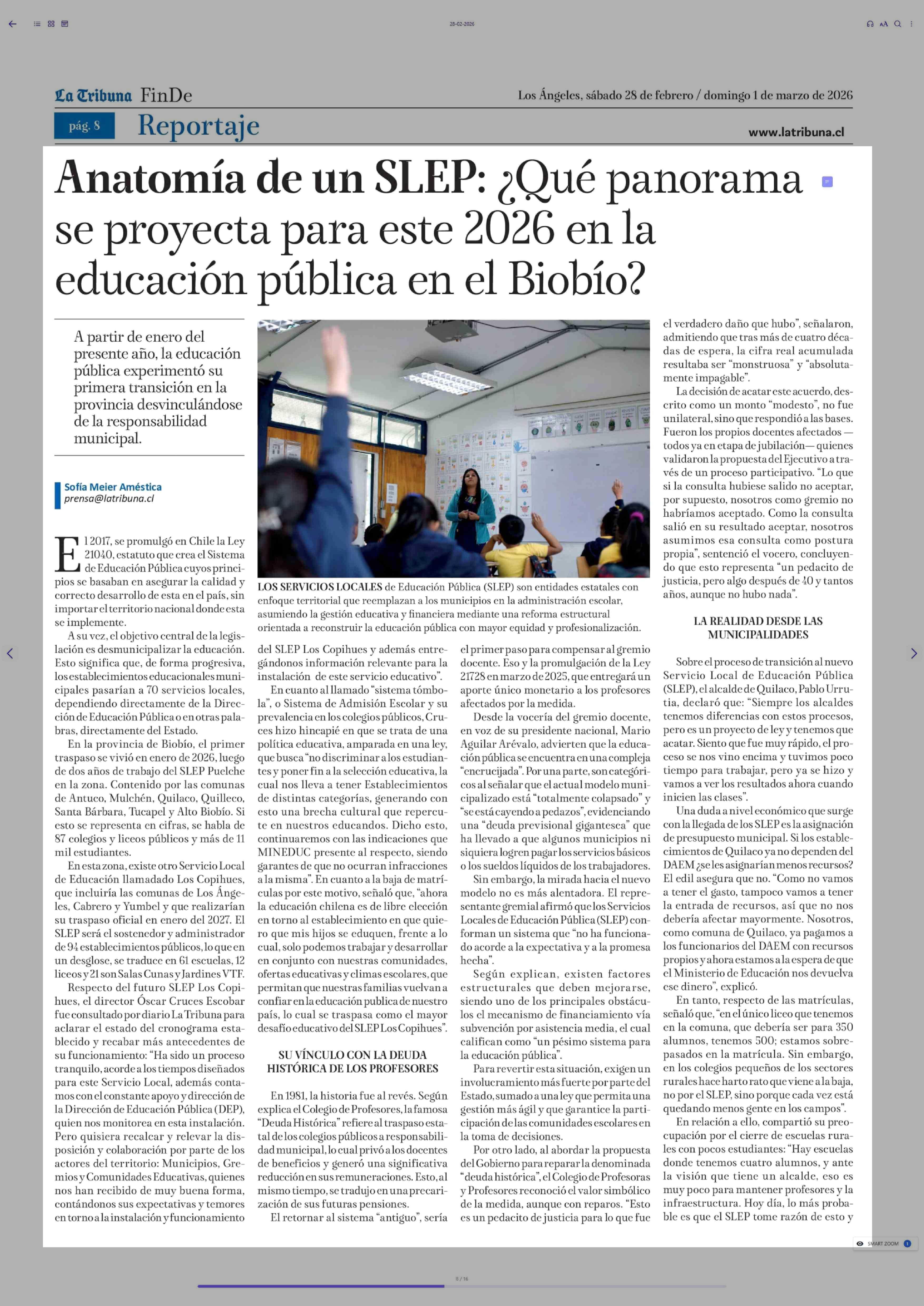 Anatomía de un SLEP: ¿ Qué panorama se proyecta para este 2026 en la educación pública en el Biobío? 28-02-2026 La Tribuna |
