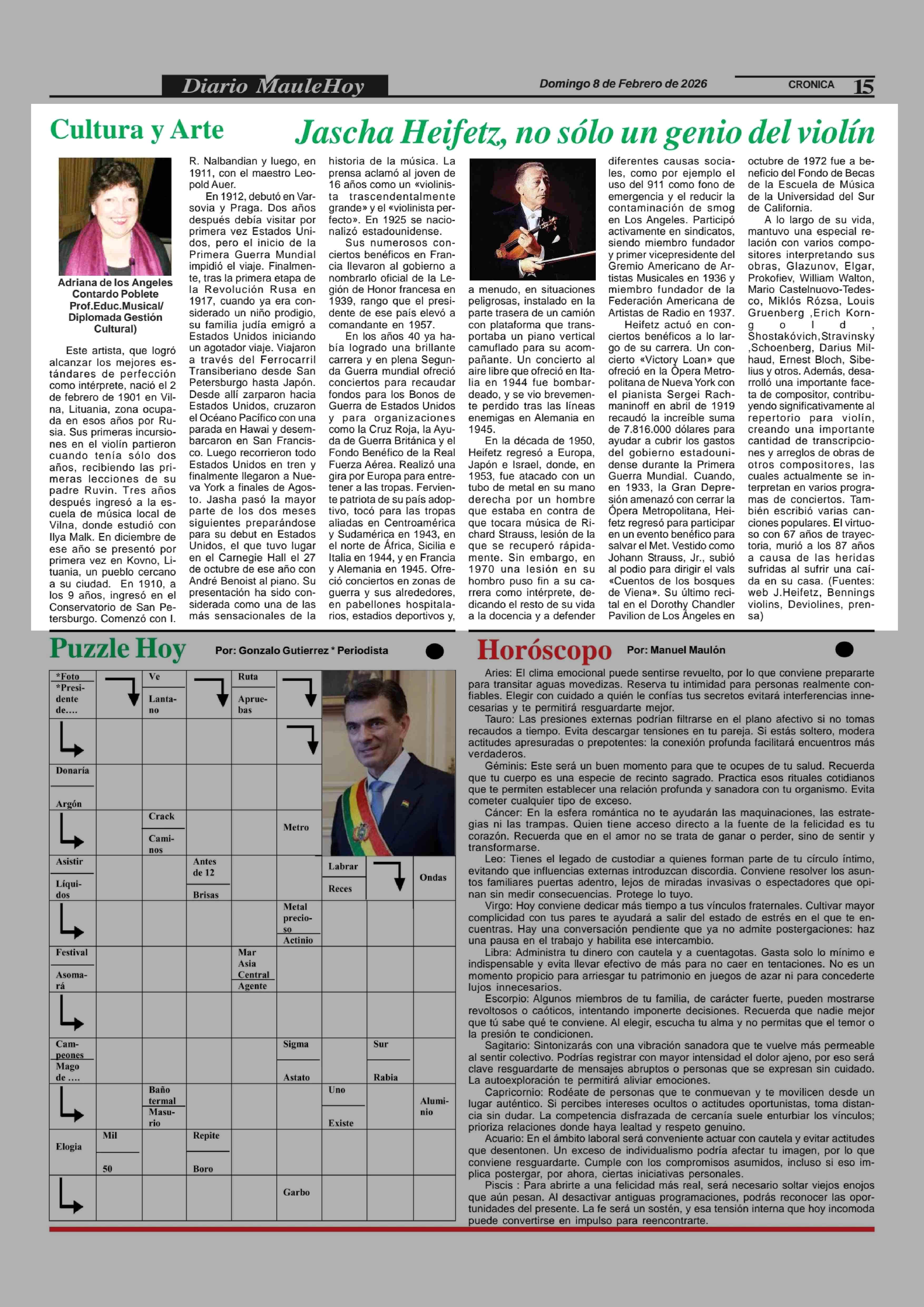 Jascha Heifetz, no sólo un genio del violín 08-02-2026 Maule Hoy |