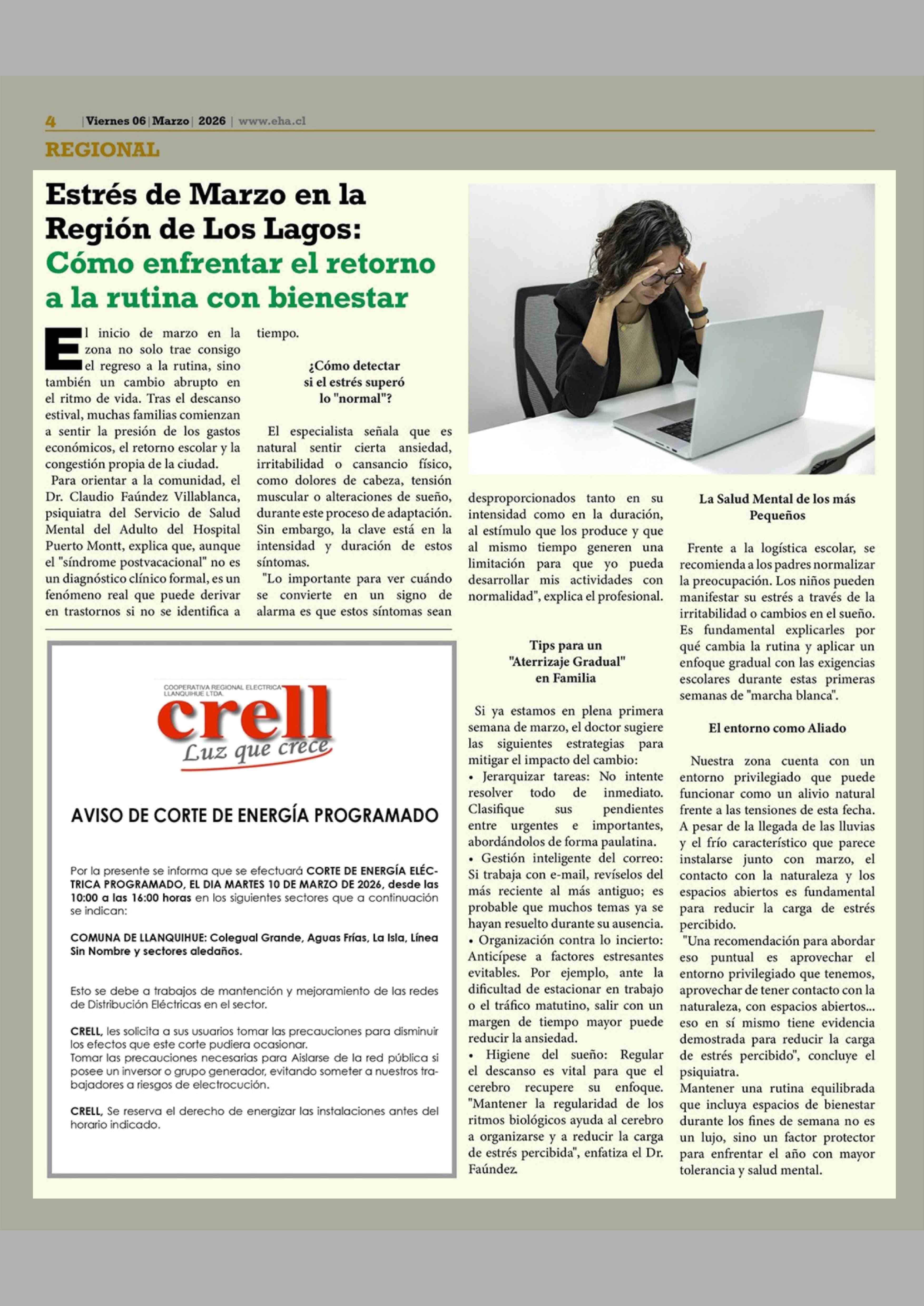 Estrés de Marzo en la Región de Los Lagos: Cómo enfrentar el retorno a la rutina con bienestar 06-03-2026 El Heraldo Austral |