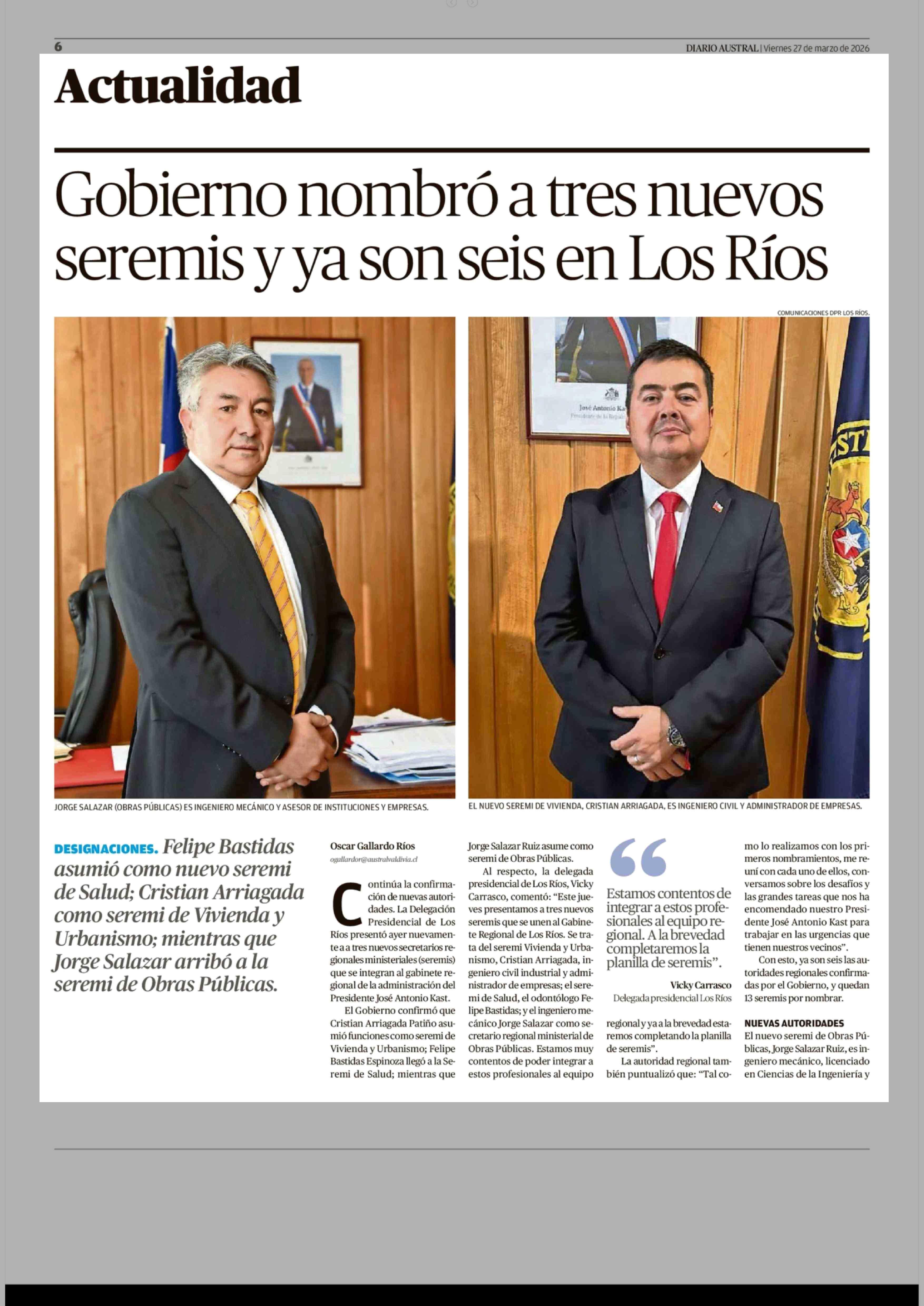 Título: Gobierno nombró a tres nuevos seremis y ya son seis en Los Ríos