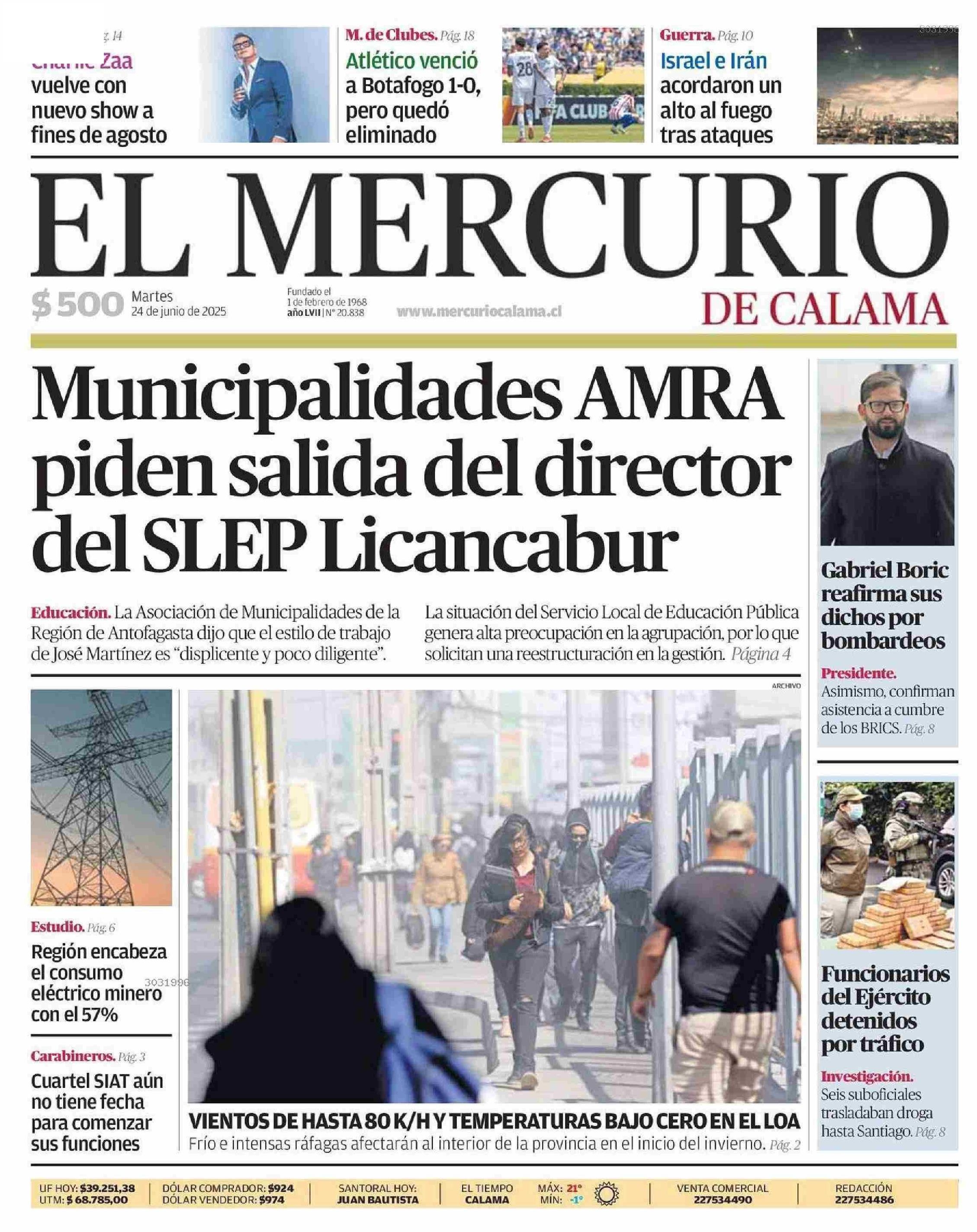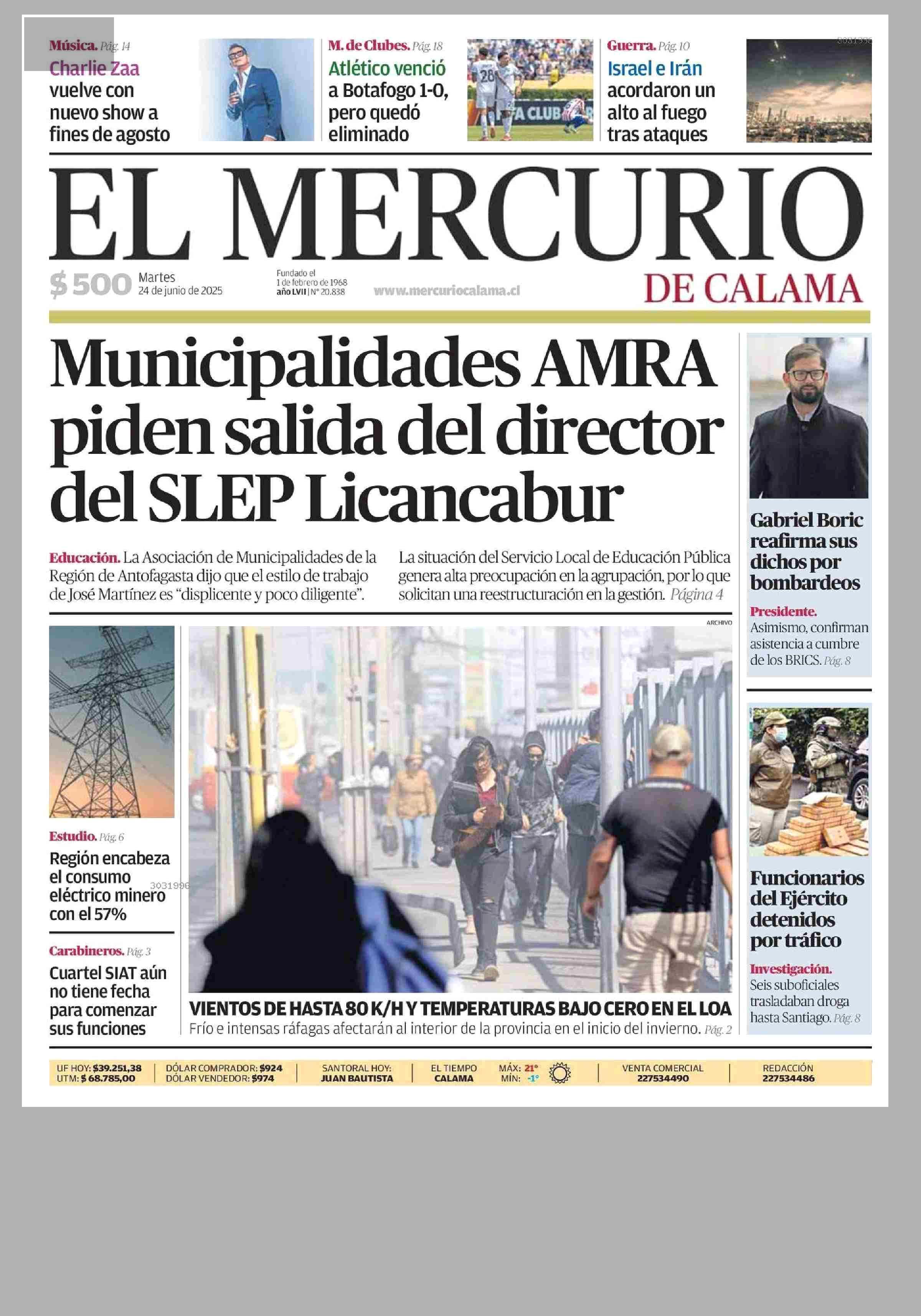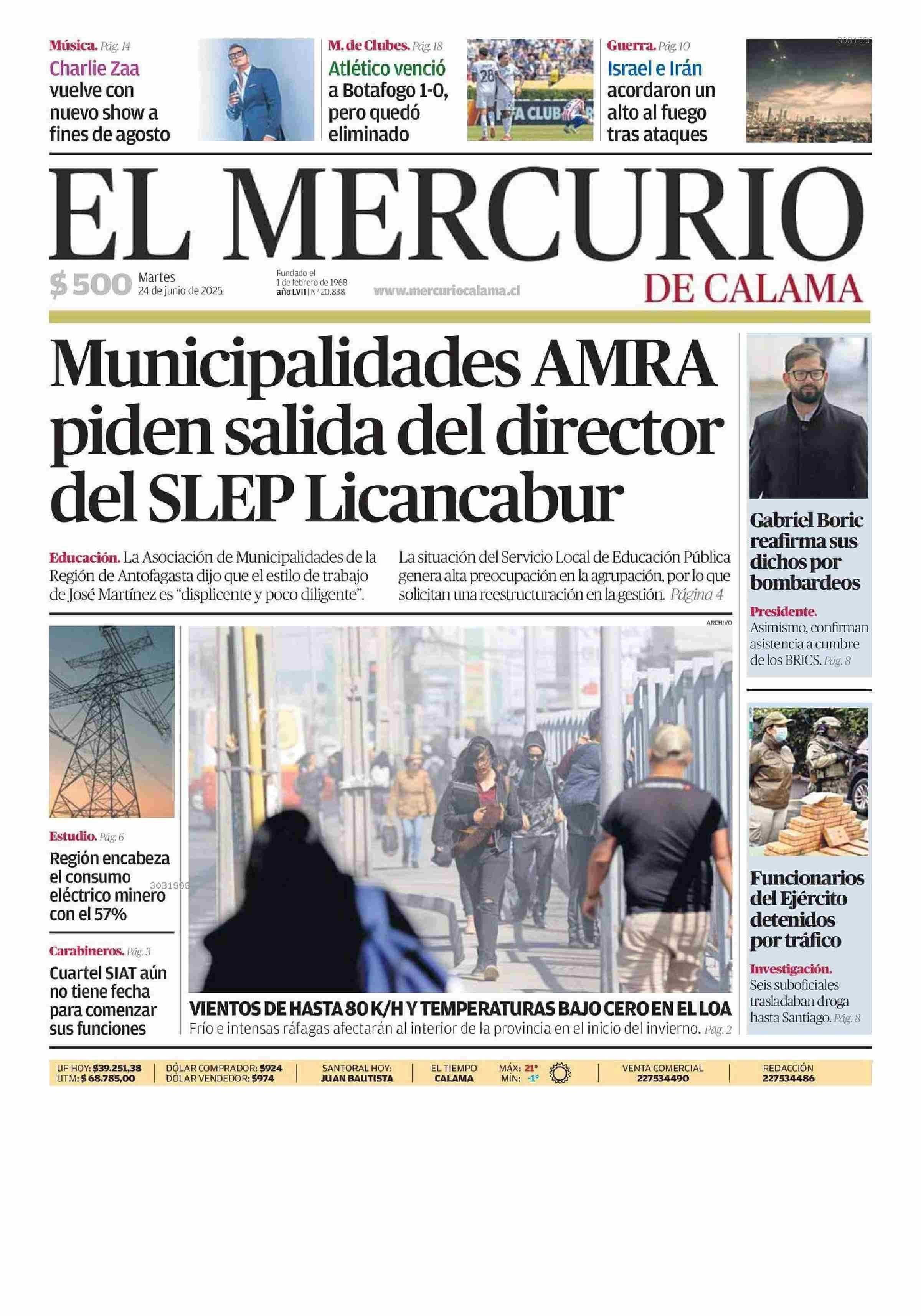 PORTADA EL MERCURIO DE CALAMA - CHILE 24-06-2025 El Mercurio de Calama |