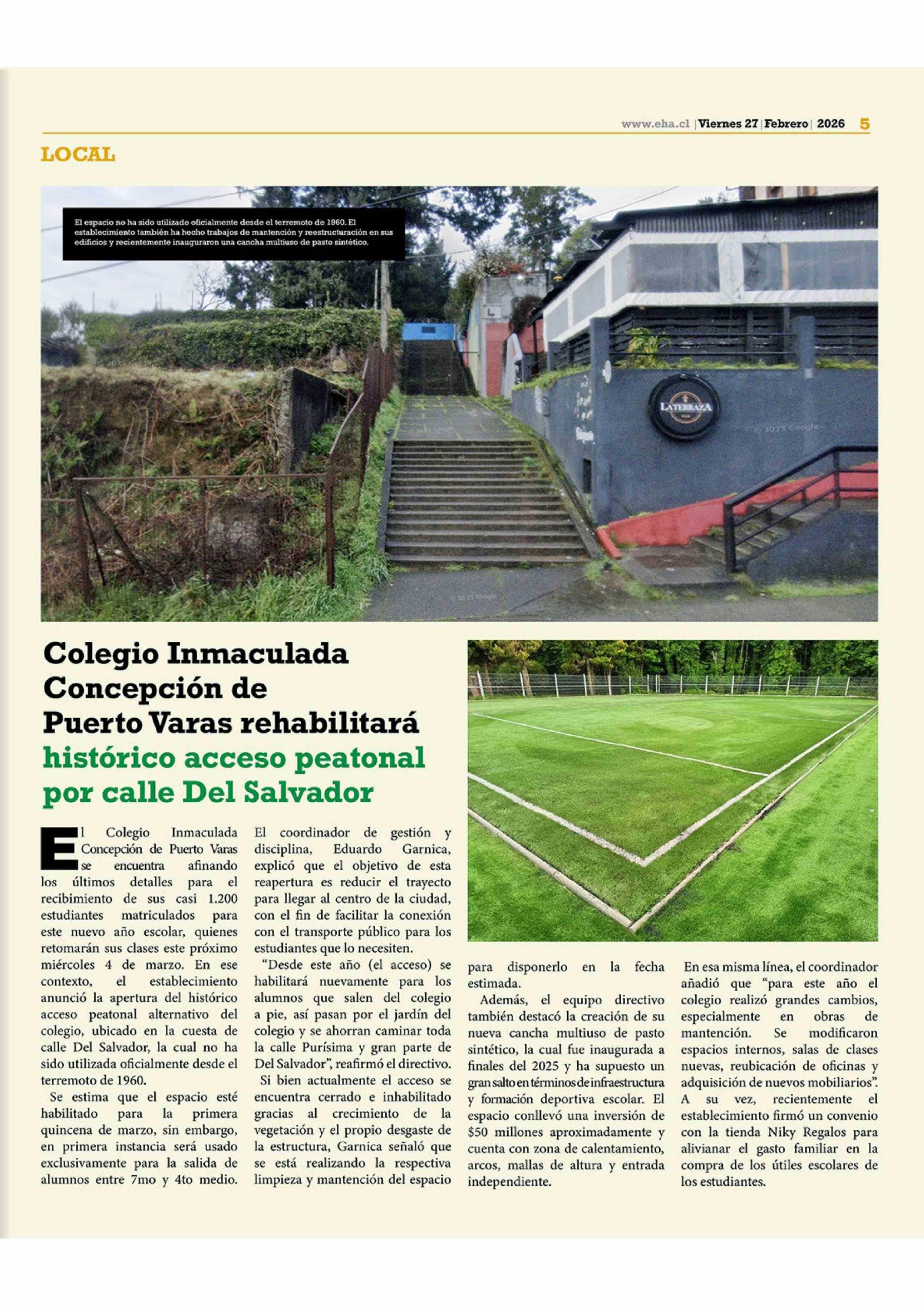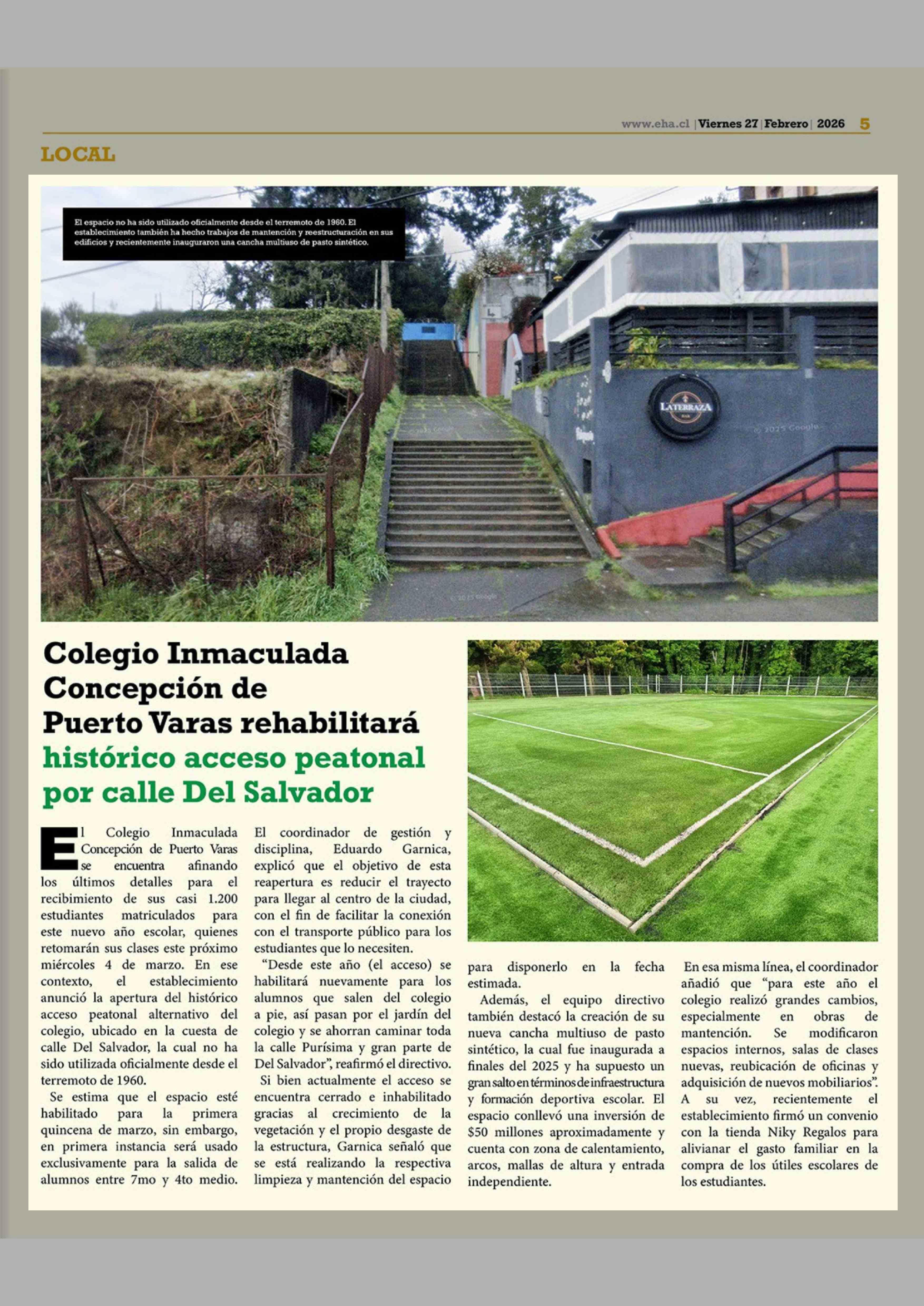 Título: Colegio Inmaculada Concepción de Puerto Varas rehabilitará histórico acceso peatonal por calle Del Salvador