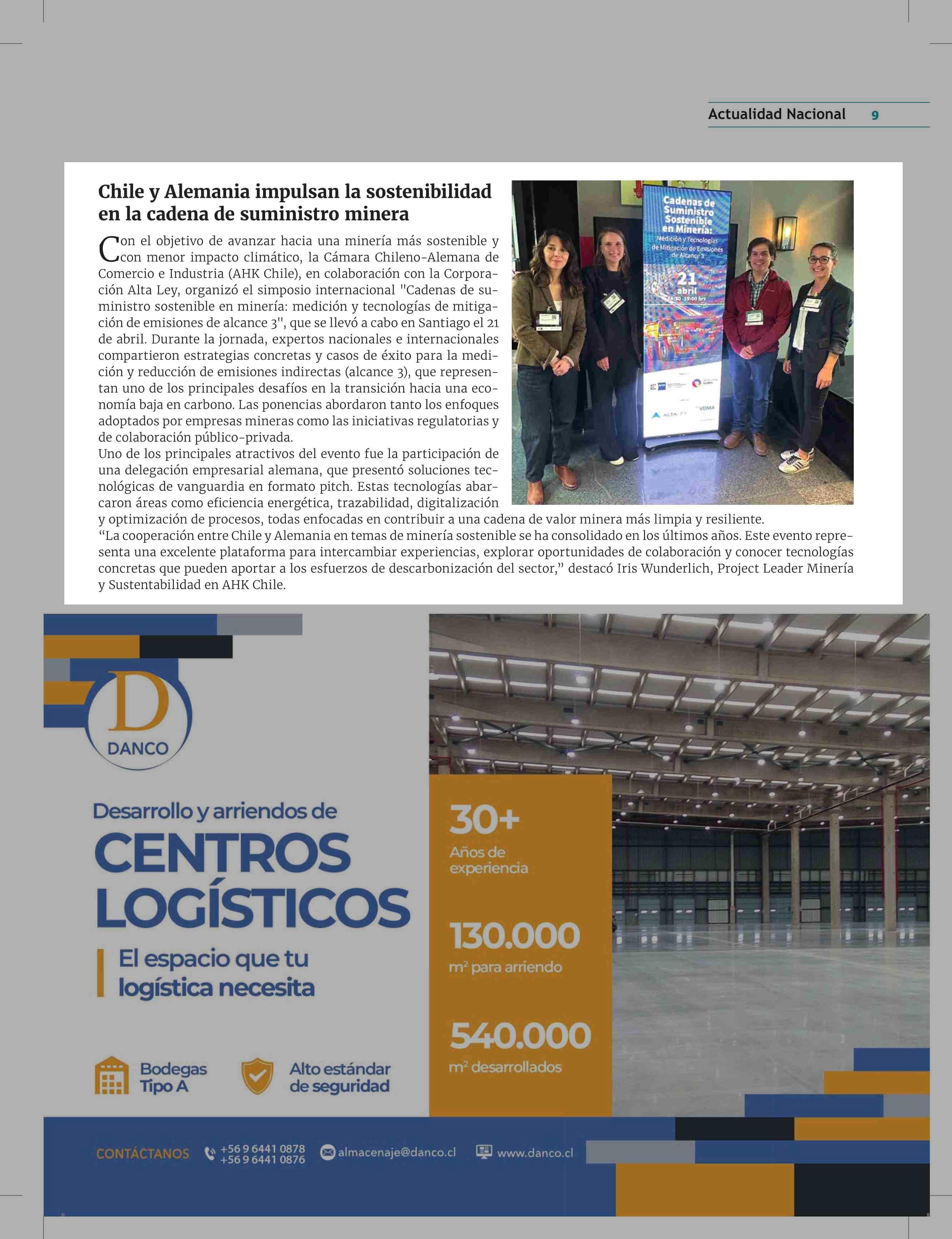 Chile y Alemania impulsan la sostenibilidad en la cadena de suministro minera 23-05-2025 Revista NG |
