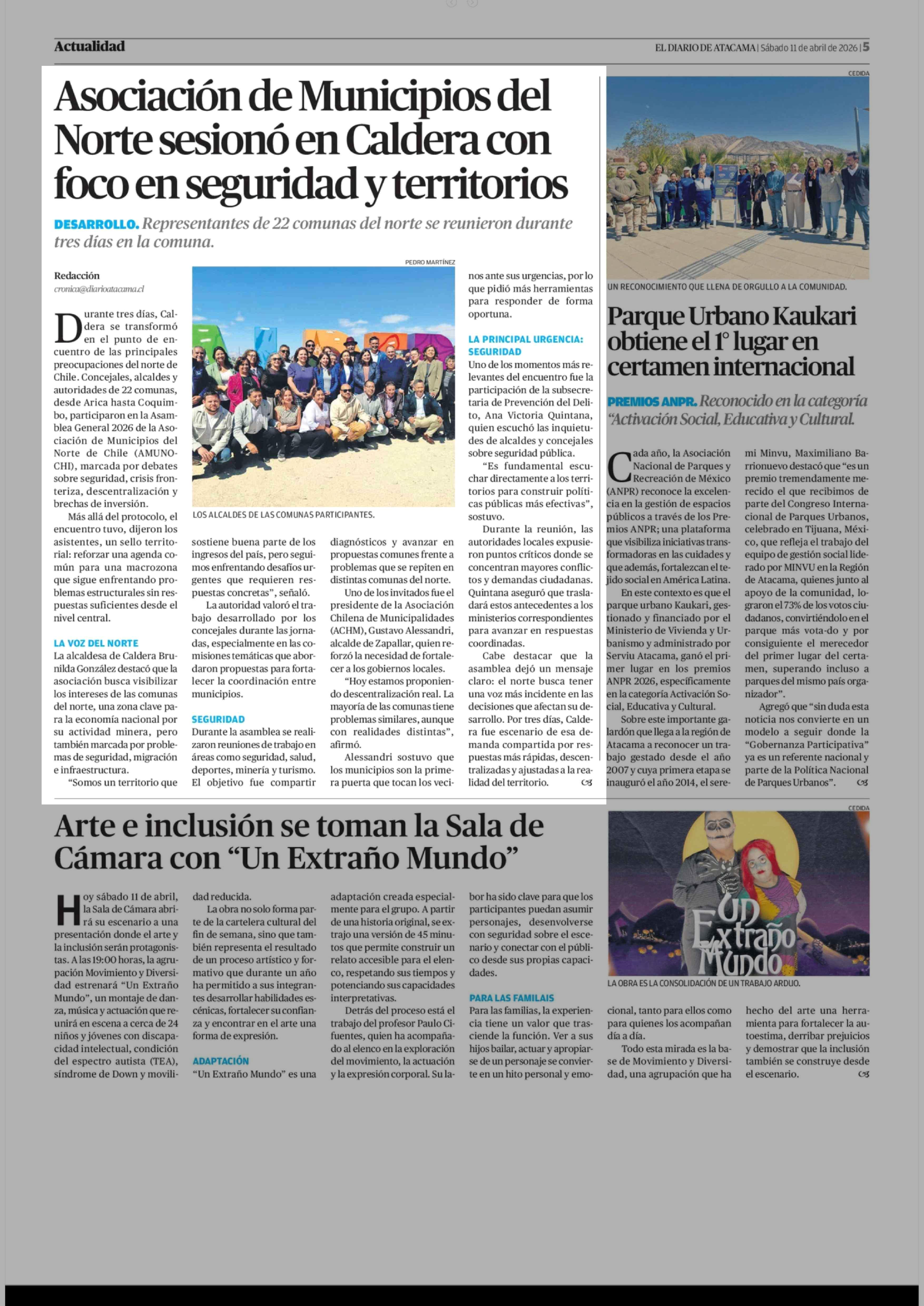 | Fecha: | 11-04-2026 | Sector: | Noticia general | Región: | Región de Atacama |