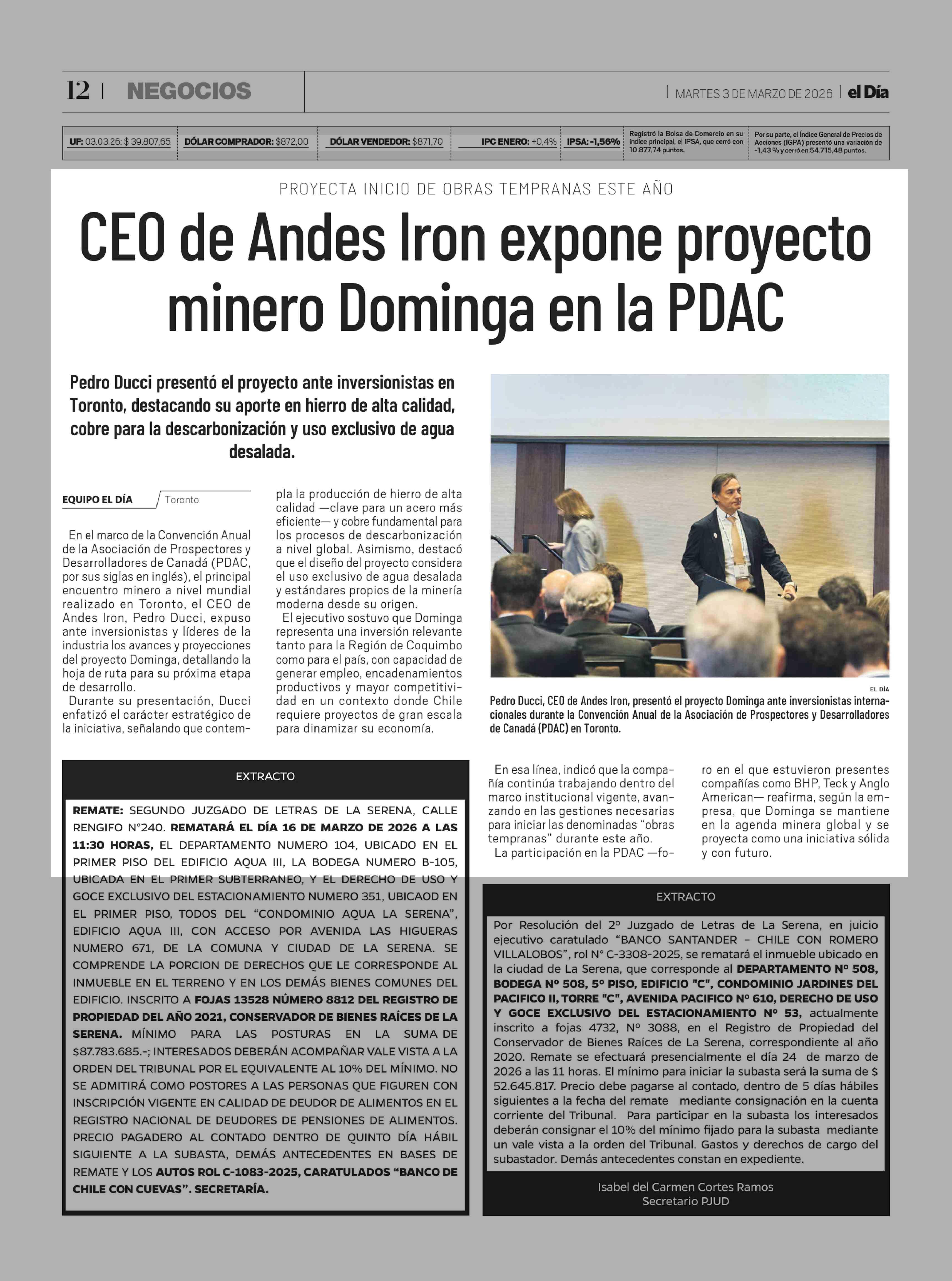 Título: CEO de Andes Iron expone proyecto minero Dominga en la PDAC