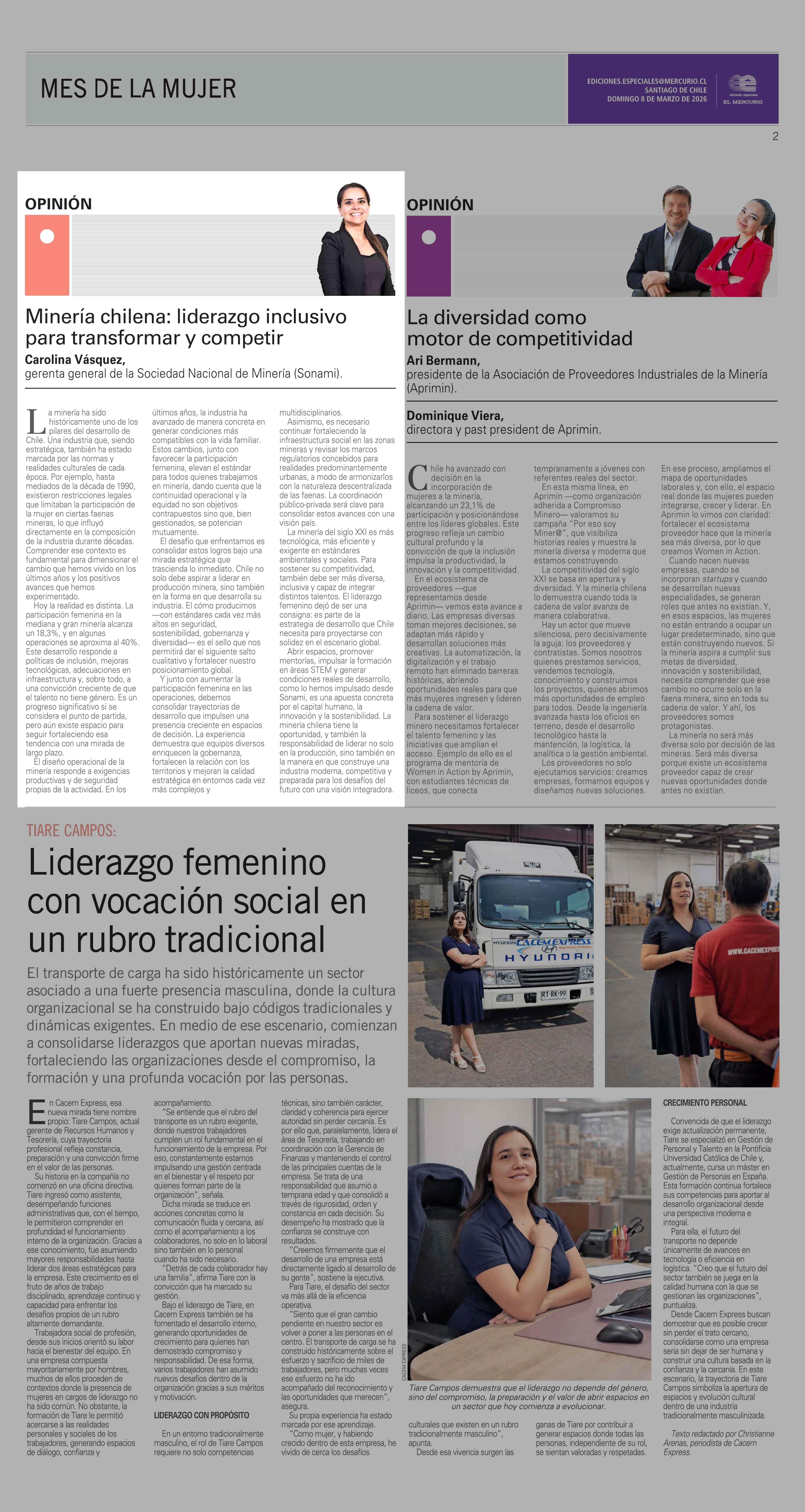 Título: Columnas de Opinión: Minería chilena: liderazgo inclusivo para transformar y competir