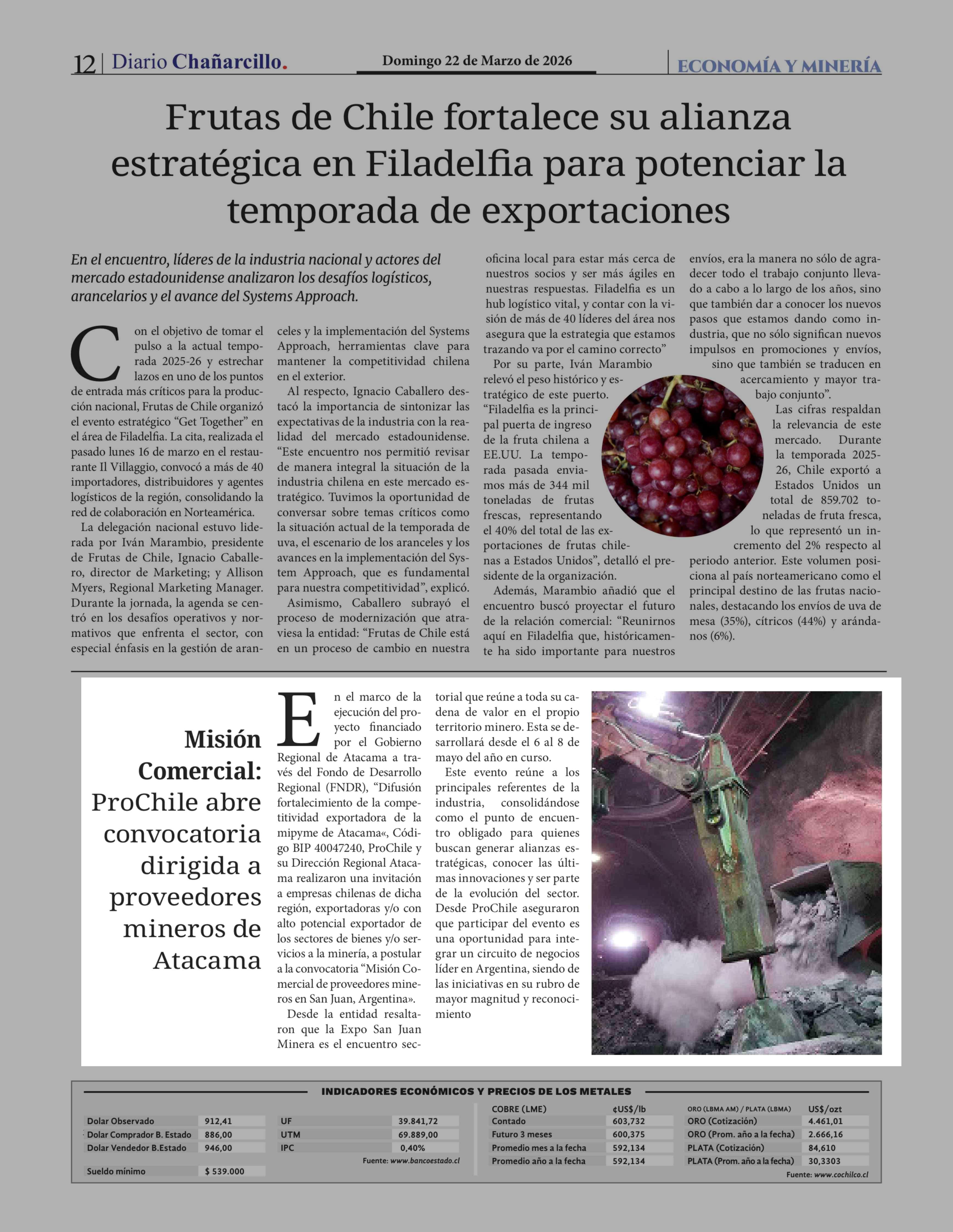 Fuente: Diario Chañarcillo (Diario Chanarcillo) Página(s): 12