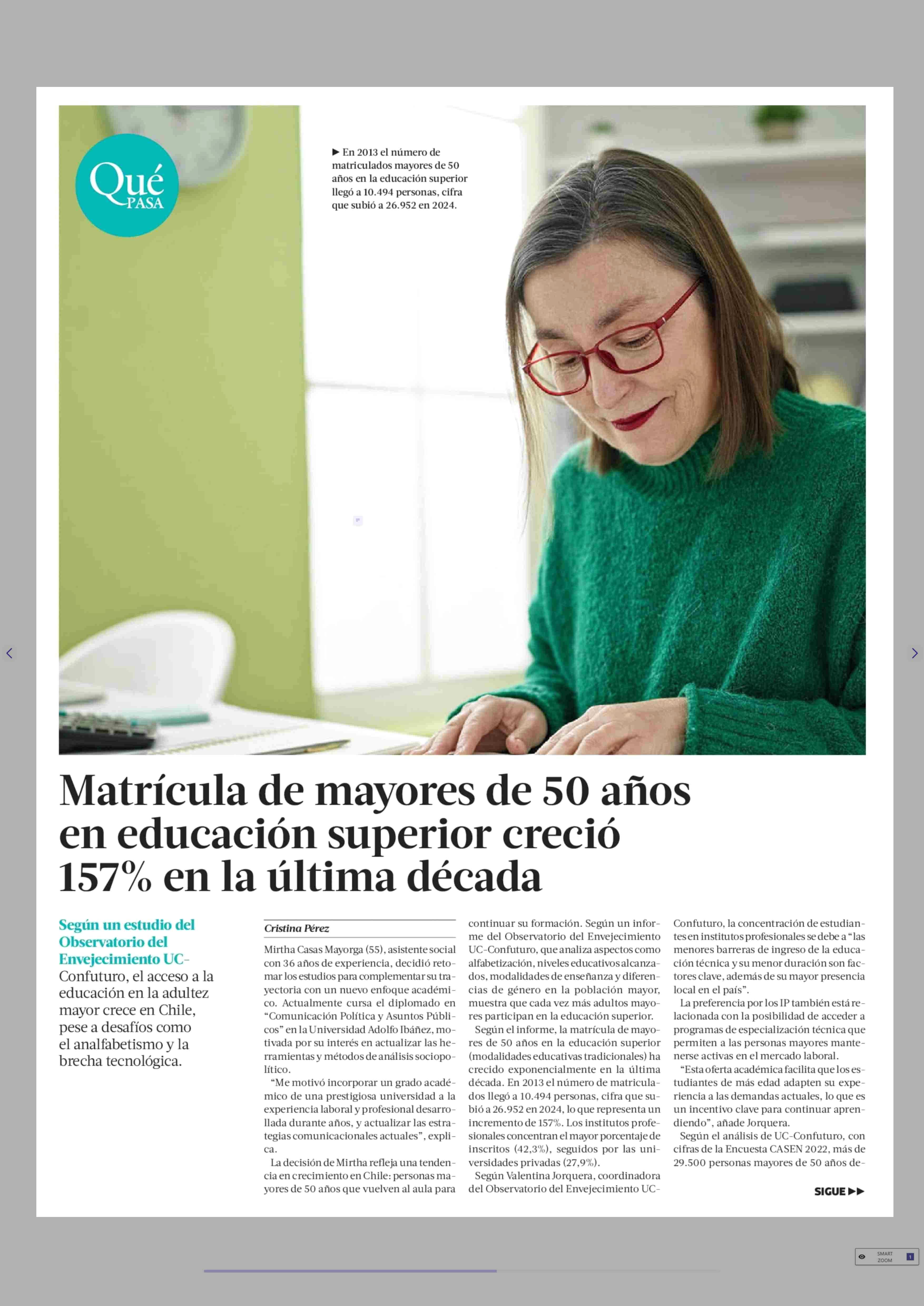 | Título: | Matrícula de mayores de 50 años en educación superior creció 157% en la última década |